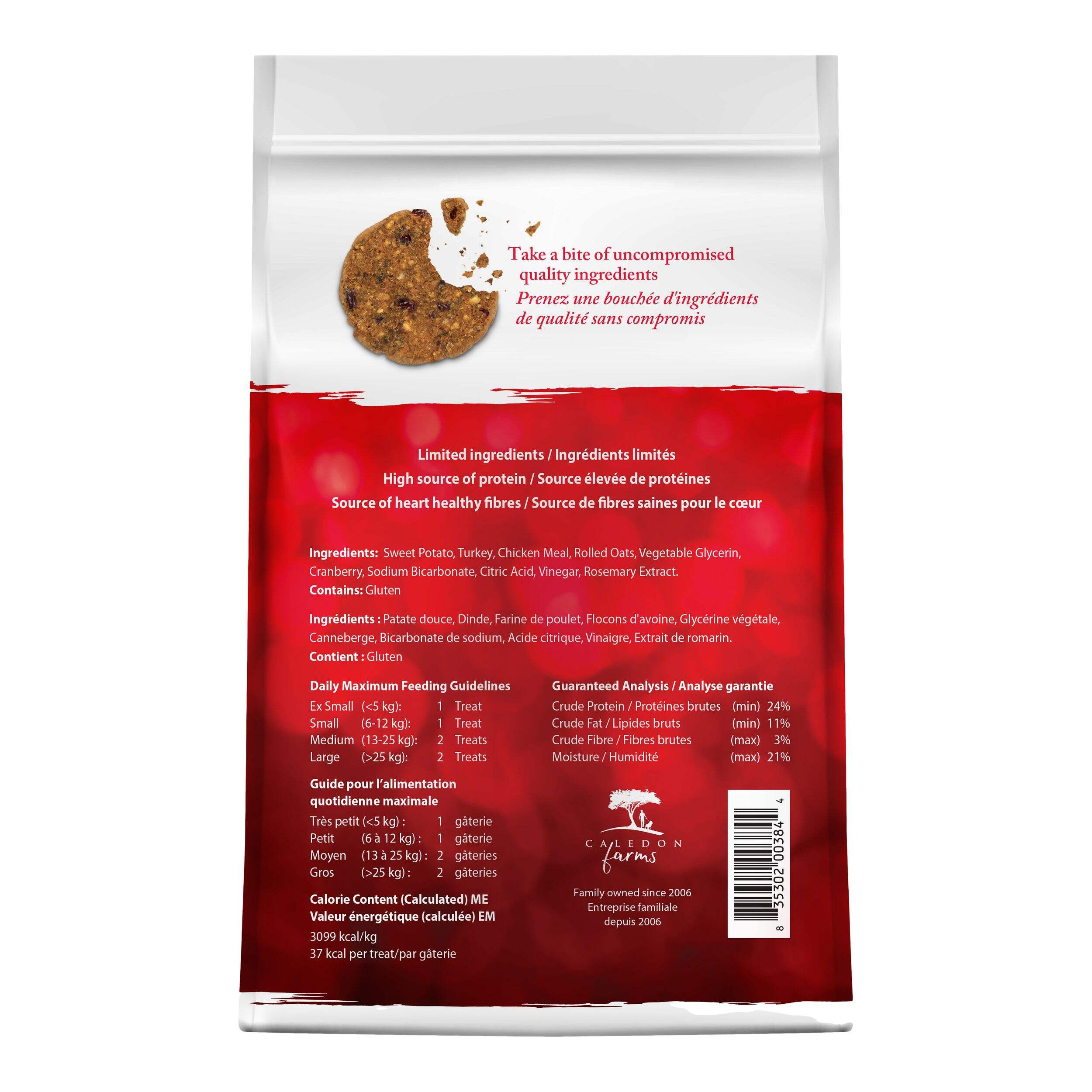 Gâteries protéinées entièrement naturelles pour chiens Caledon Farms faites de peu d'ingrédients et cuites délicatement pour préserver les nutriments