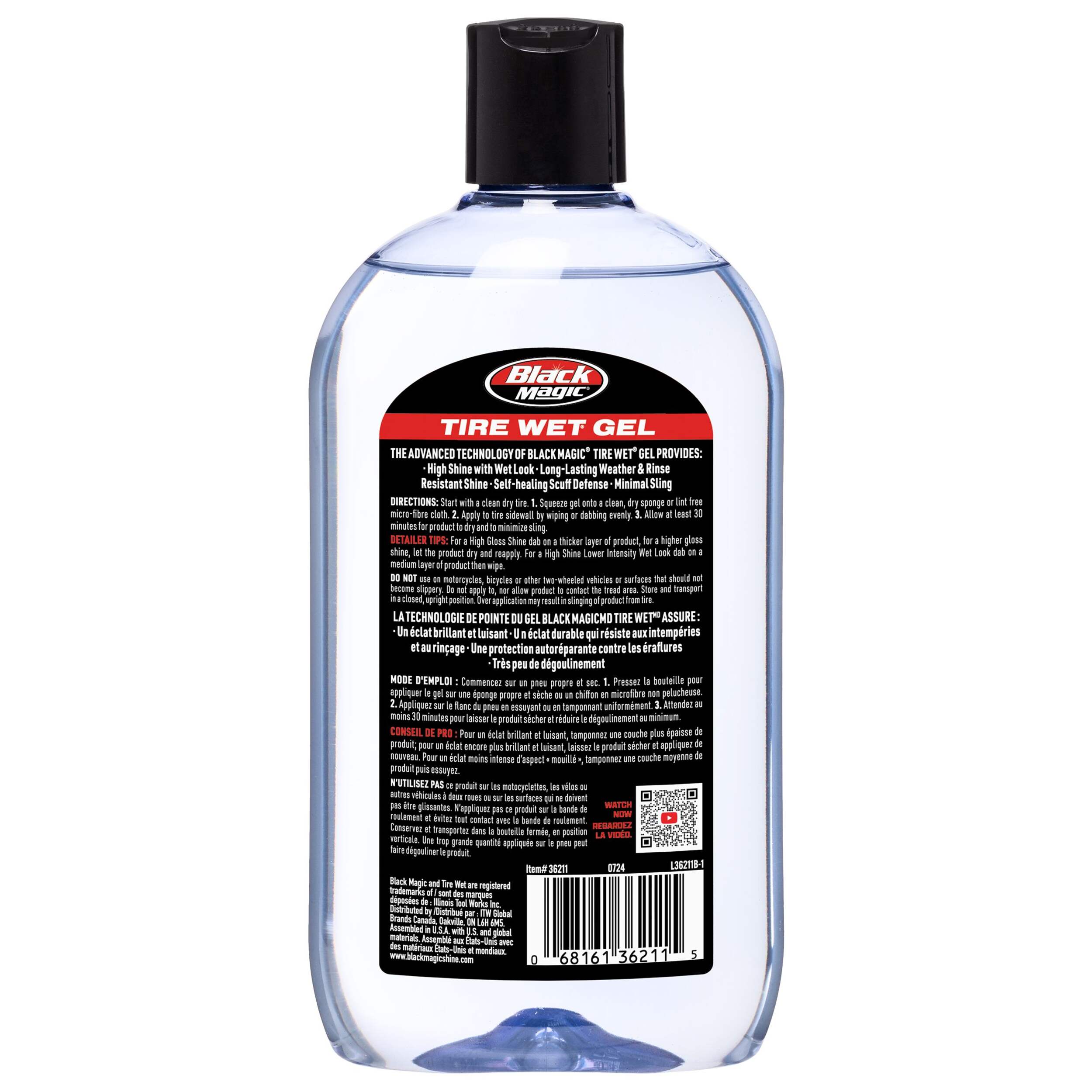 Formule durable qui résiste aux intempéries et au rinçage pour garder vos pneus noirs et lustrés pendant des semaines plutôt que des jours
