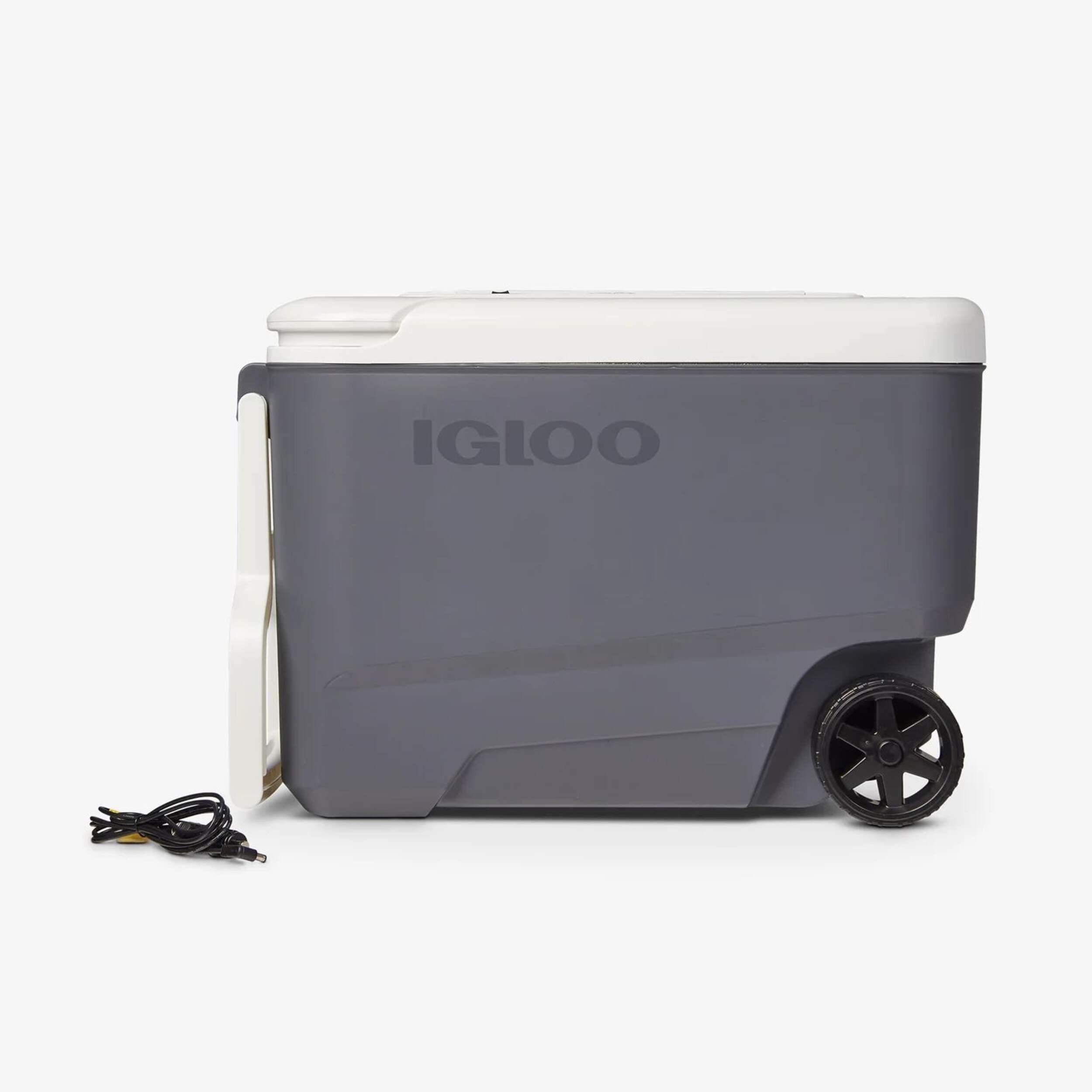 La glacière électrique sur roulettes avec poignée Igloo est une glacière électrique polyvalente et haute performance qui peut refroidir sans glace ou réchauffer les aliments d'un simple interrupteur. Sa fonction de refroidissement thermoélectrique permet de maintenir le contenu jusqu'à 36 °F en dessous de la température extérieure, tandis que la fonction de chauffage permet de réchauffer jusqu'à 135 °F. La conception de cette glacière à roulettes la rend facile à transporter. Elle garde les aliments et les boissons à la température idéale sans avoir besoin de glace.