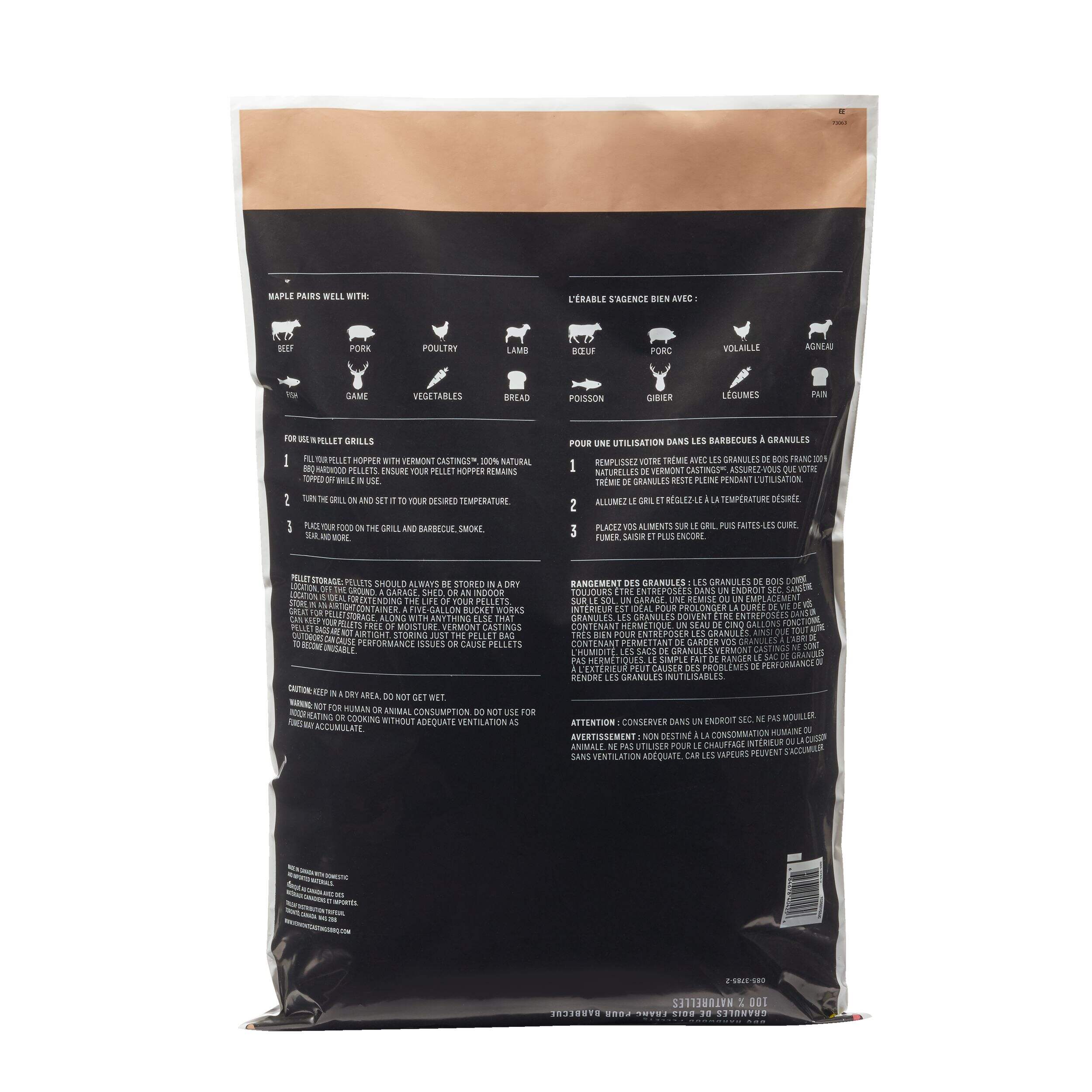 Ajoutez un soupçon de douceur à vos grillades favorites avec les granules de bois Vermont Castings 100 % naturel à saveur d'érable, 20 lb. Ces granules de barbecue sont faites de bois franc 100 % naturel de première qualité et ne contiennent aucun arôme artificiel, parfum en vaporisateur, colle ou produit chimique. Les granules de bois d'érable s'agencent bien avec le boeuf, le porc, la volaille, le gibier, le poisson, l'agneau, les légumes et le pain. Lorsqu'elles sont placées sur le barbecue, elles produisent un arôme sucré et fumé. Les granules de bois sont faciles à utiliser et ont une longue durée de combustion lente. Remplissez simplement votre trémie à granules de bois d'érable Vermont Castings et allumez le barbecue pour griller, saisir ou fumer vos repas. Ces granules de fumage conviennent parfaitement aux barbecues à granules, au gaz, aux fumoirs ou au charbon de bois. Le paquet pèse 9,07 kg (20 lb).