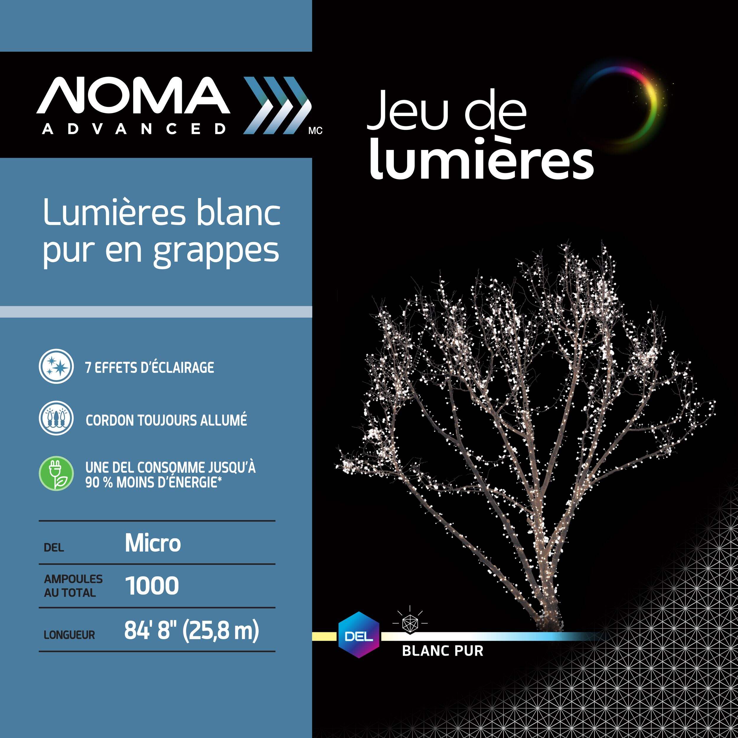 Créez votre propre magie des Fêtes avec la grappe de lumières blanc pur NOMA Advanced, toujours allumé à 1 000 DEL. Ces lumières de Noël à DEL pour l'extérieur sont écoénergétiques et offrent sept jeux de lumières très brillants et sans scintillement. La grappe de lumières utilise un système de rangement à enrouler pratique pour un accès facile. Avec un boîtier d'alimentation intégré, ces lumières de Noël NOMA sont scellées à l'épreuve des intempéries avec une technologie de torons évoluée à éclairage constant pour que vous puissiez garder vos espaces extérieurs éblouissants, même lorsqu'une ampoule se détache ou brûle.