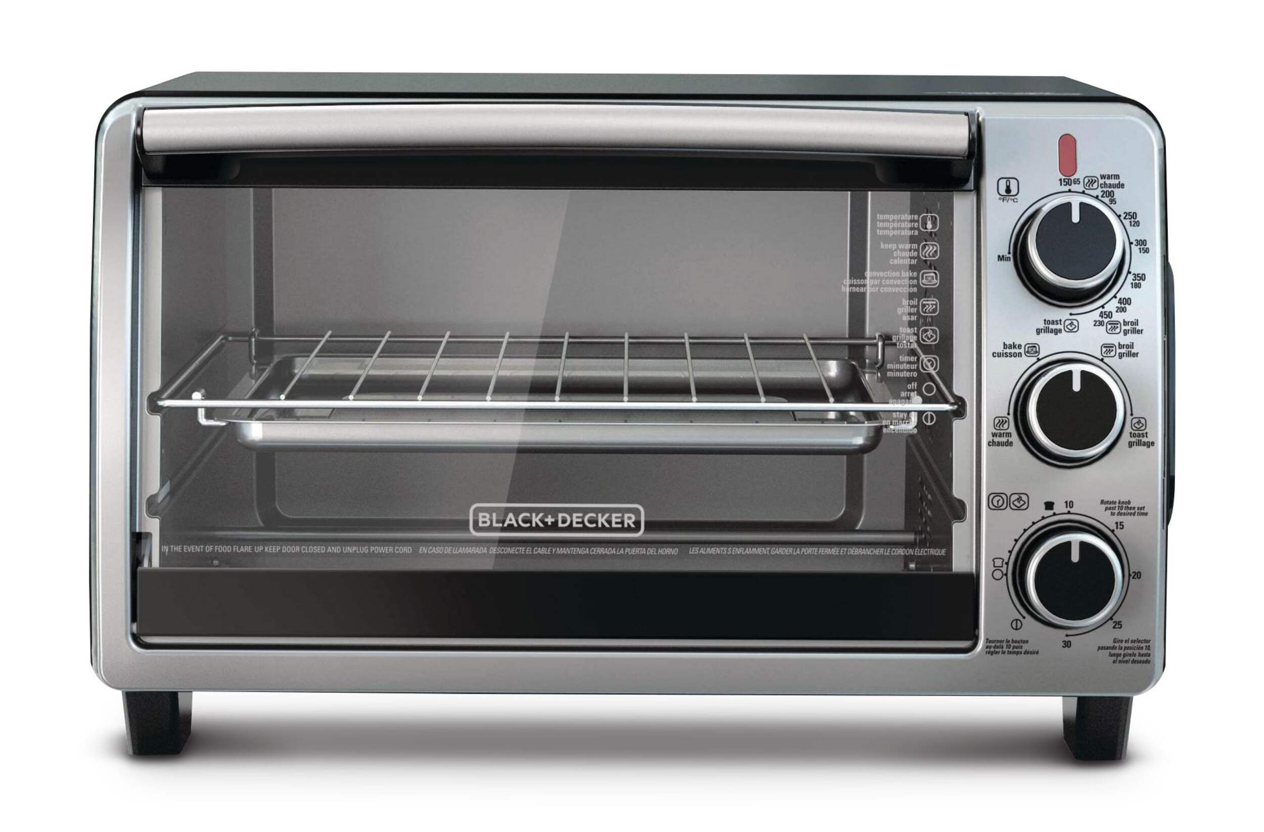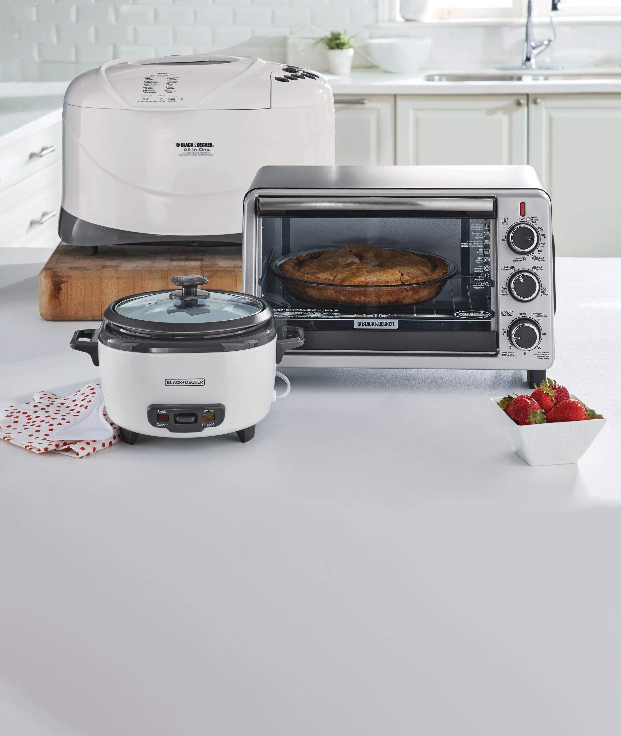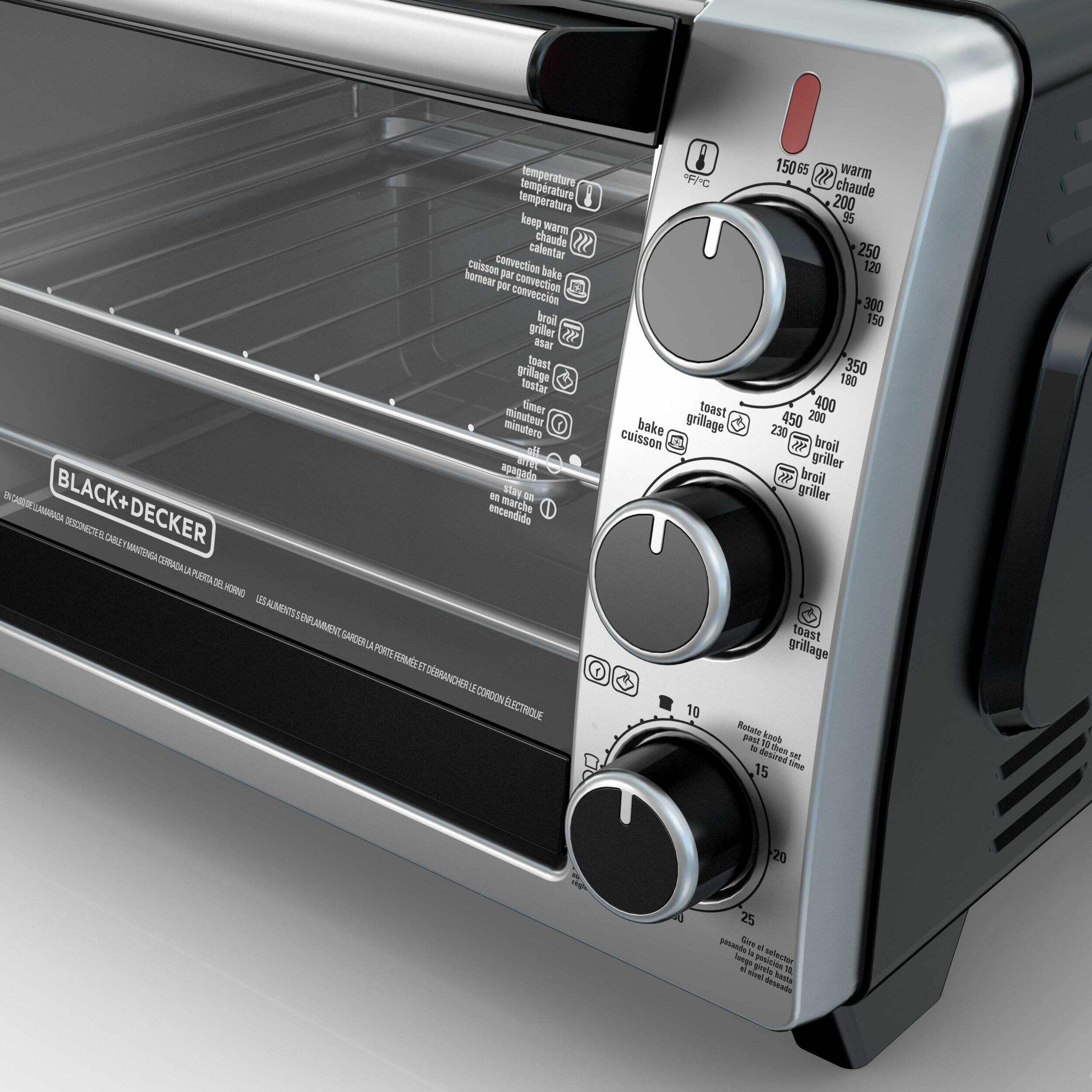 Four grille-pain Black & Decker qui cuit uniformément pour des repas rapides et grillés à la perfection. Son système de convection circulant à haut débit offre une circulation d'air accrue pour des résultats uniformes. Faites griller jusqu'à 6 tranches de pain ou faites cuire une pizza de 9 po facilement. La minuterie de 30 minutes de ce four grille-pain Black & Decker avec fonction de maintien en marche vous permet de savoir quand la cuisson est terminée.