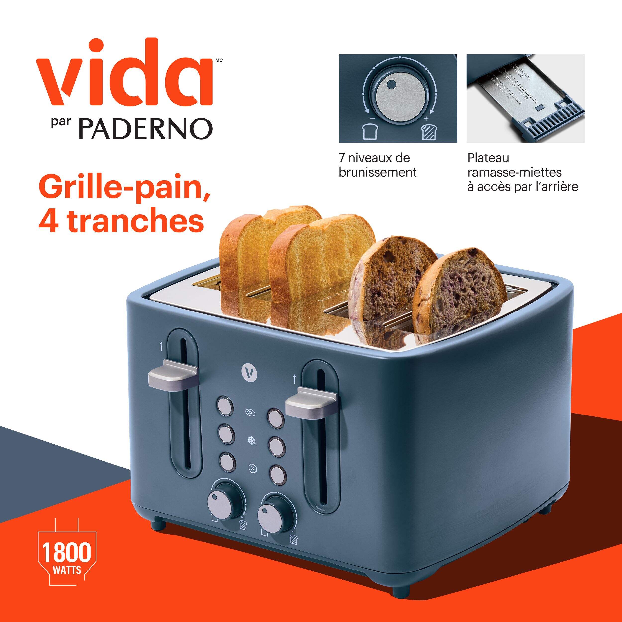 Rehaussez votre expérience de déjeuner avec le grille-pain Vida à 4 tranches en gris de mer. Conçu pour convenir à une grande variété de pains et de bagels, ce grille-pain est doté de fentes très larges et de plusieurs fonctions pour un grillage parfait à tout coup. Le modèle bleu élégant ajoute une touche de style à n'importe quelle cuisine.