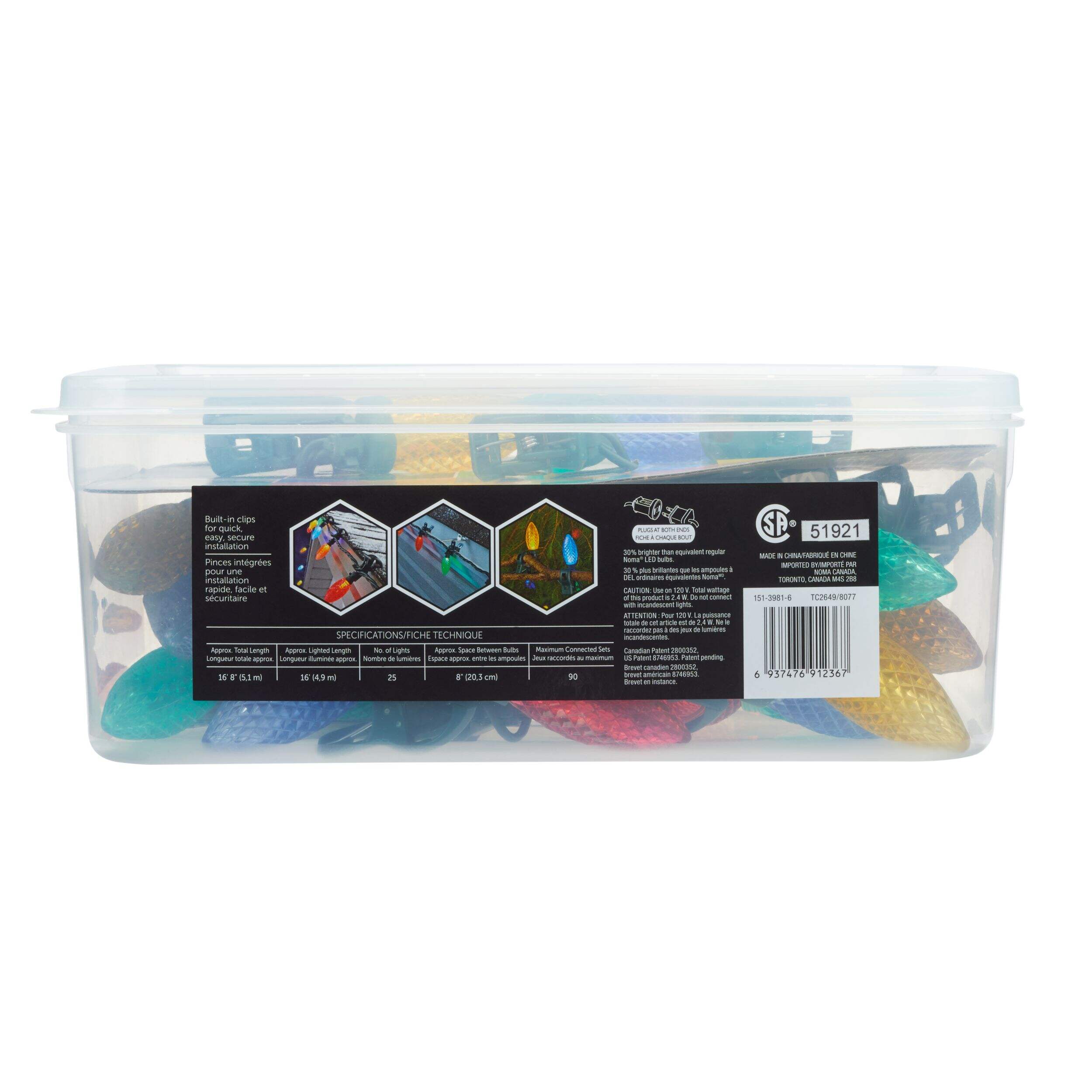 Décorez pour les Fêtes sans effort avec ces guirlandes lumineuses à DEL C9 à fixation rapide NOMA. Elle est dotée de lumières à DEL multicolores et de pinces intégrées qui s'accrochent solidement aux branches, aux rampes ou aux bardeaux tout au long de la saison. Les ampoules peuvent pivoter, vous permettant de personnaliser les effets lumineux et avec des prises à chaque extrémité, vous pouvez brancher jusqu'à 90 jeux de lumières sur une seule prise. Conçues pour durer plus longtemps, ces guirlandes lumineuses étanches vous permettent de créer facilement un superbe décor des Fêtes.