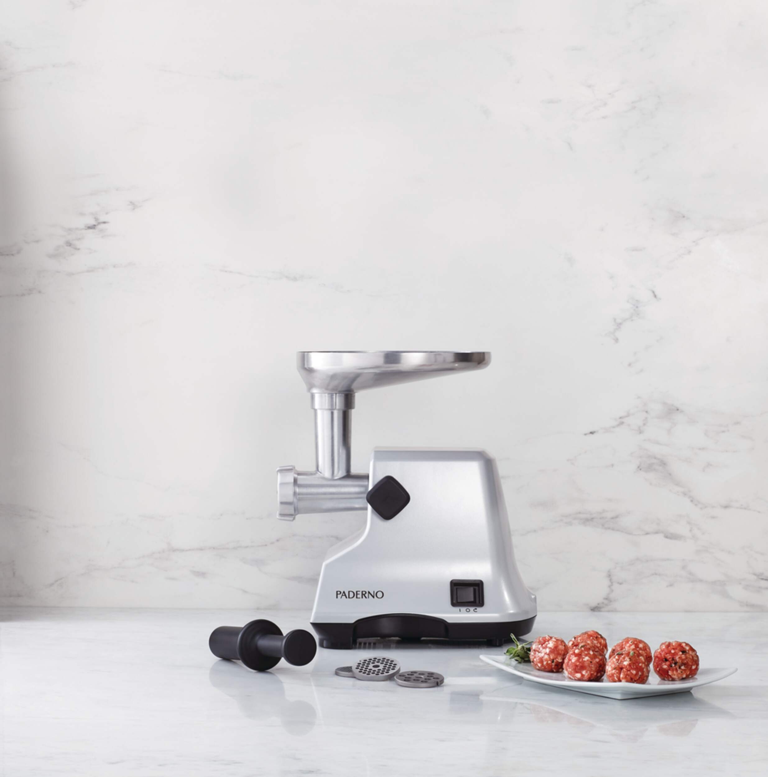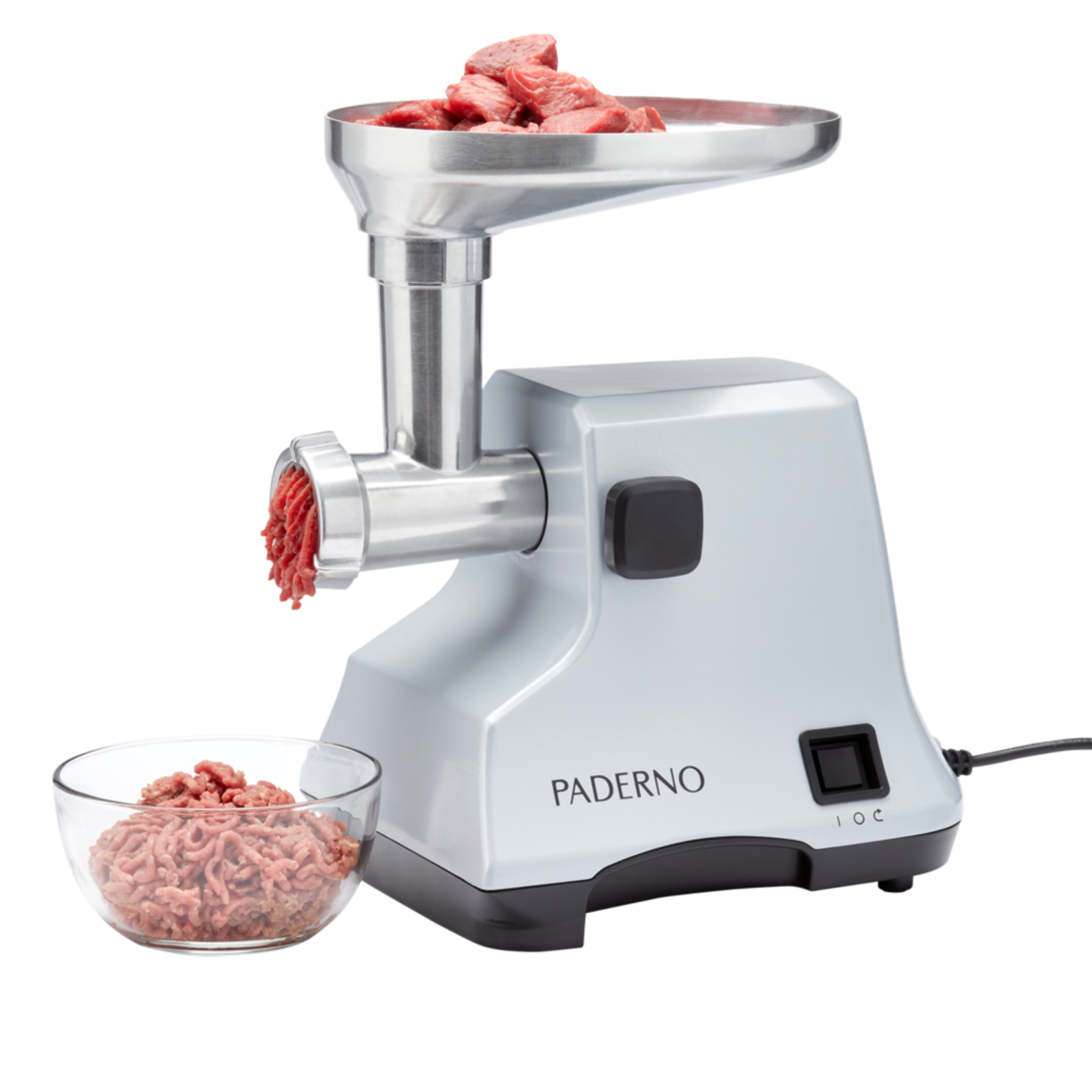Hachoir à viande électrique PADERNO doté d'un puissant moteur de 400 W pouvant hacher jusqu'à 1,1 kg (2,5 lb) de viande fraîche par minute