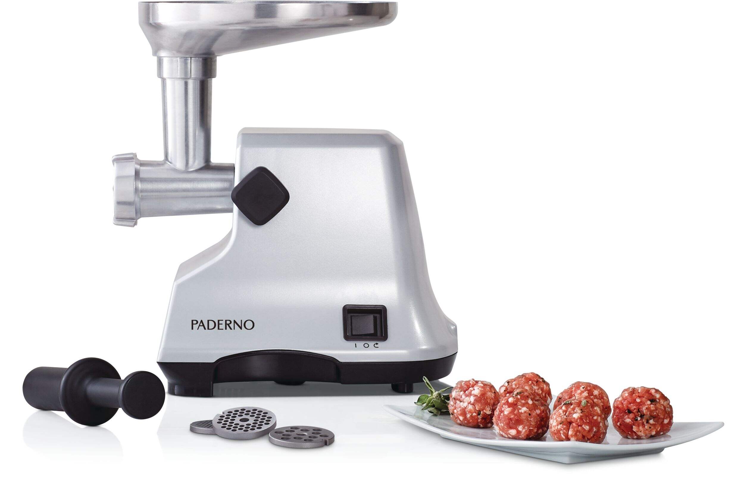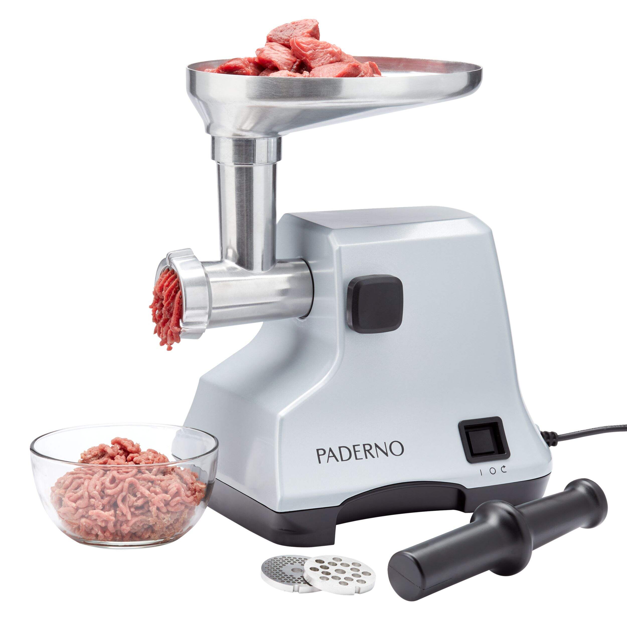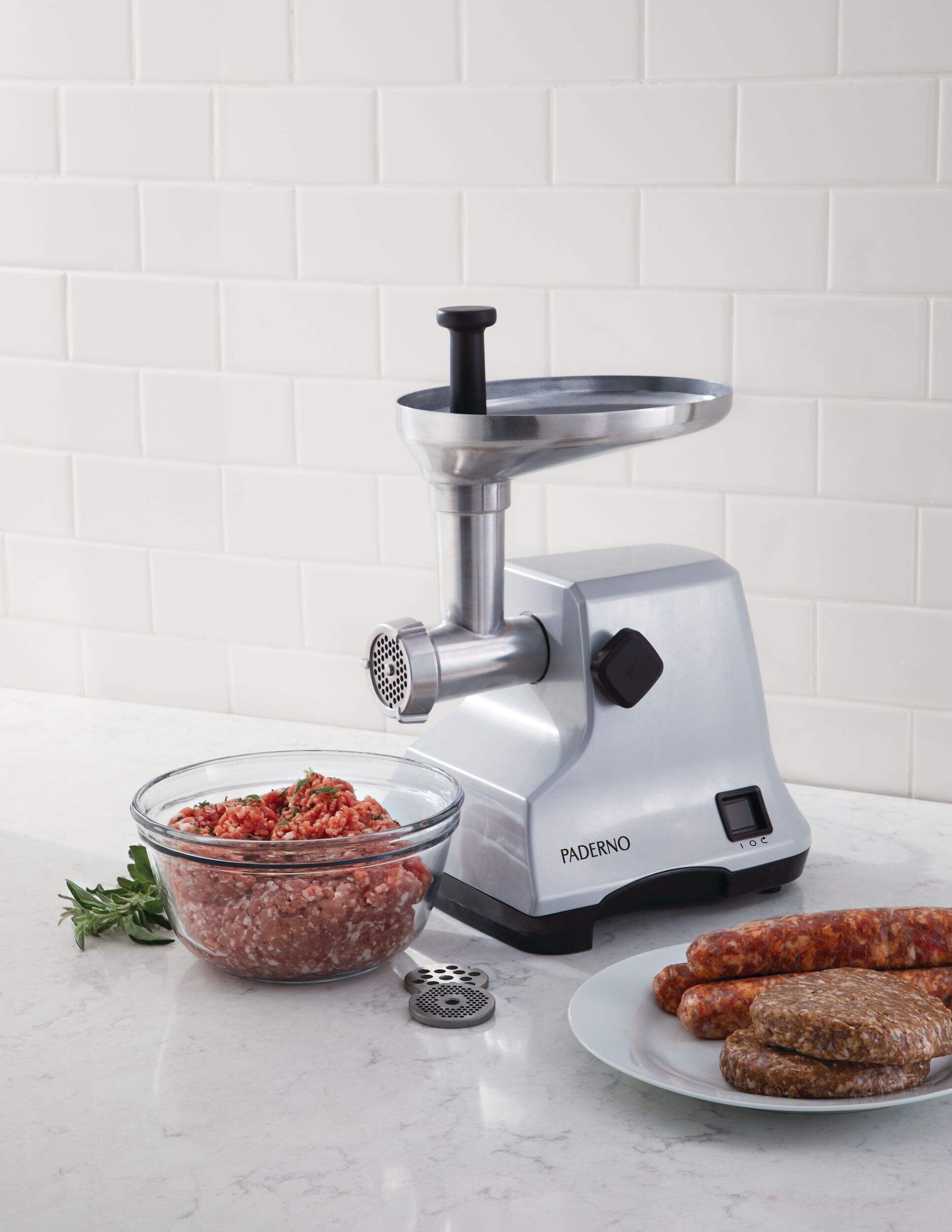 Préparez facilement vos propres saucisses, viandes hachées et plus encore avec ce hachoir à viande électrique PADERNO. Doté d'un puissant moteur de 400 W qui peut contenir jusqu'à 1,1 kg (2,5 lb) de viande fraîche par minute, donc il est facile de hacher du boeuf, du porc, de la dinde ou du poulet pour toute la famille. Doté d'une fonction d'impulsion inversée qui retire les bouchons de façon sécuritaire et efficace, ainsi que d'une trémie plus grande avec un entonnoir pratique qui guide la viande en toute sécurité dans le hachoir à viande. Fabriqué en aluminium moulé durable, ce hachoir à viande est durable et facile à nettoyer au besoin. Toutes les pièces sont amovibles pour faciliter le nettoyage et garantir que votre hachoir est hygiénique pour la prochaine fois. Conçu pour la sécurité, le hachoir à viande est doté d'un verrou qui fixe la tête à la base. Vous pouvez personnaliser entièrement votre texture de broyage avec trois plaques de broyage : mouture grossière, moyenne ou fine, ainsi que 2 embouts coniques pour faire des saucisses maison dans des boyaux.