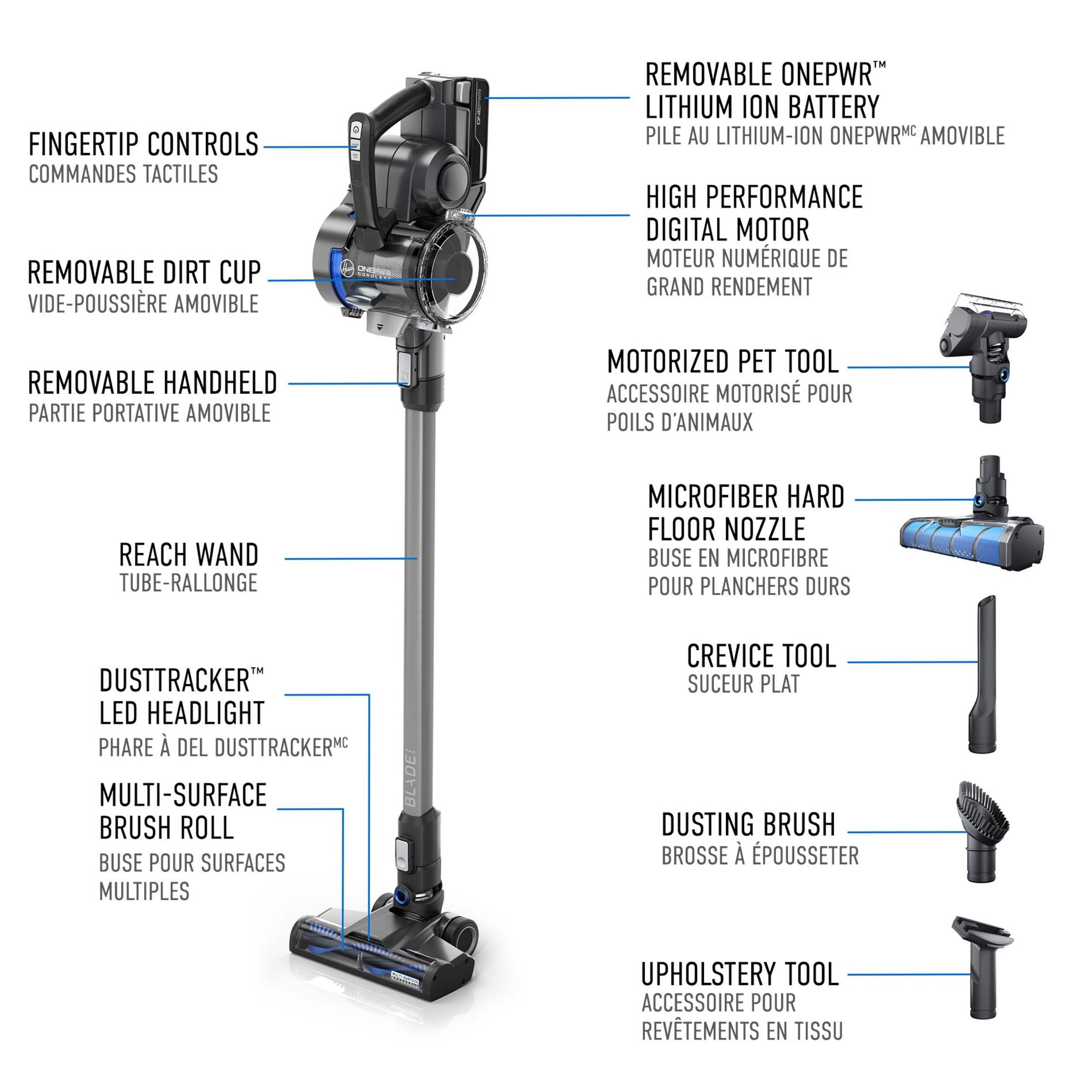 Aspirateur sans fil HooverMD ONEPWRTM Blade MAX doté d'un moteur numérique à rendement élevé qui fournit un maximum de puissance pour venir à bout des dégâts tenaces