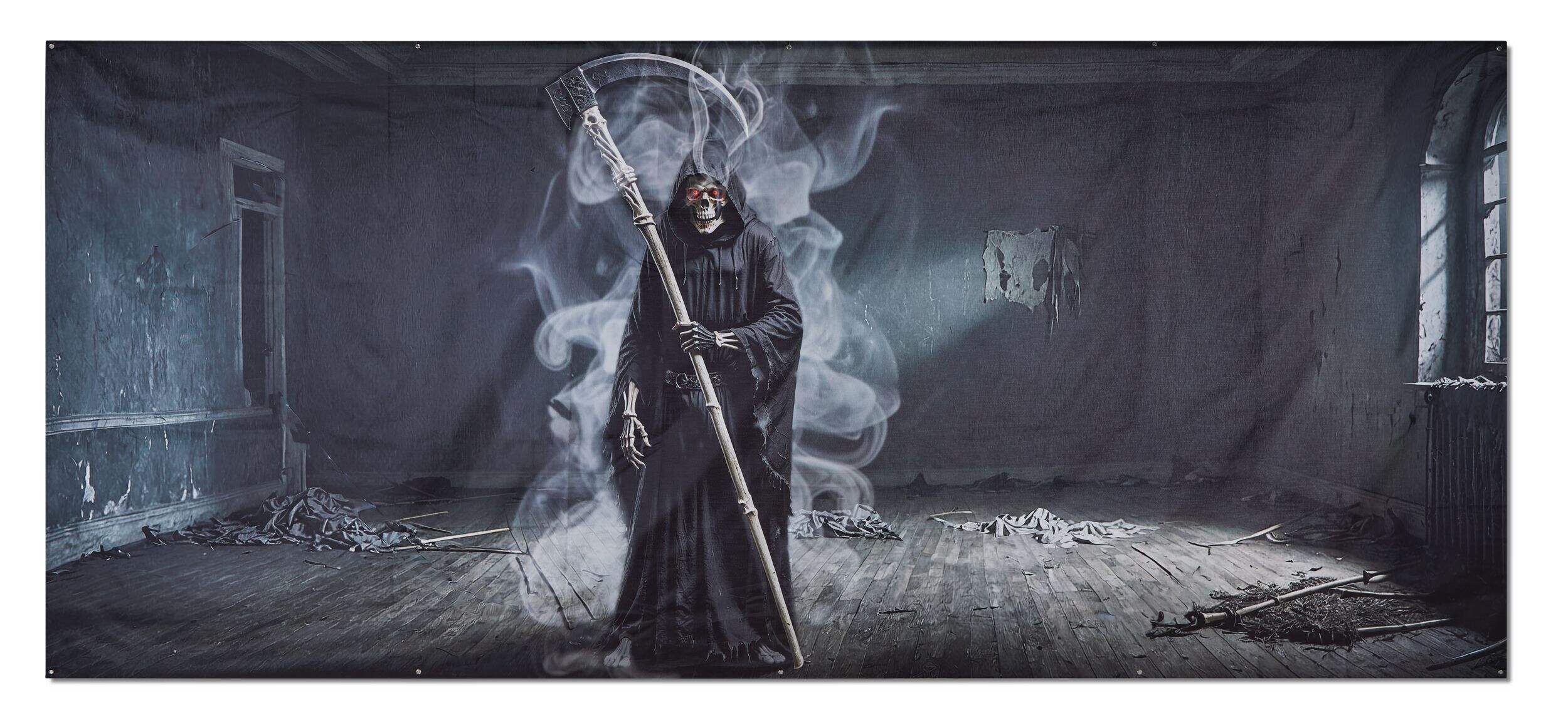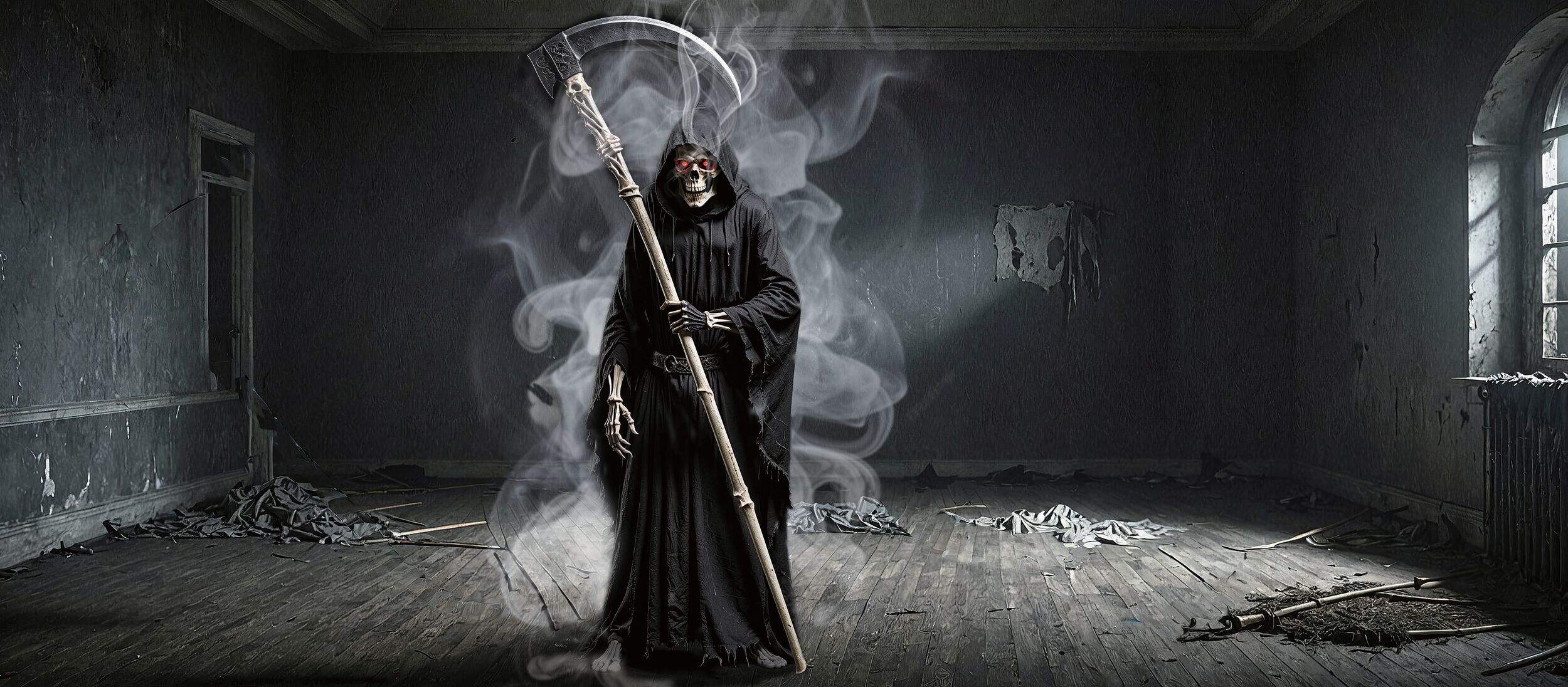 Comprend une pièce ouverte avec une faucheuse menaçante au centre