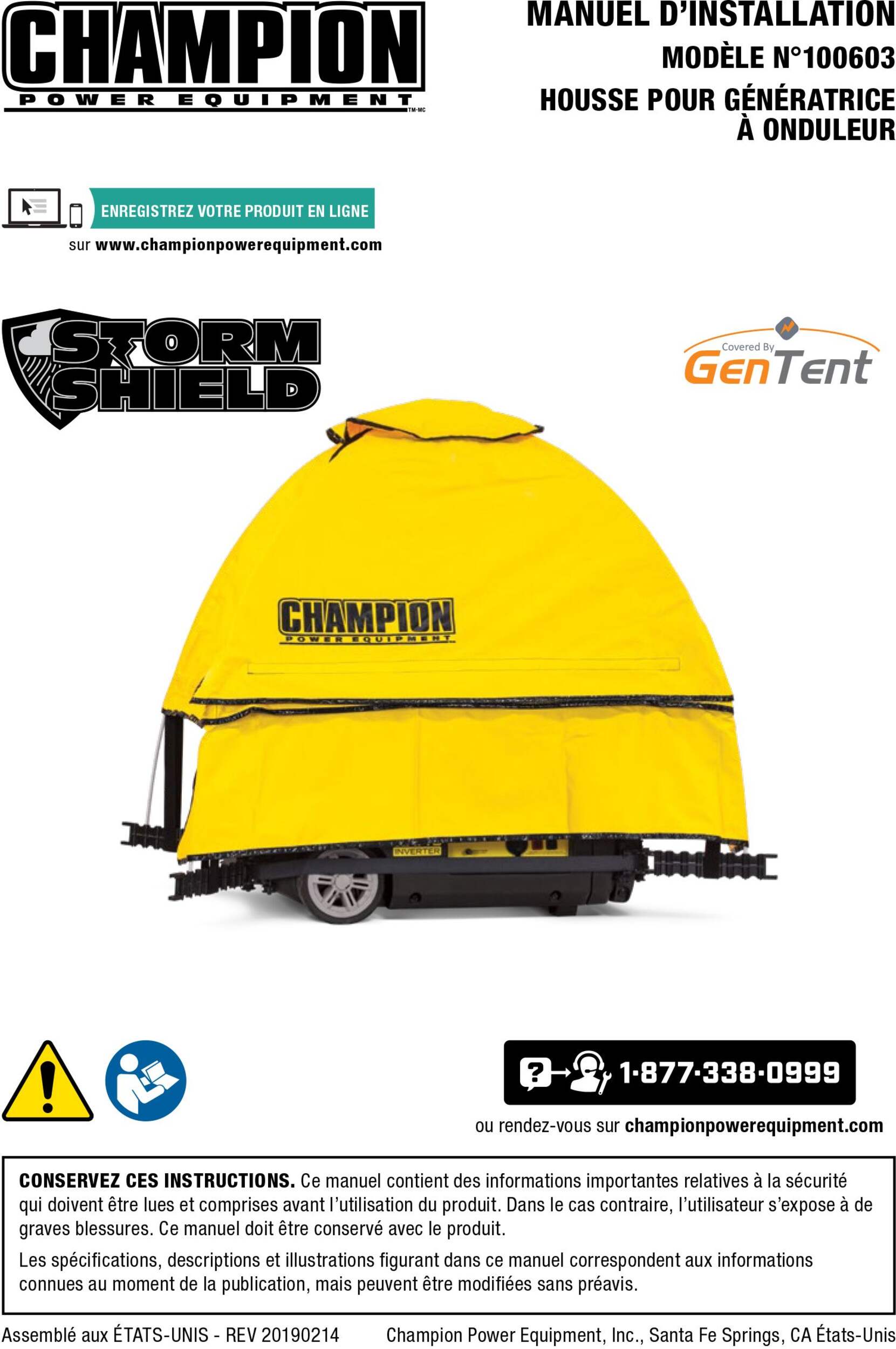 Protégez votre génératrice à onduleur de 2 000 à 5 500 W avec la housse résistante aux intempéries Champion Storm Shield de GenTentMD. La conception à circulation d'air naturelle permet un fonctionnement et un entretien sécuritaires lorsque la housse est en place et résiste aux vents allant jusqu'à 70 mi/h, à la pluie jusqu'à 12 po et à des charges de neige allant jusqu'à 18 po par jour.