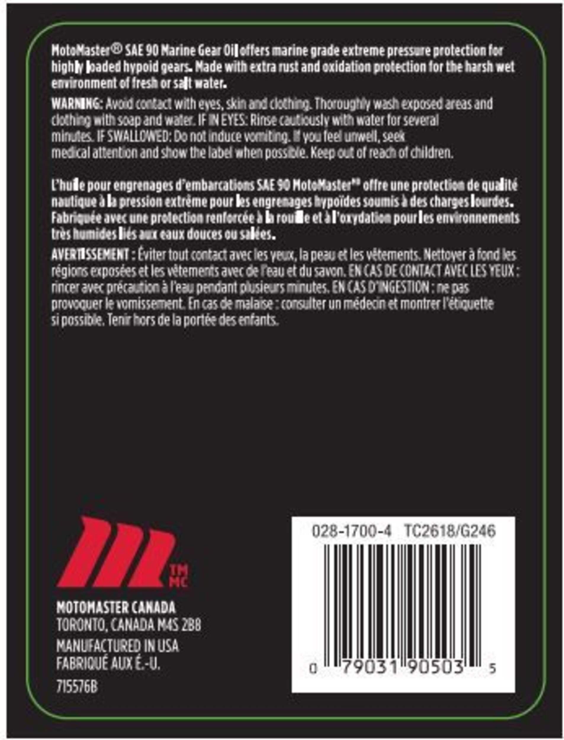 L'huile pour engrenages MotoMaster Marine SAE 90 est une huile de qualité supérieure conçue pour les applications nautiques. Cette huile pour engrenages de qualité supérieure est soigneusement conçue pour offrir une lubrification supérieure et assurer un fonctionnement optimal des engrenages. Ce produit offre une protection contre la rouille supplémentaire, ce qui le rend idéal pour les conditions humides et salées.