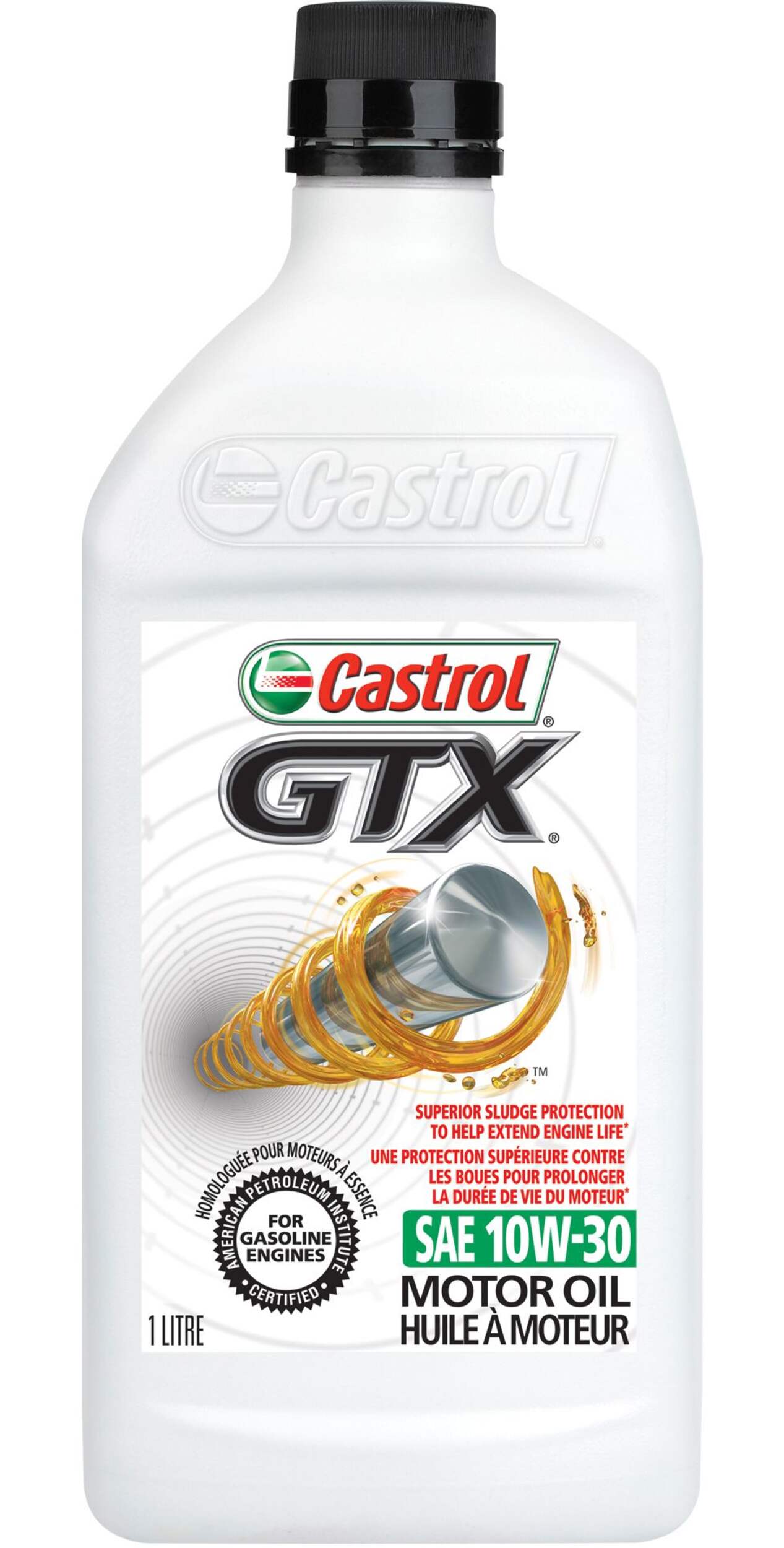 Huile à moteur classique Castrol GTX pour une protection supérieure contre la boue, les défaillances causées par la chaleur et la perte de viscosité; additifs antiusure aidant à prolonger la durée de vie du moteur et contribuant à réduire sa consommation d'huile