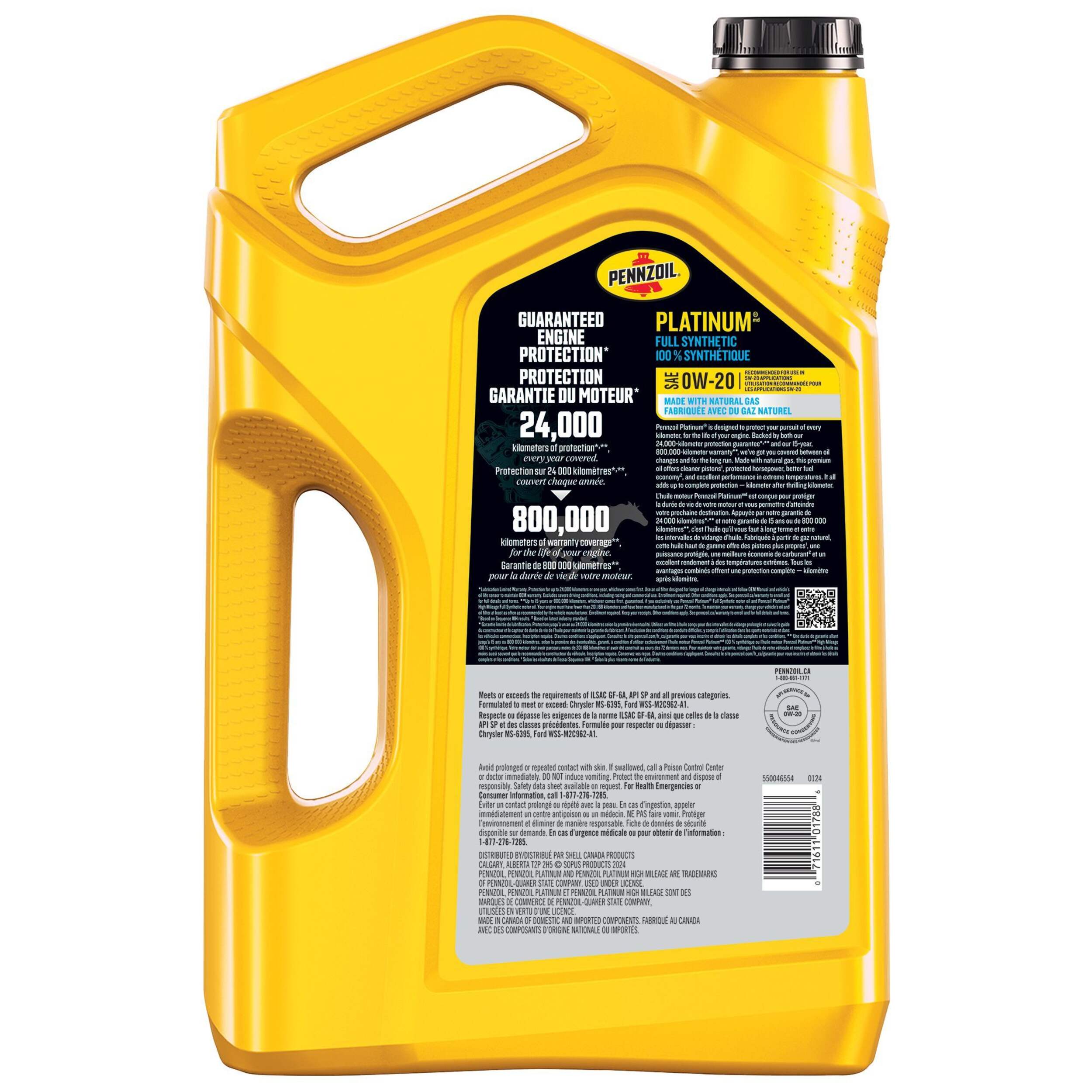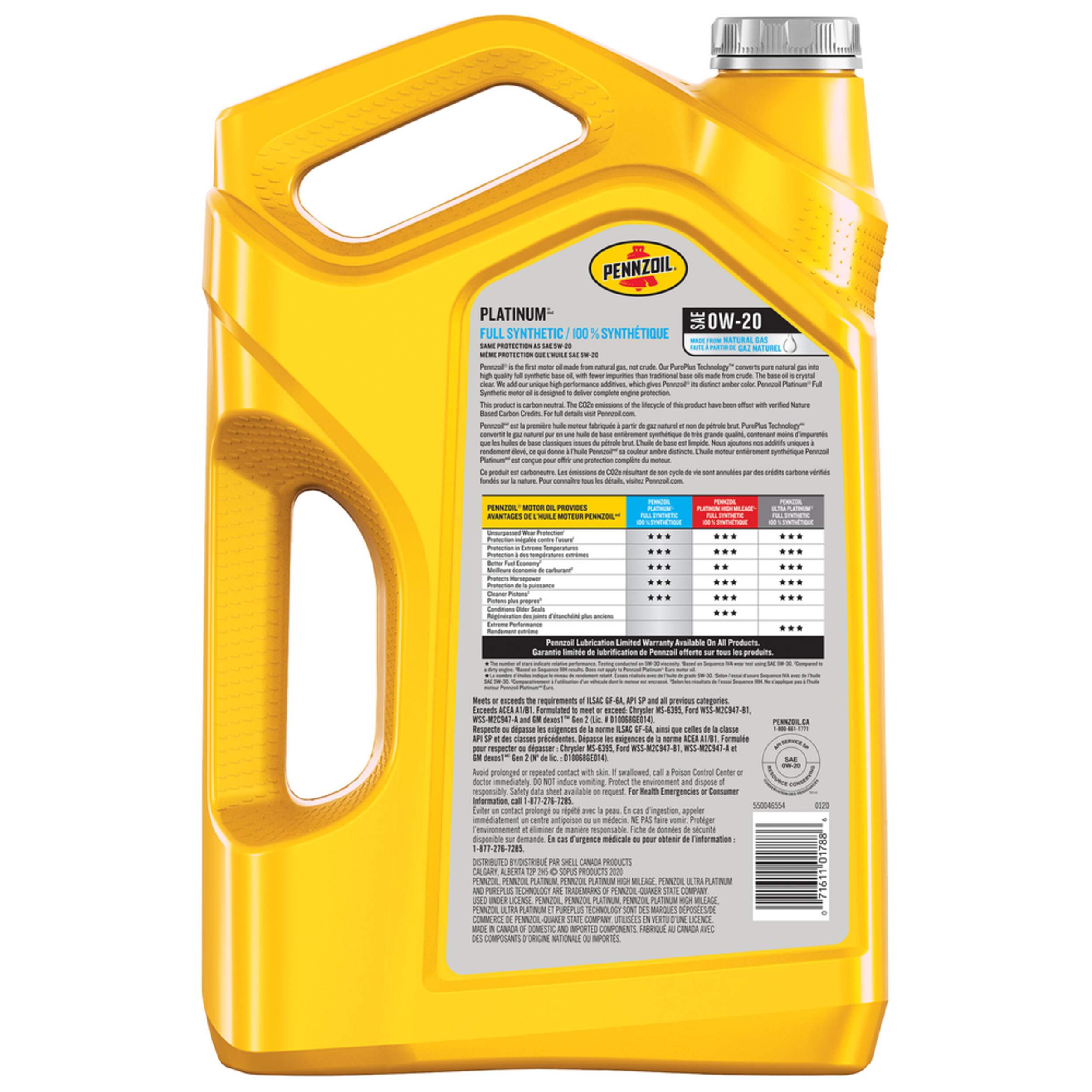 L'huile moteur entièrement synthétique Pennzoil Platinum SAE 0W-20 est fabriquée à partir de gaz naturel et non de pétrole brut. Elle est spécialement conçue à partir de notre technologie gaz à liquide PurePlusMC, qui est un processus breveté qui convertit le gaz naturel pur en huile de base entièrement synthétique de haute qualité. Notre huile de base de haute qualité contient moins d'impuretés que les huiles de base fabriquées à partir de pétrole brut, et elle est homologuée et répond aux exigences de garantie des véhicules de la spécification GM dexos 1MC Gen 2 qui sont établies pour répondre aux technologies modernes des moteurs d'aujourd'hui.