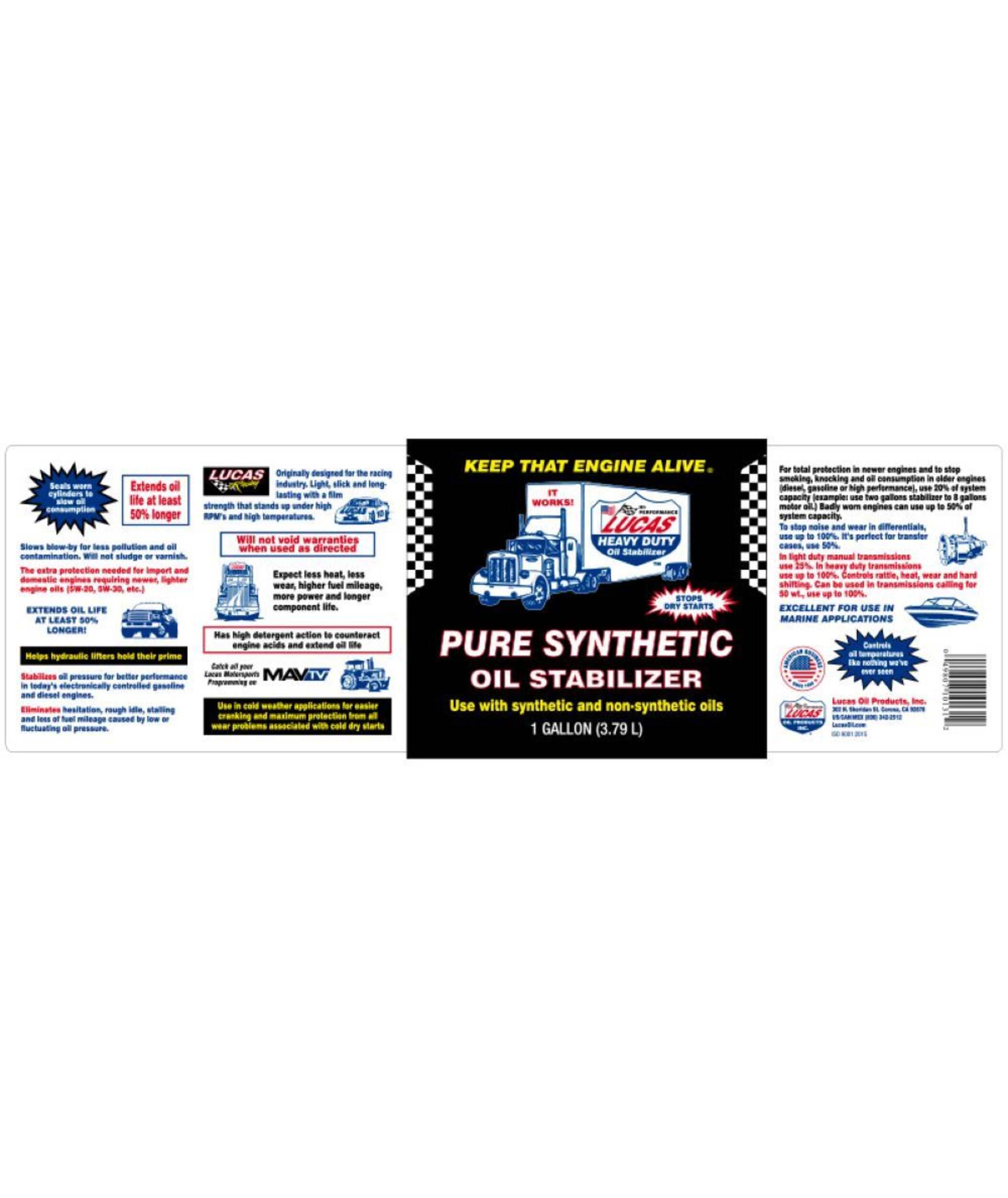 Stabilisateur d'huile synthétique Lucas qui élimine le bruit et l'usure associés aux huiles à moteur légères