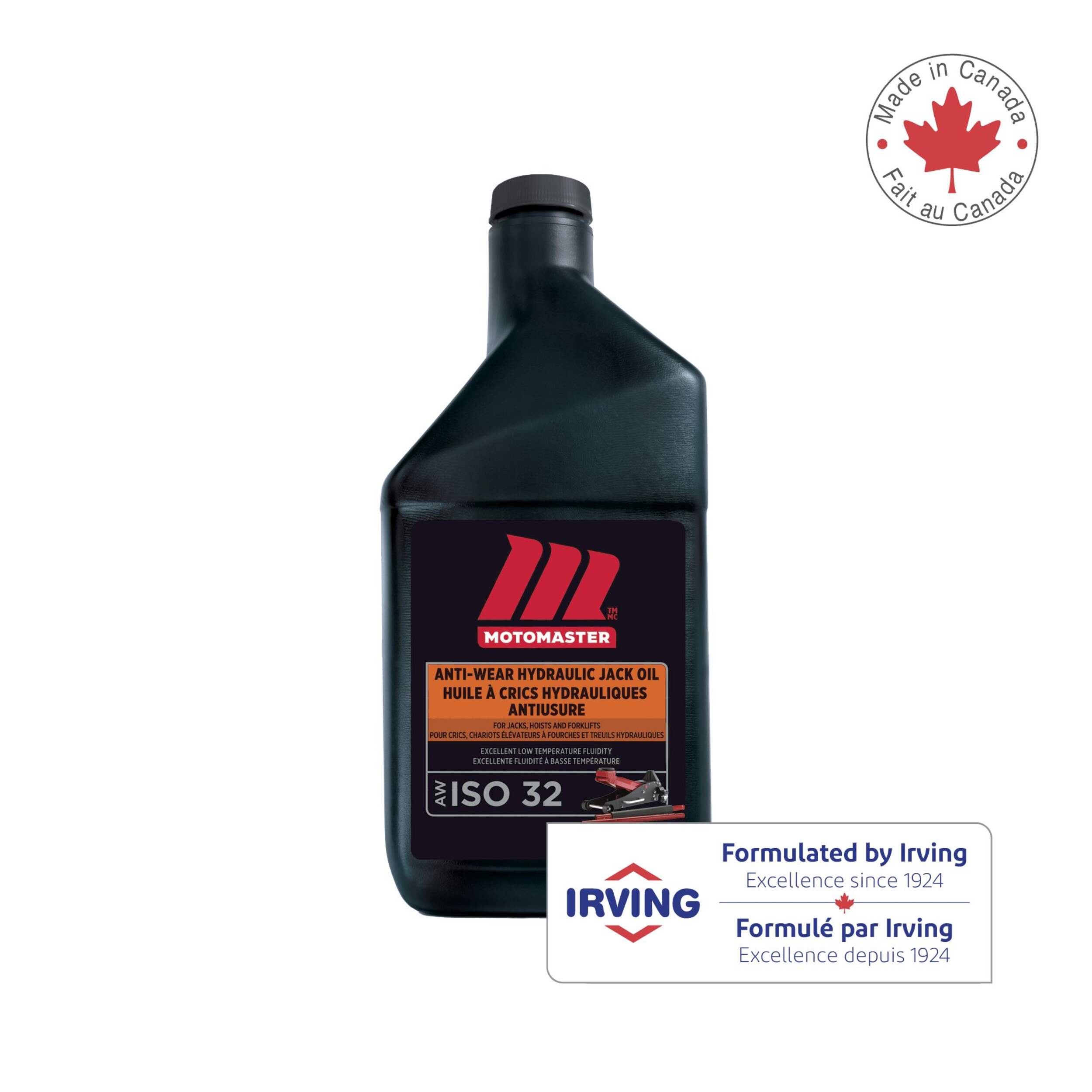 Huile hydraulique MotoMaster Anti-Wear ISO AW32 spécialement formulée pour offrir une protection contre l'usure, la rouille et la corrosion sur les crics, les élévateurs, et les chariots élévateurs