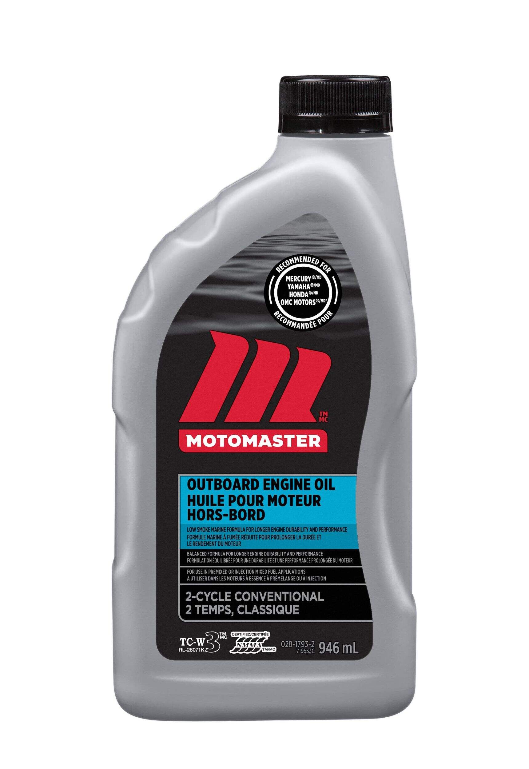 Huile à moteur pour hors-bord 2 temps MotoMaster conçue pour les moteurs à prémélange et à injection