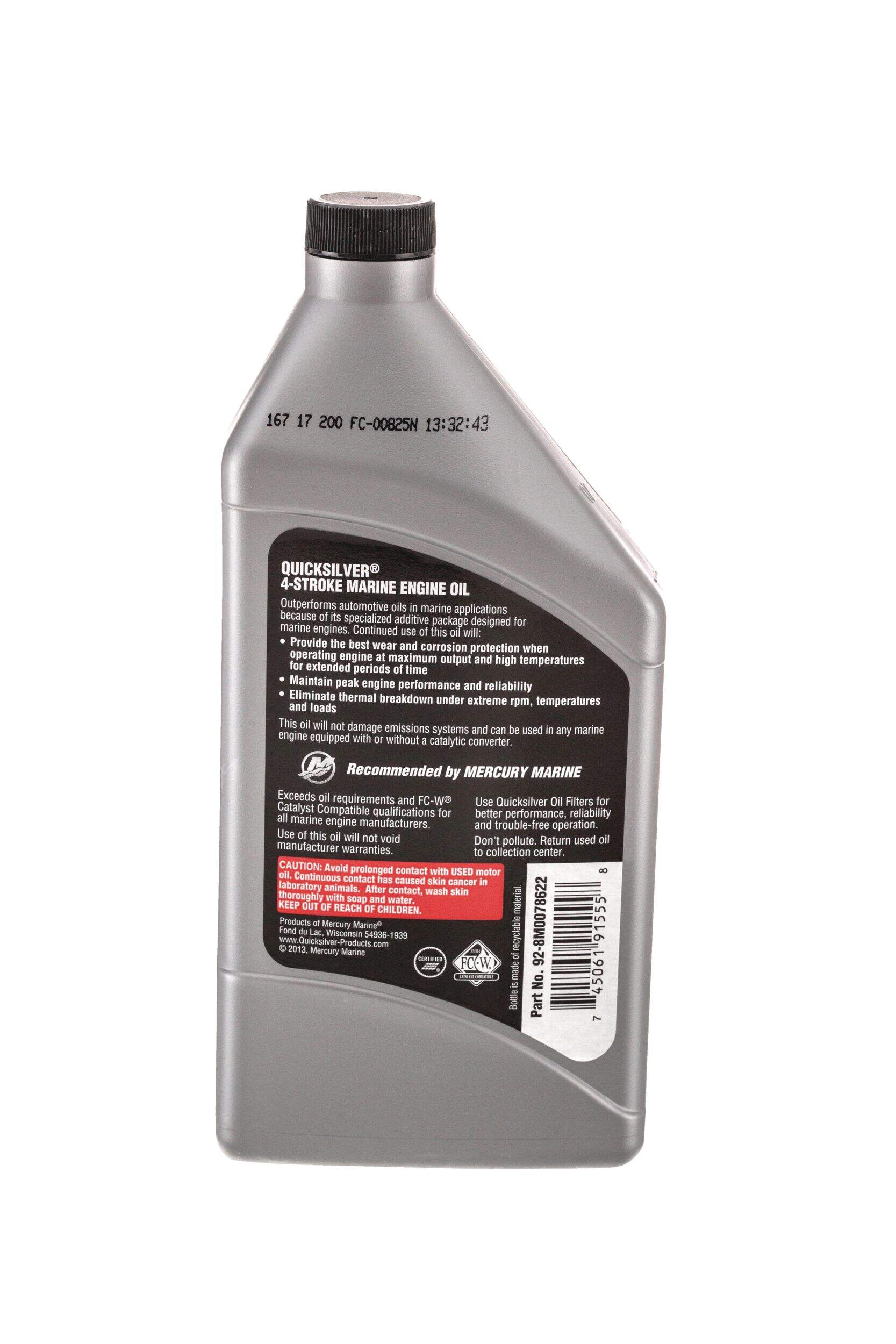 L'huile synthétique pour moteur marin 4 temps 25W40 de Quicksilver est spécialement conçue pour tous les moteurs marins 4 temps, y compris les moteurs hors-bord, Mercruiser, haute performance et Stern Drive/Inboard. Surpasse tous les critères d'industrie d'huile marine pour moteur à 4 temps et compatible avec les catalyseurs FC-W et FC-W Elle offre également une protection contre l'usure des moteurs et contre la corrosion. Sa viscosité est 25W40. Ce produit est conçu et approuvé pour toutes les applications marines à 4 temps, ce qui maintient l'efficacité de votre moteur.