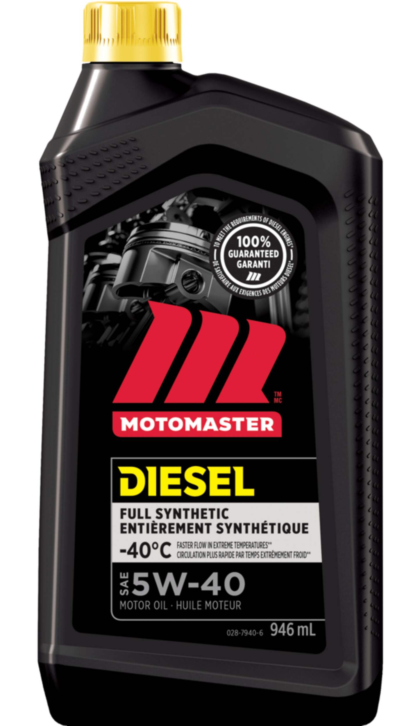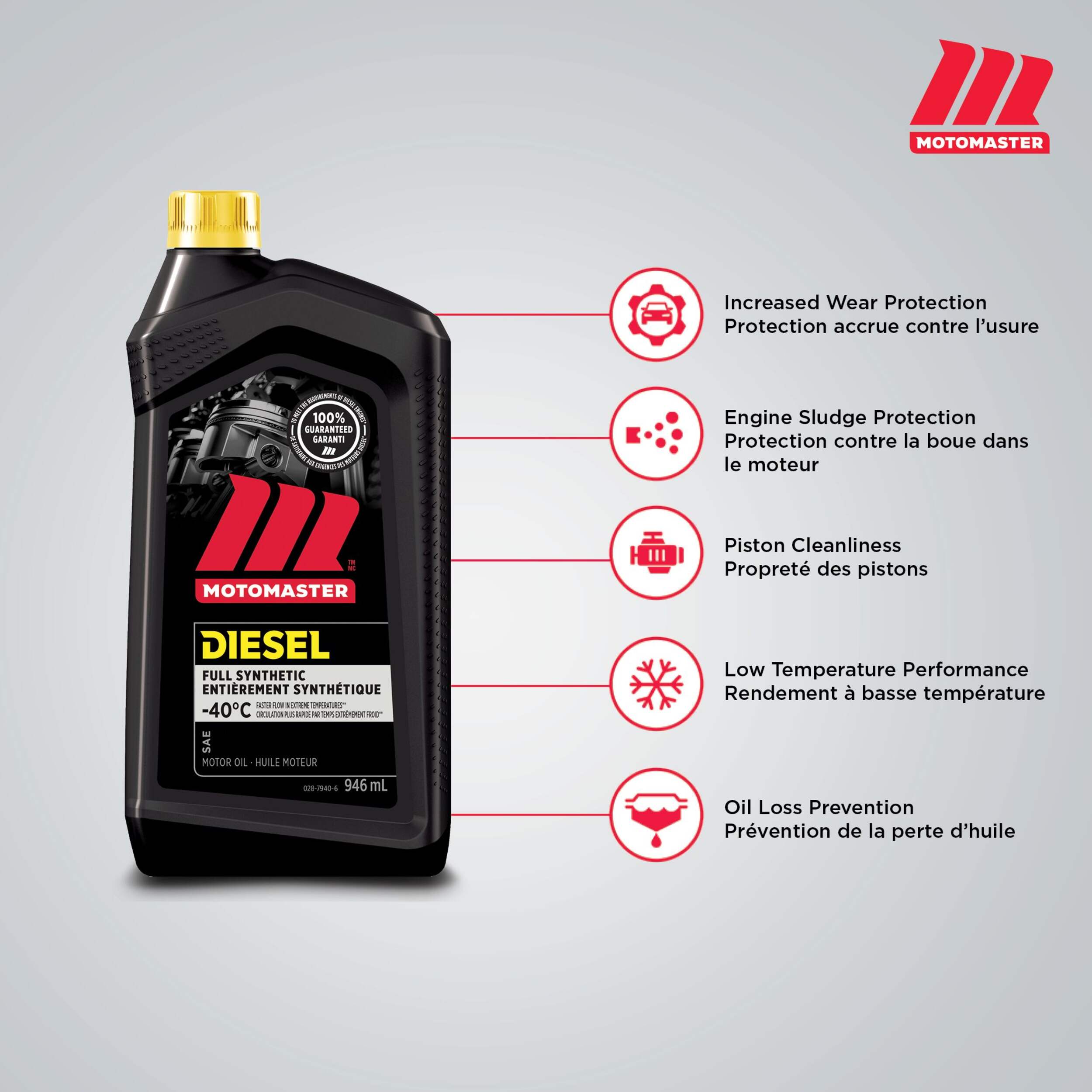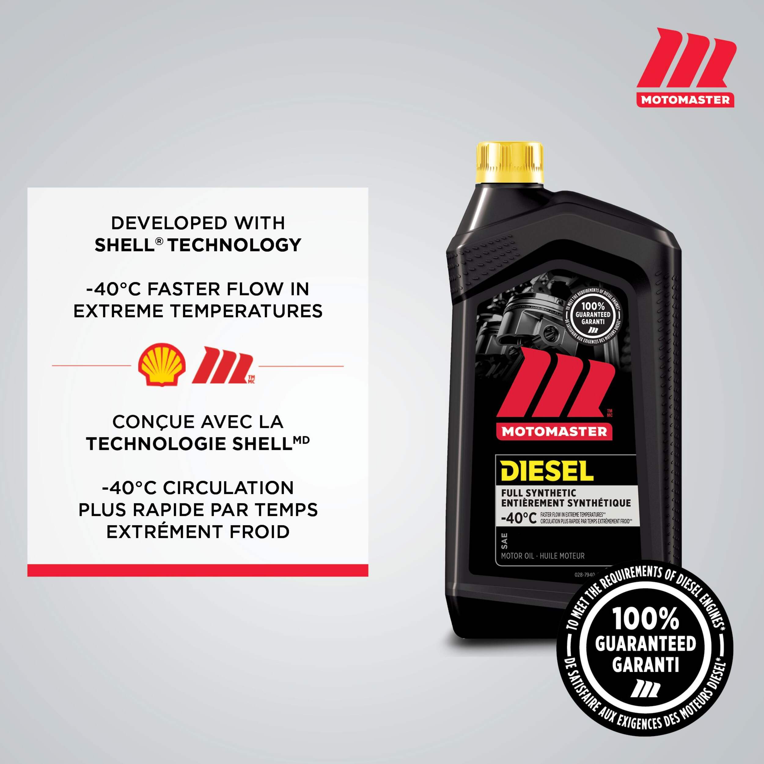 Huile synthétique MotoMaster 5W40 pour moteur diesel à combinaison équilibrée d'huiles synthétiques de base de qualité supérieure pour en améliorer les propriétés à haute et basse températures