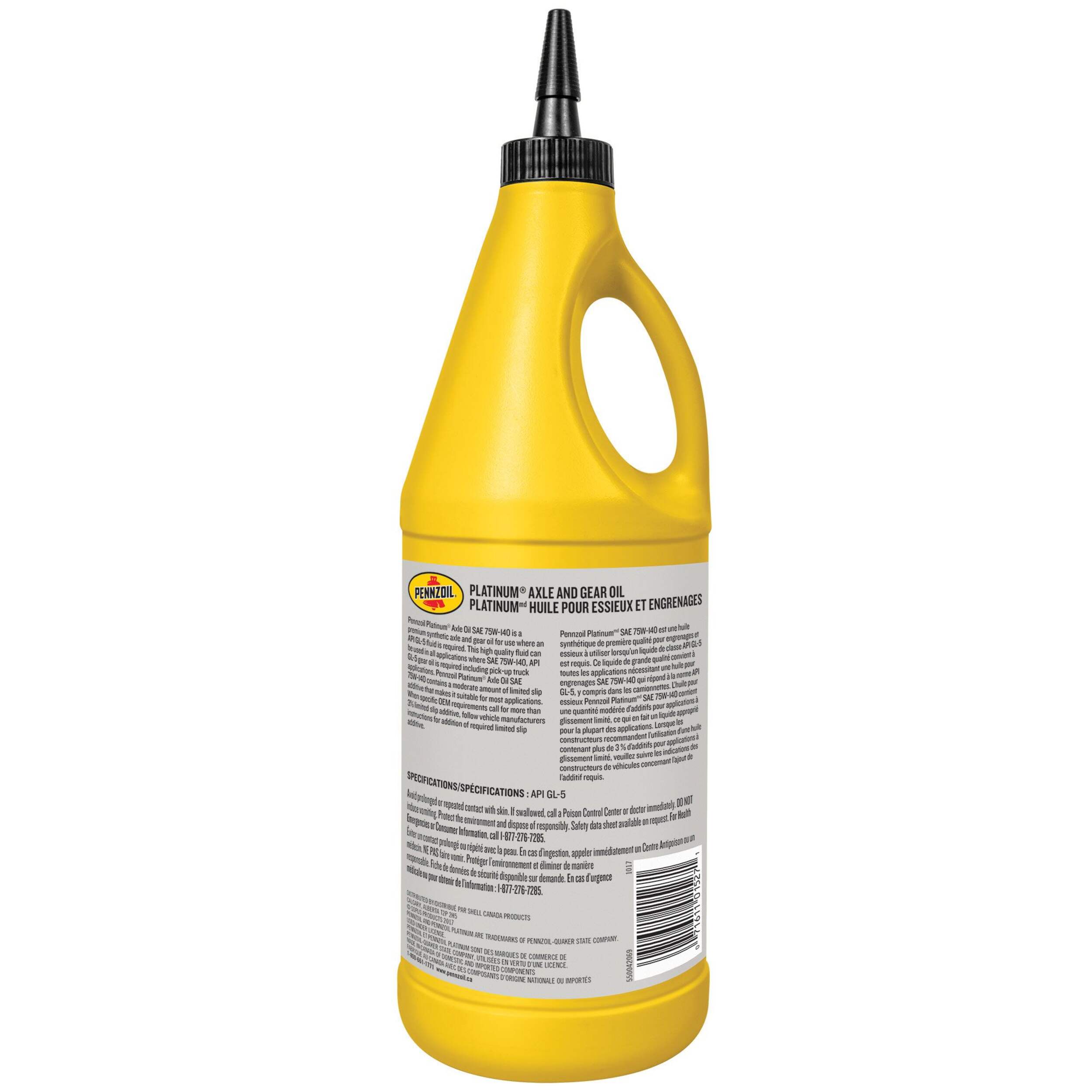 Huile pour essieu Pennzoil PlatinumMD 75W-140 qui répond à toutes les exigences de la classification de service API GL-5.MT-1 et SAE J2360