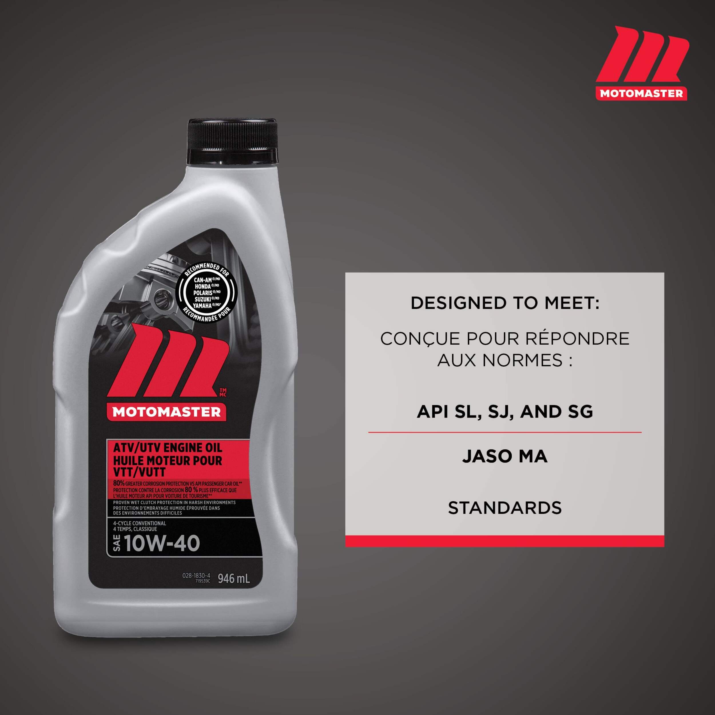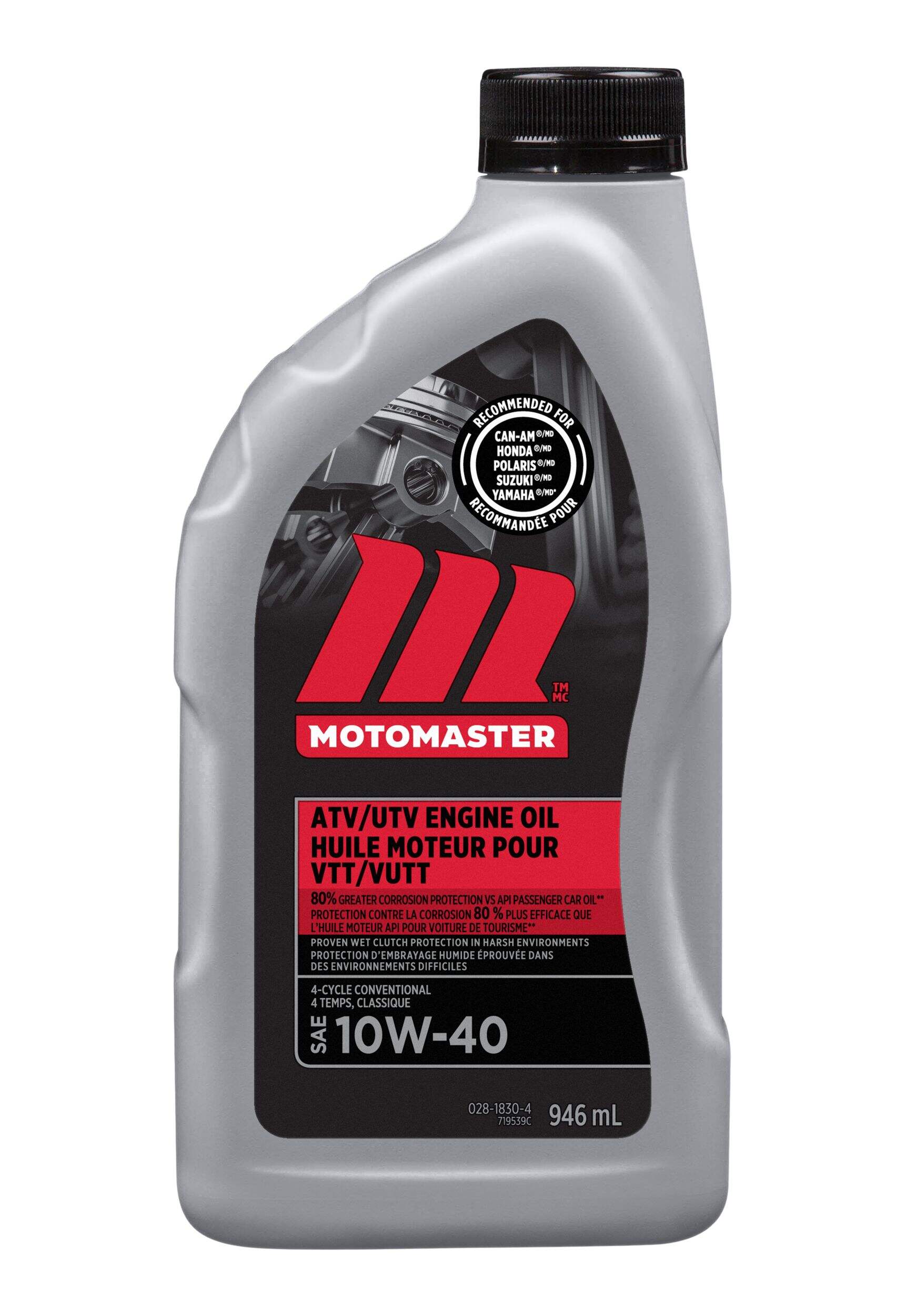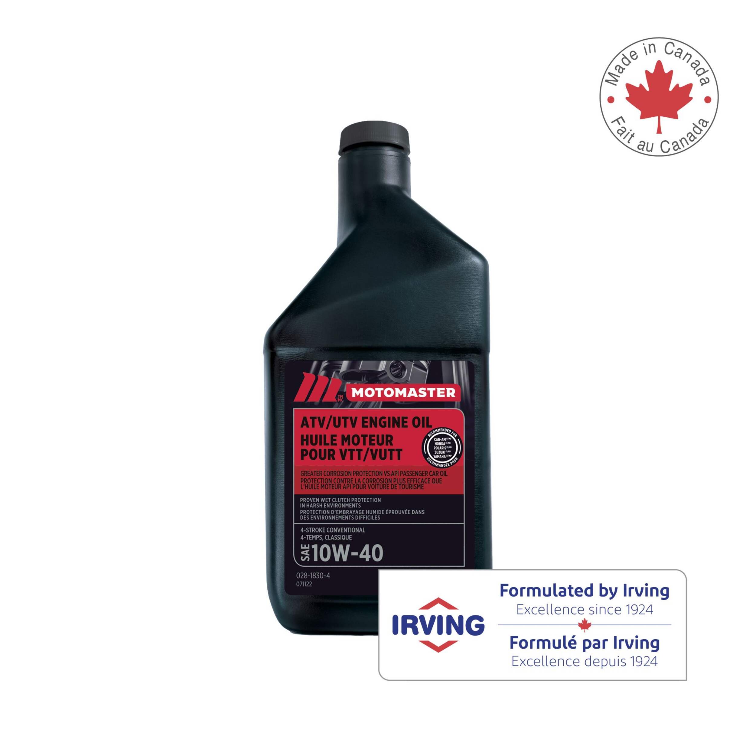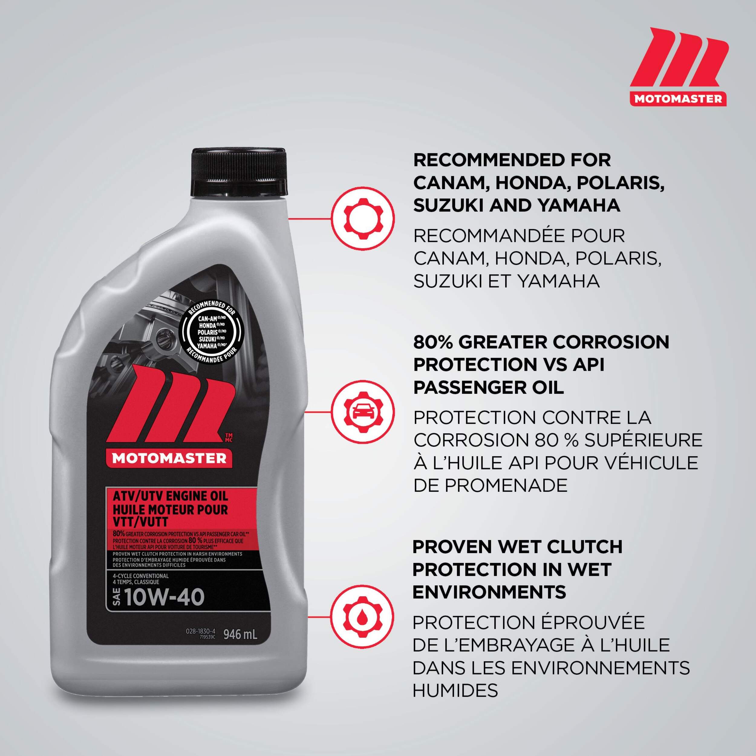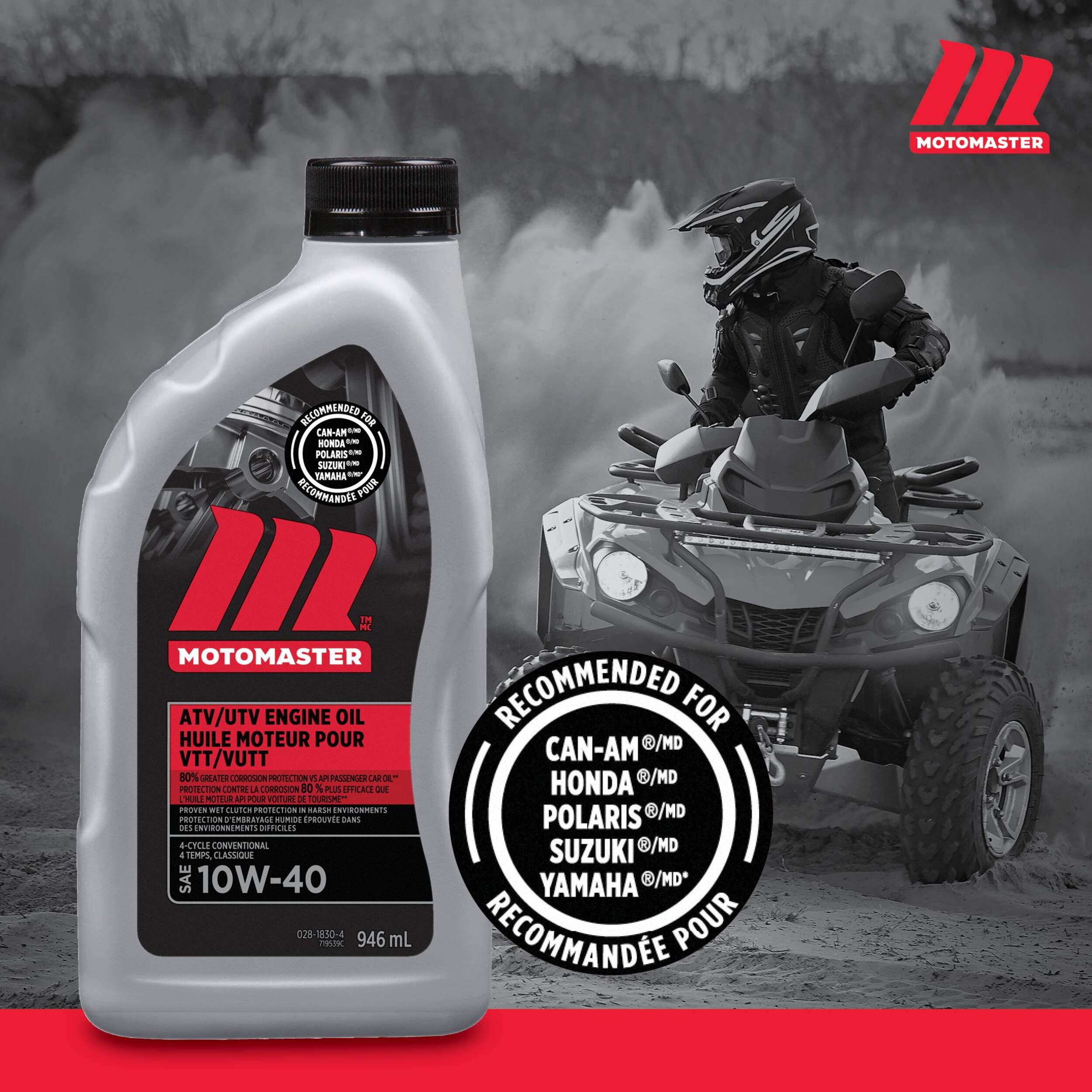 Huile à moteur VTT MotoMaster 10W40 recommandée pour les modèles CanAm, Honda, Polaris, Suzuki et Yamaha