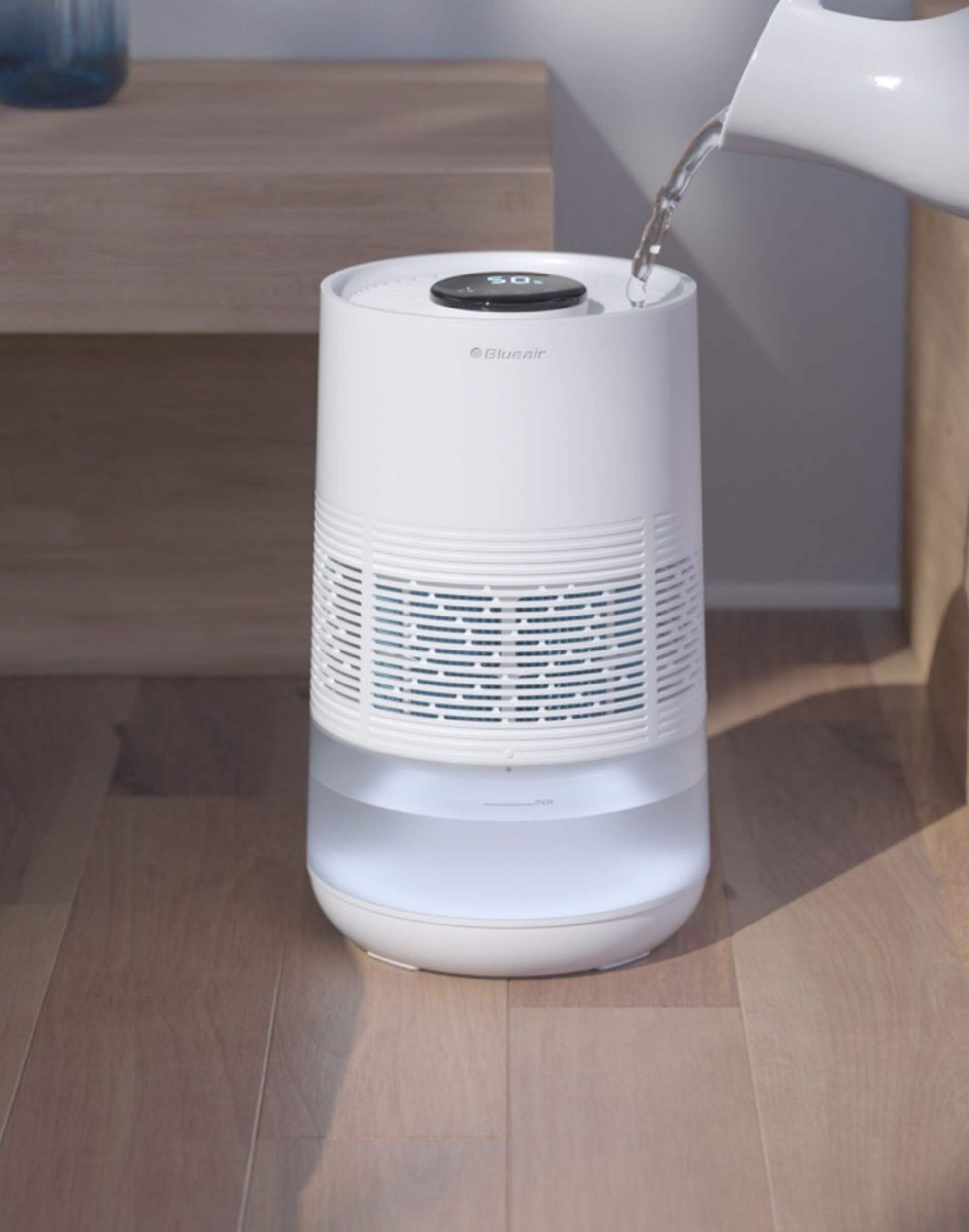 Humidificateur d'air à évaporation intelligent à remplissage par le haut Blueair InvisibleMist, autonomie de 48 heures, pour les grandes pièces, blanc