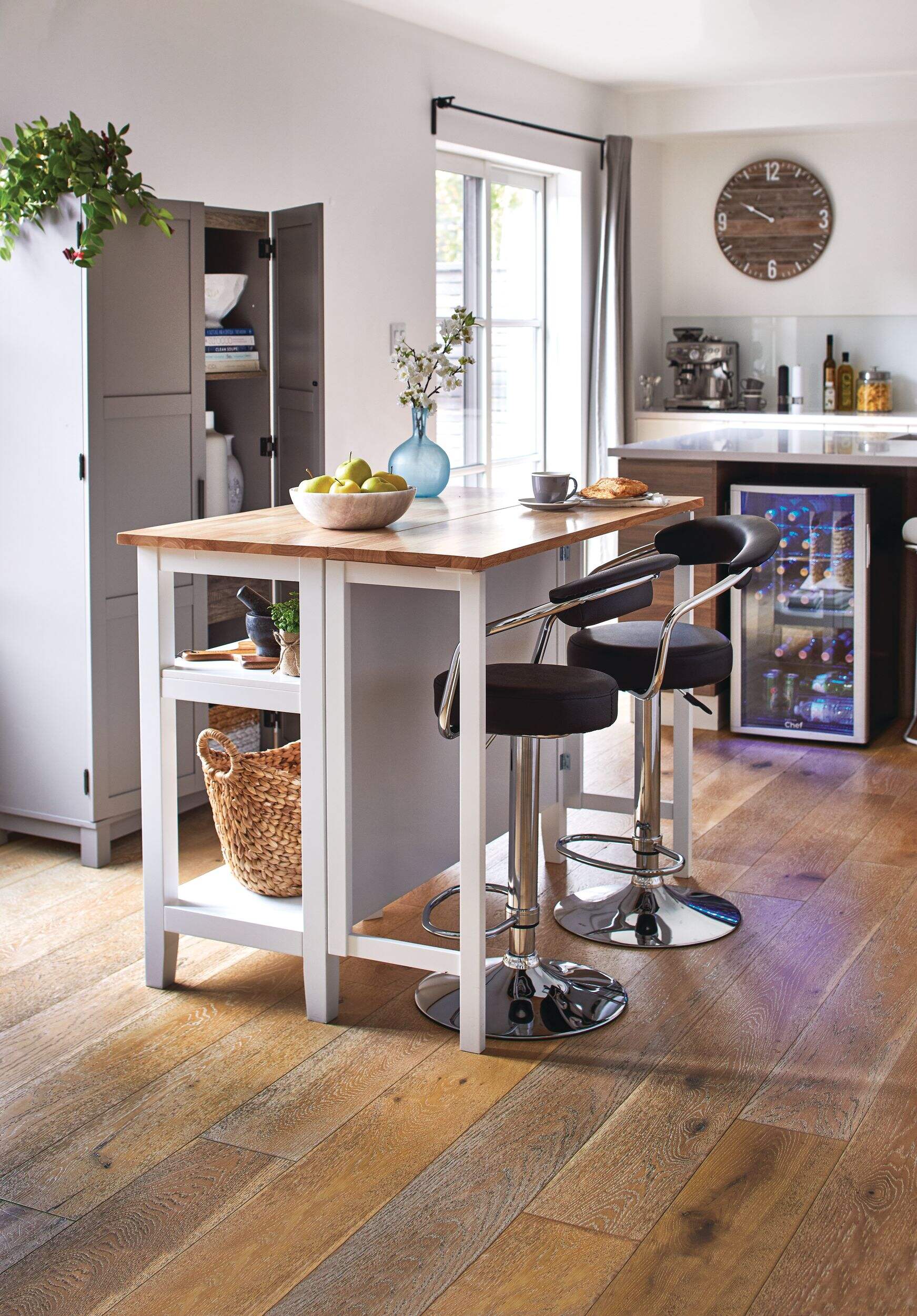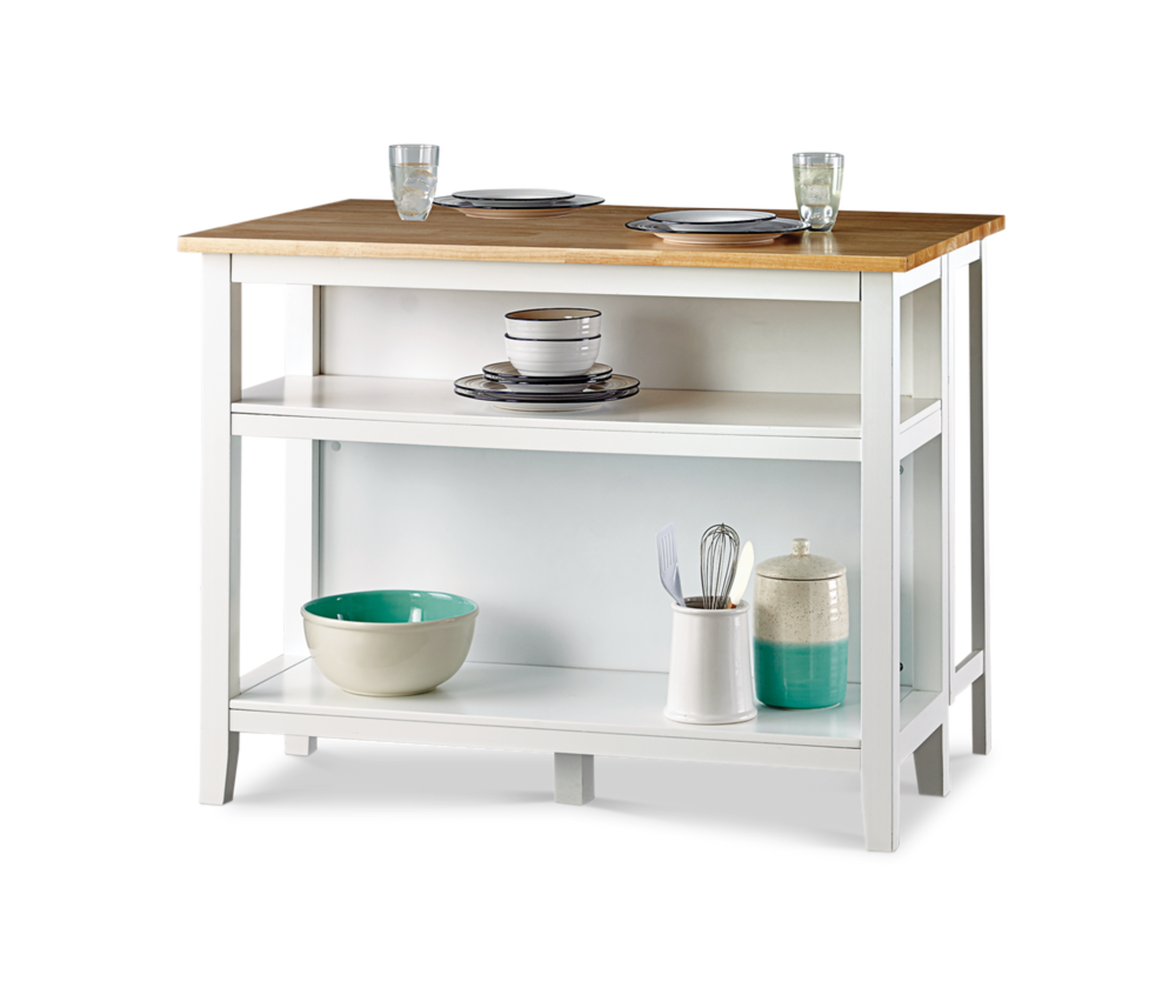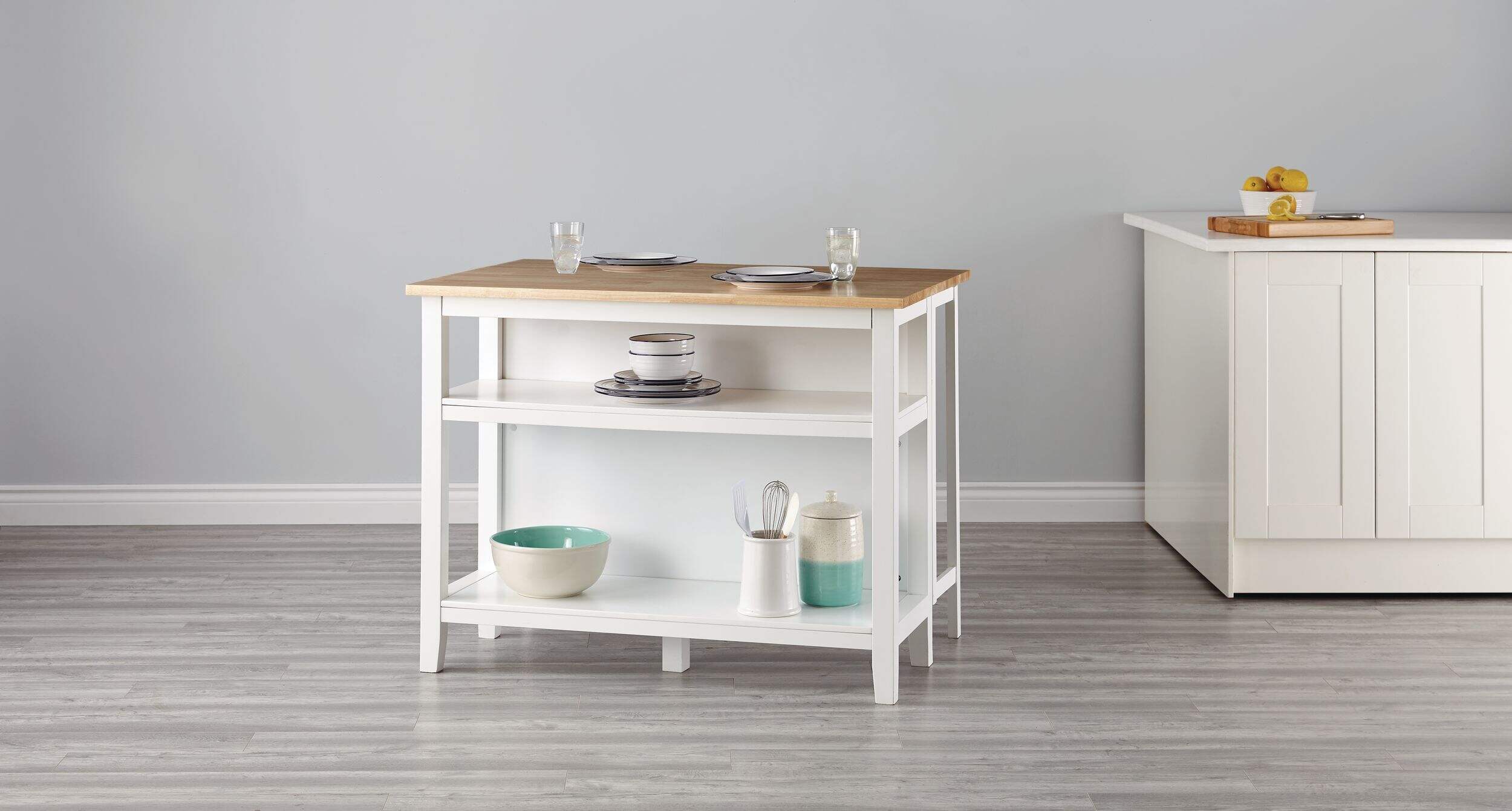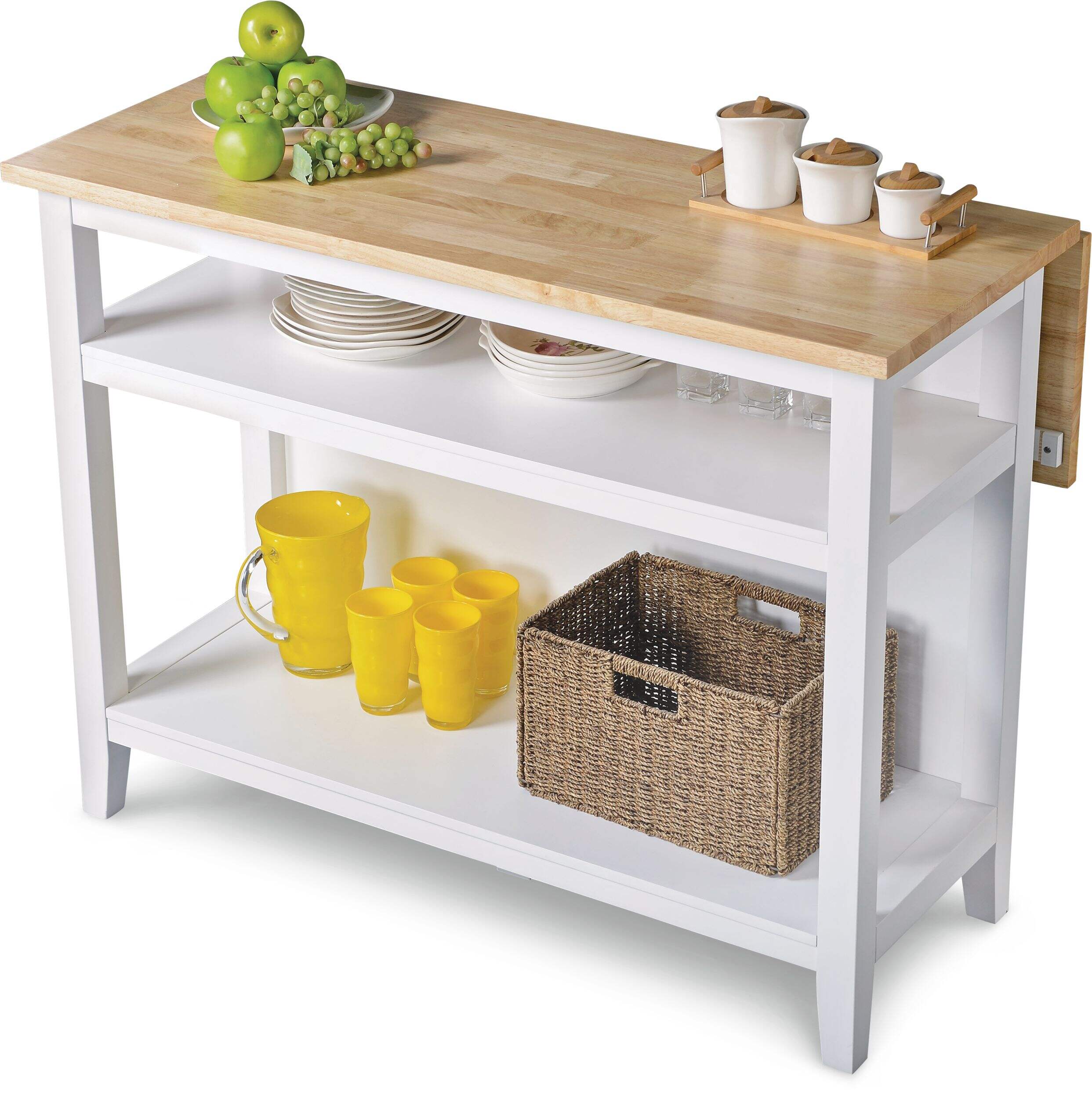 Ajoutez du style et de la flexibilité à votre cuisine avec l'îlot de cuisine dessus en bois avec abattant For Living. Son dessus élégant en bois d'hévéa agrémente tout décor, du plus moderne au plus rustique. L'abattant agrandit l'espace de travail, ce qui est idéal pour préparer les repas ou permet d'avoir une assise supplémentaire au besoin. Grâce à ses tablettes inférieures ouvertes, cet îlot offre un vaste espace de rangement pour les articles indispensables pour la cuisine, ce qui en fait une solution polyvalente pour l'organisation de votre espace de cuisson.