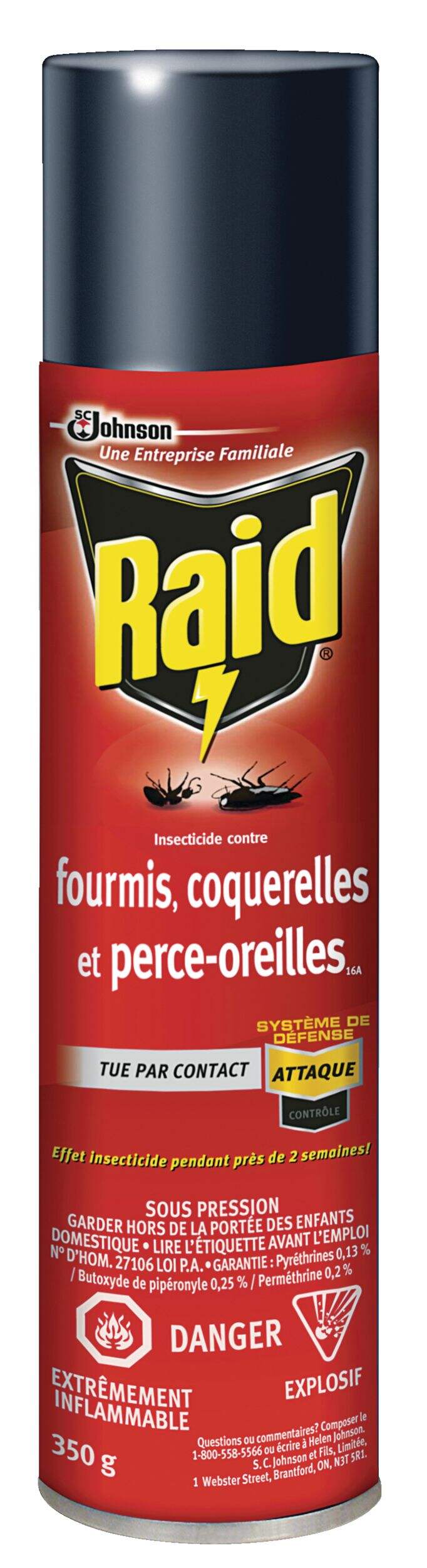Utilisez l'insecticide RaidMD MAX pour fourmis, coquerelles, perce-oreilles et insectes pour tuer les insectes domestiques les plus courants. Évitez de vaporiser le liquide près des appâts à fourmis pour permettre aux fourmis environnantes de répandre les produits chimiques nocifs. Il doit y avoir contact direct entre les insectes indésirables et le produit, il faut donc bien viser.