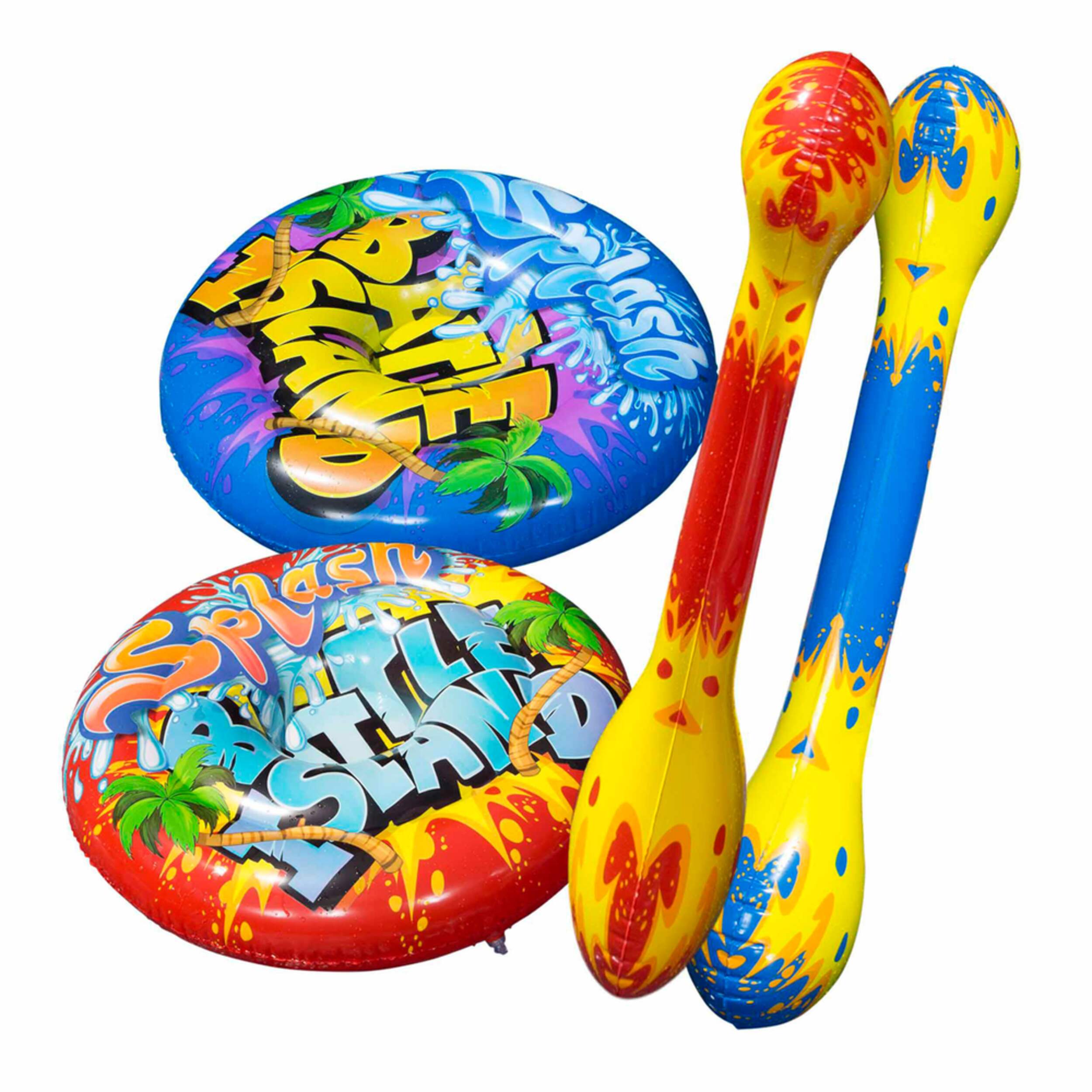 Jeu à îles Banzai Splash Battle vous permettant de vous asseoir pour vous battre à l'aide des bâtons de joute gonflables