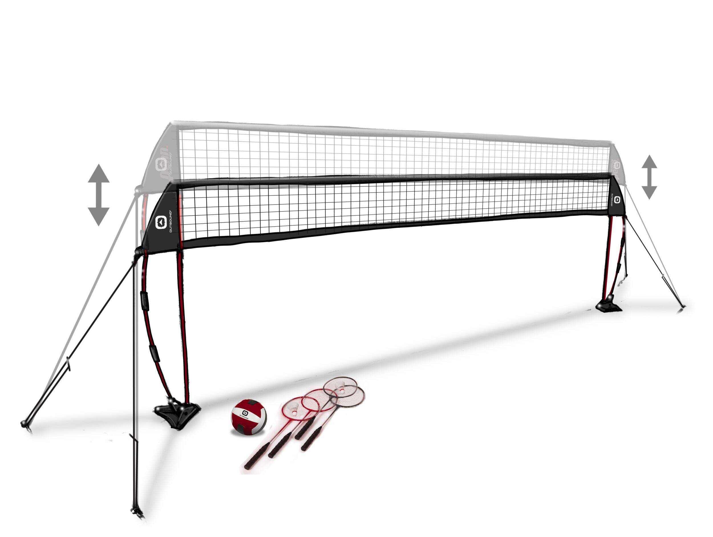 Jeu de badminton et de volley-ball 2-en-1 Outbound qui combine 2 sports d'extérieur classiques pour s'amuser en famille et entre amis. Installez-le au parc, au camping ou directement à la maison : le système de filet se transforme en quelques minutes en un ensemble complet de badminton ou de volleyball. Ajustez la hauteur du filet pour convenir à l'un ou l'autre des jeux.