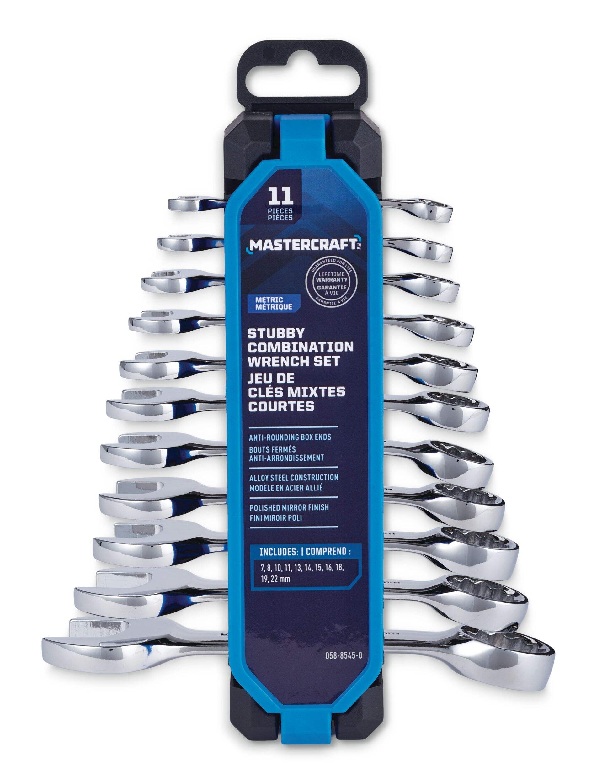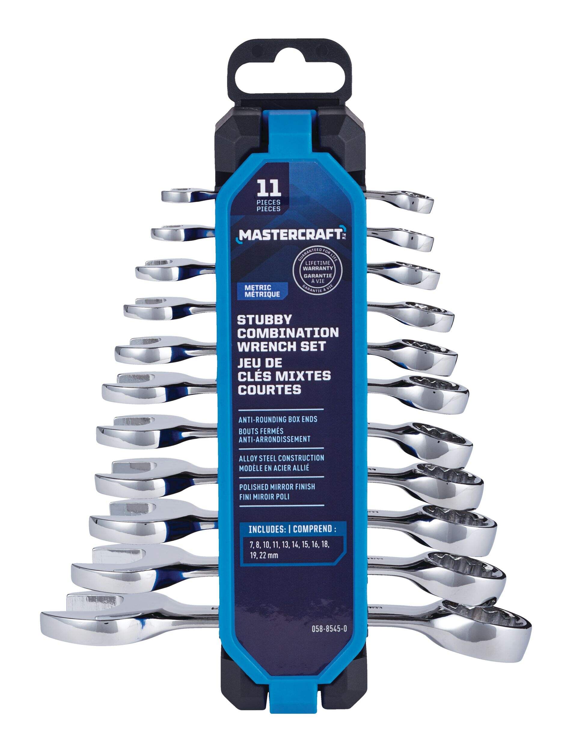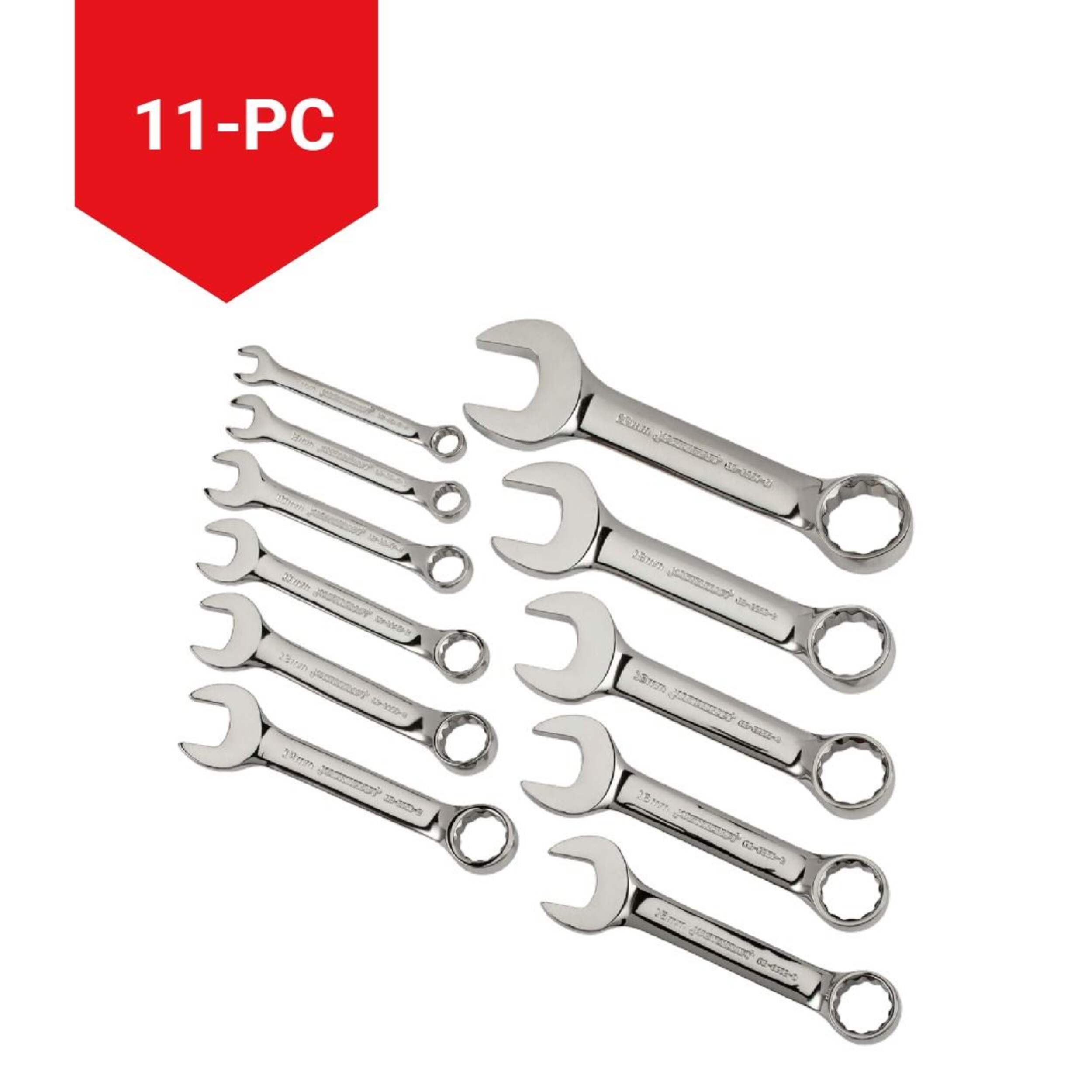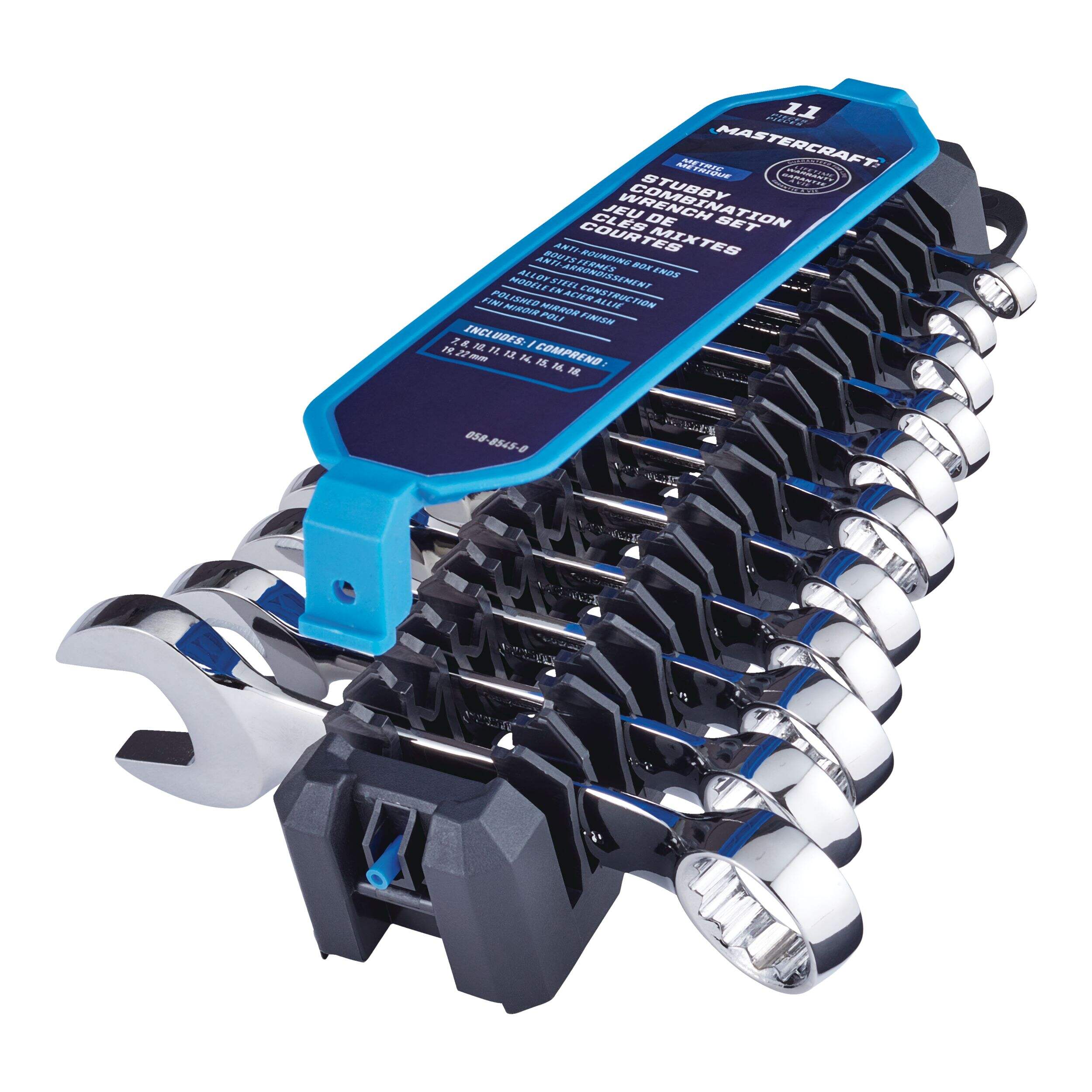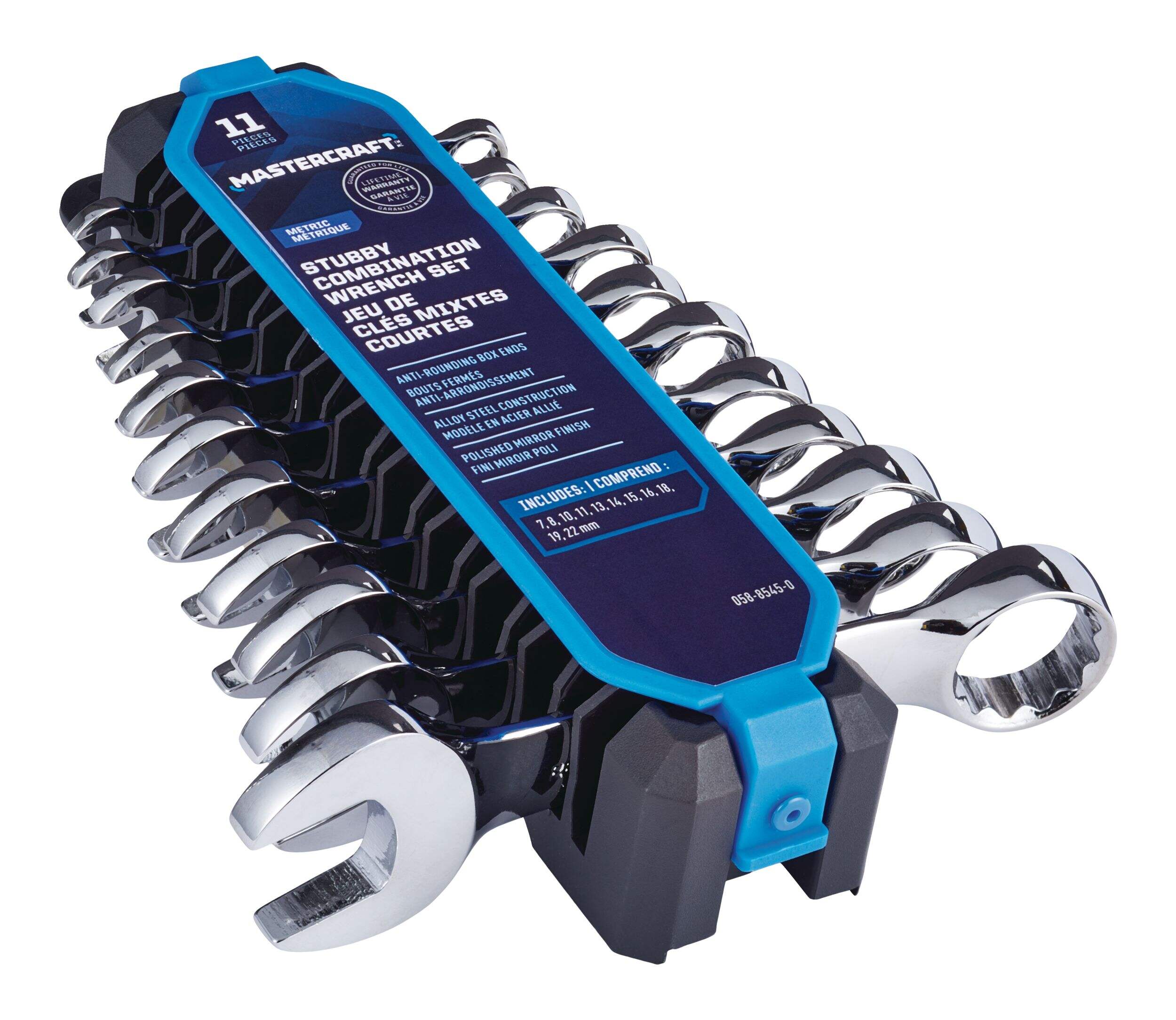 Les clés mixtes courtes métriques Mastercraft de 11 pièces sont dotées de clés à manche court en alliage d'acier au fini miroir poli