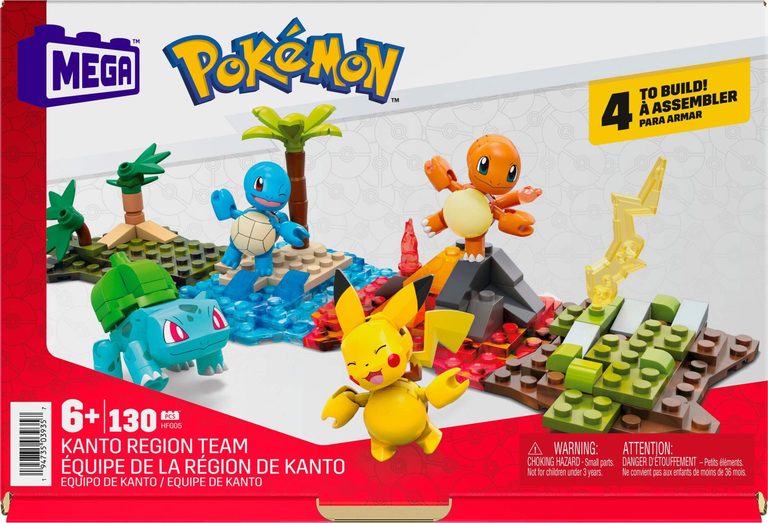 Accumulez la puissance qui se trouve à l'intérieur avec 4 Pokémon à construire, dont Pikachu, Carapuce, Salamèche et Bulbizarre, plus des kiosques d'environnement à construire représentant le type et le pouvoir spécial de chaque figurine.