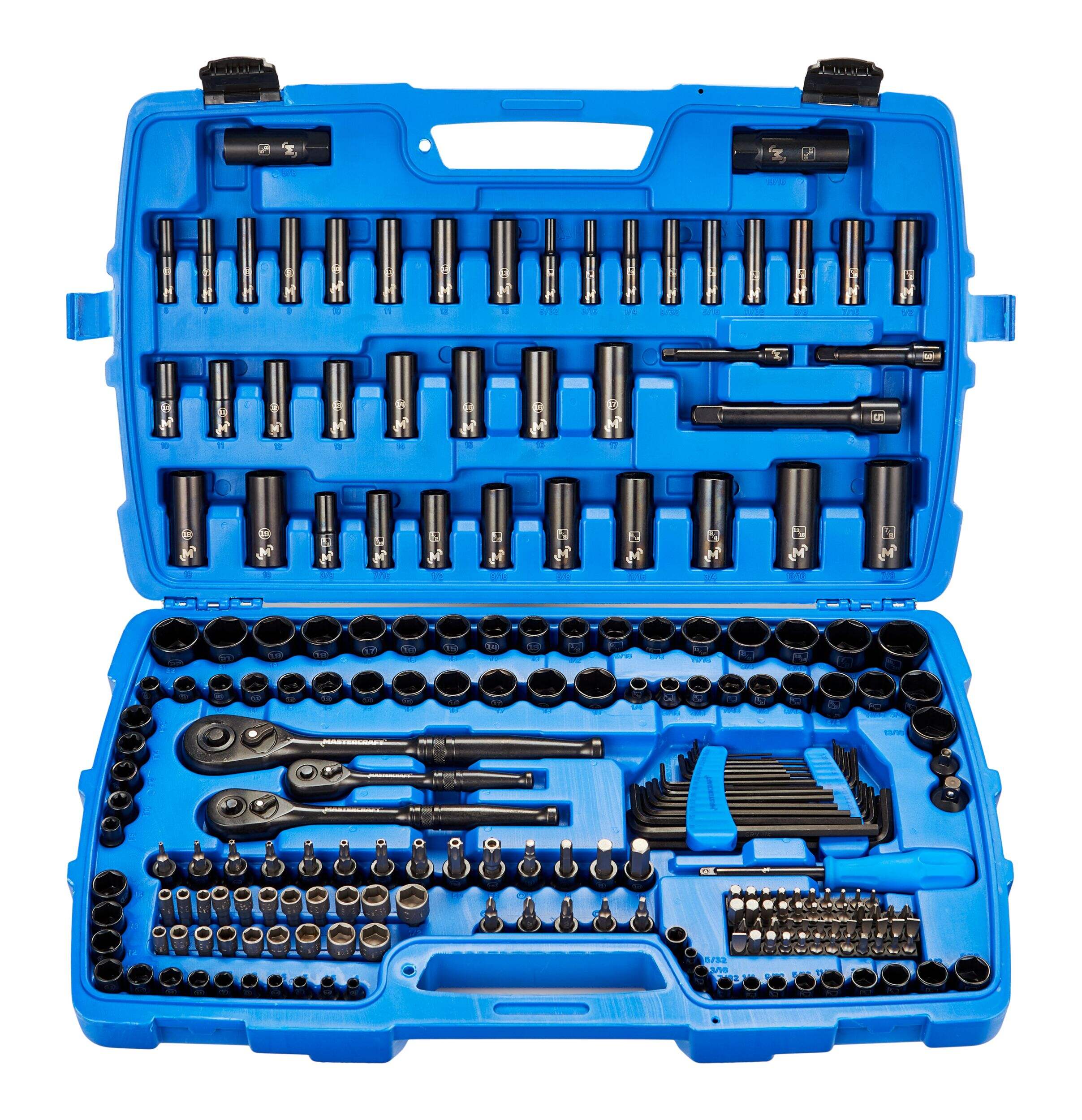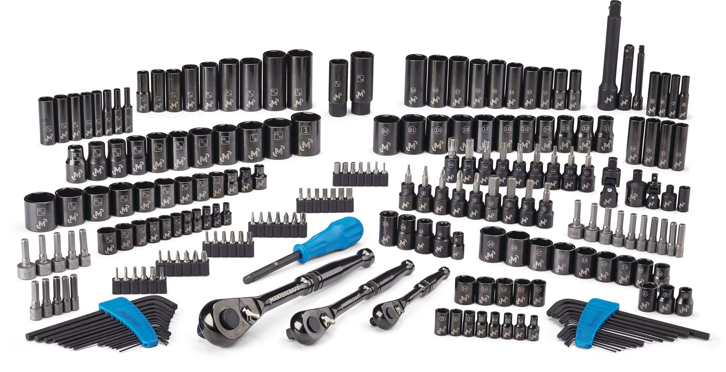 | Taille de la douille | 3/16 po, 7/32 po, 1/4 po, 9/32 po, 5/16 po, 11/32 po, 3/8 po, 7/16 po, 1/2 po, 4 mm, 5 mm, 6 mm, 7 mm, 8 mm, 9 mm, 10 mm, 11 mm, 12 pi, 13 mm, T8, T10, T15, T20, T25, T27, 9/16 po, 5/8 po, 11/16 po, 3/4 po, 13/16 po, 7/8 po, 14 mm, 15 mm, 16 pi, 17 mm, 18 pi, 19 mm, T30, T40, T45, T50, T55 | 1/4 po, 3/8 po, 10 mm, 11 mm, 12 pi, 13 mm, 14 mm, 15 mm, 17 mm, 18 pi, 19 mm, 1/2 po, 11/16 po, 11/32 po, 13/16 po, 15/16 po, 3/16 po, 3/4 po, 5/16 po, 5/32 po, 5/8 po, 7/16 po, 7/32 po, 7/8 po, 9/16 po, 9/32 po | 5/32 po, 3/16 po, 7/32 po, 1/4 po, 9/32 po, 5/16 po, 11/32 po, 3/8 po, 7/16 po, 1/2 po, 9/16 po, 4 mm, 5 mm, 6 mm, 7 mm, 8 mm, 9 mm, 10 mm, 11 mm, 12 pi, 13 mm, 14 mm, 5/8 po, 11/16 po, 3/4 po, 13/16 po, 7/8 po, 15 mm, 16 pi, 17 mm, 18 pi, 19 mm, 21 pi | 5/32 po, 3/16 po, 7/32 po, 1/4 po, 9/32 po, 5/16 po, 11/32 po, 3/8 po, 7/16 po, 1/2 po, 9/16 po, 4 mm, 4,5 mm, 5 mm, 5,5 mm, 6 mm, 7 mm, 8 mm, 9 mm, 10 mm, 11 mm, 12 pi, 13 mm, 14 mm, 5/8 po, 11/16 po, 3/4 po, 13/16 po, 7/8 po, 15 mm, 16 pi, 17 mm, 18 pi, 19 mm, 15/16 po, 1 po, T10, T15, T20, T25, T27, T30, T40, T45, T50, T55 | |