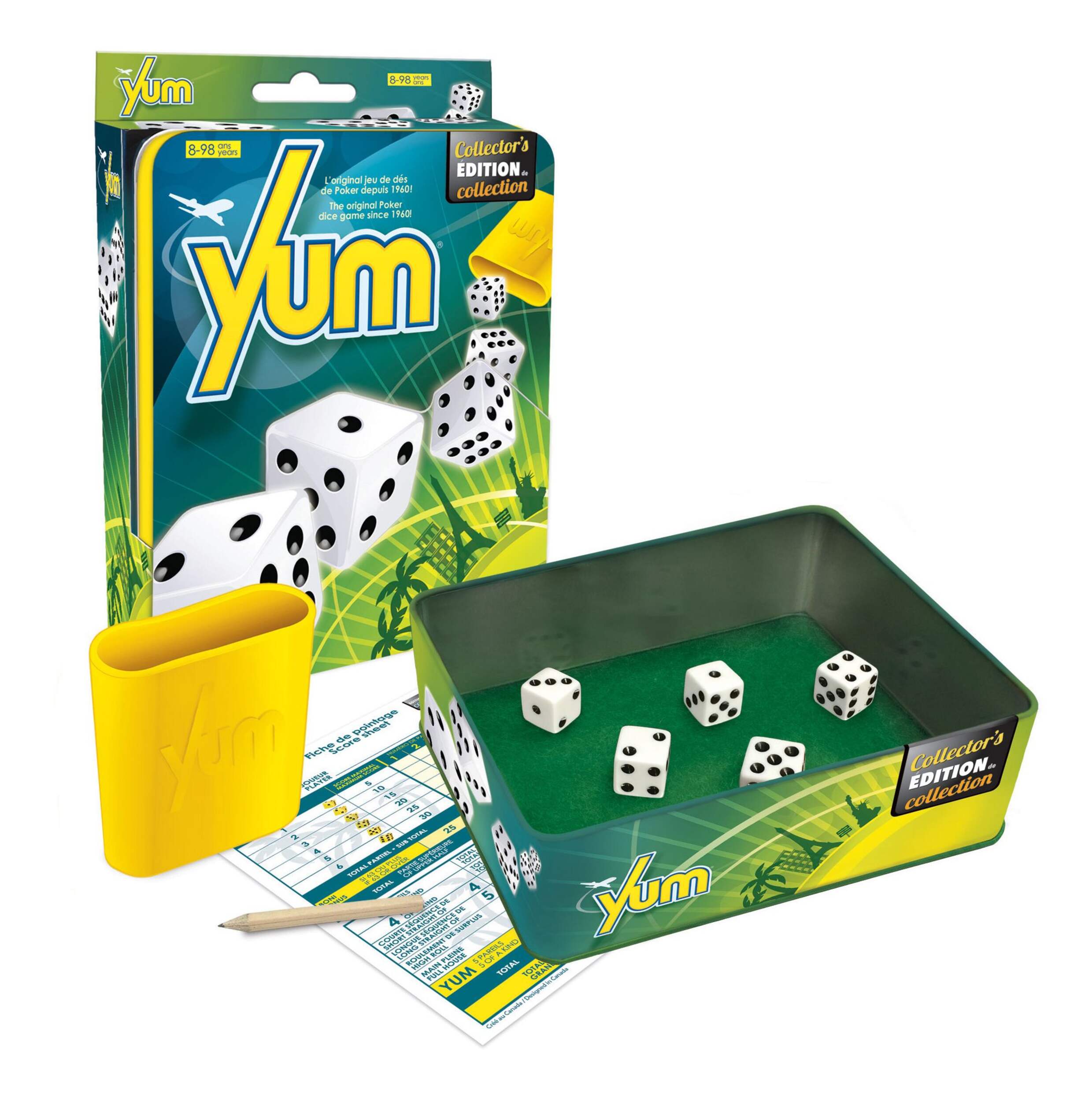 Lancez les dés et gagnez gros avec cette édition de collection classique de Yum, le jeu de dés de poker original de 1960. Cette version comprend le même plaisir classique que l'original, avec cinq dés, un carnet de pointage, un crayon et un gobelet pour que vous puissiez rouler jusqu'à la victoire. Lancez le dé une, deux ou trois fois pour créer les meilleures combinaisons possibles de poker, de la main pleine à la quinte couleur. Faites tous les bons coups et accumulez le plus de points pour gagner la partie. Simple à apprendre, mais plein de stratégie, Yum est un jeu amusant pour toute la famille et un incontournable pour les collectionneurs de jeux de dés de poker.