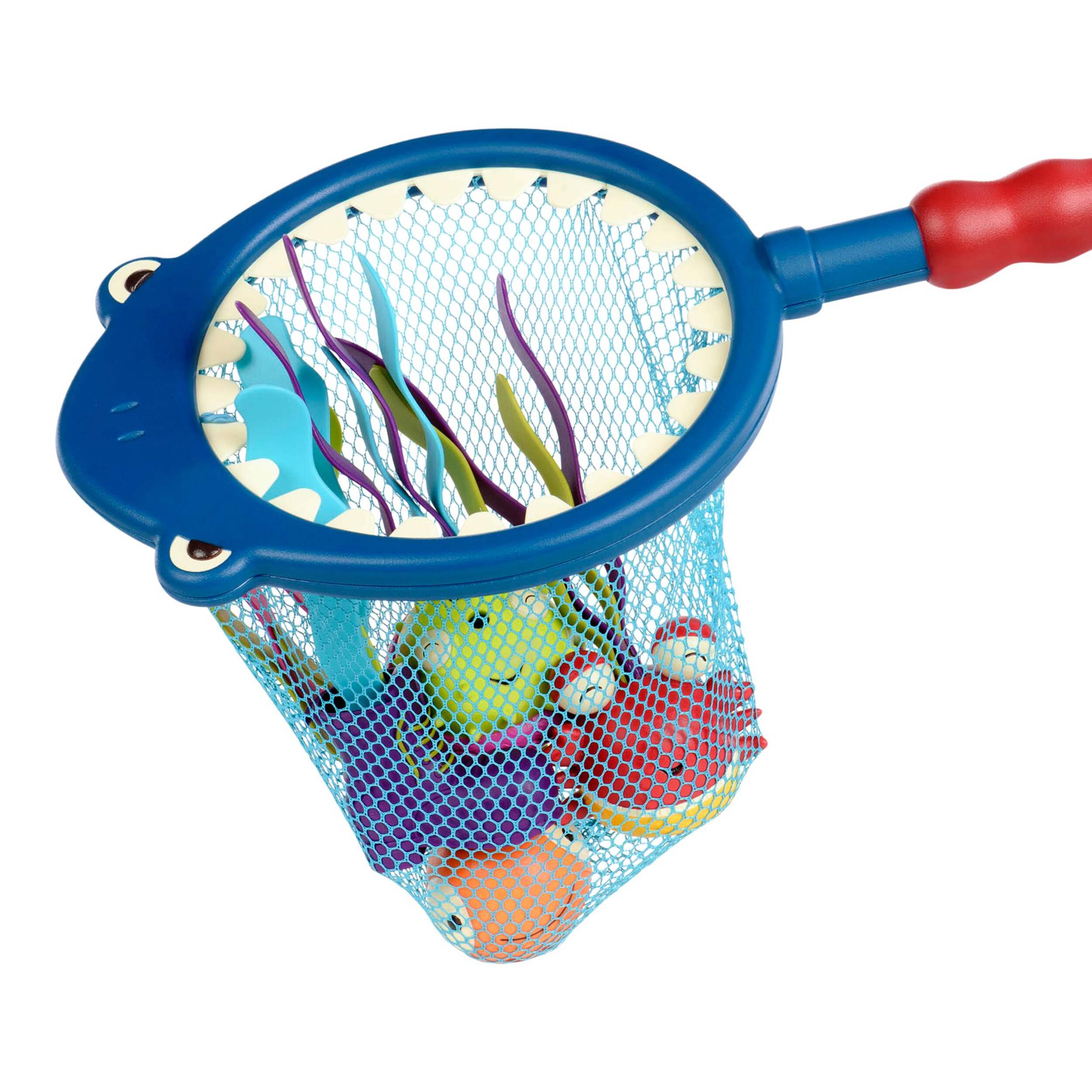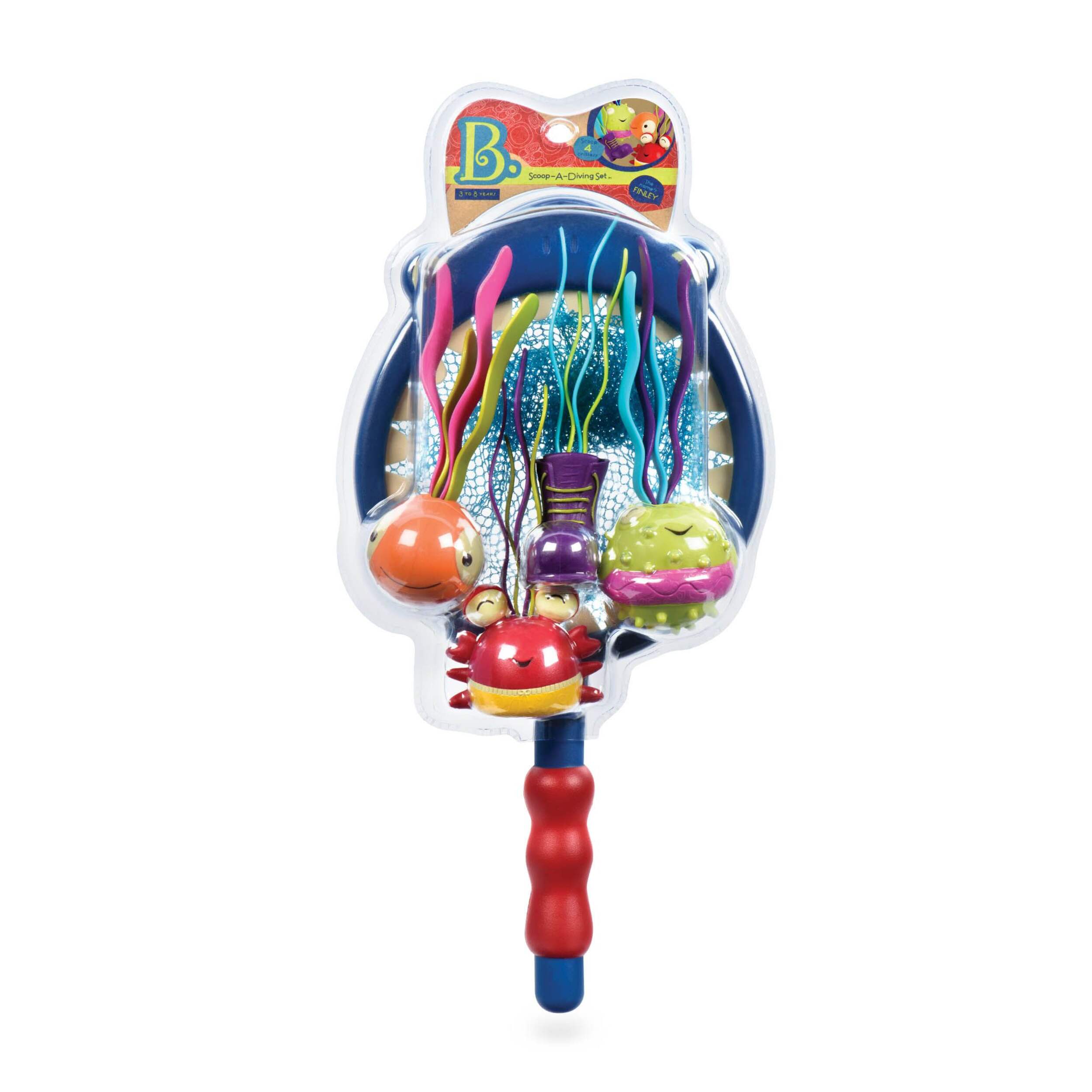 Cet été, faites sensation avec le jeu Scoop-A-Diving à requin Battat. Cette aventure aquatique sur le thème des requins encourage le jeu actif et améliore la coordination. Le filet à prise facile inclus présente un requin sympathique qui vous permet de ramasser la botte lestée, le crabe, le poisson rouge et le poisson globe. Regardez les pièces couler, puis plongez pour récupérer les trésors engloutis. Les enfants peuvent apprendre la biologie marine tout en s'amusant au soleil grâce à ce jeu de plongée. Recommandé pour les enfants de 3 ans et plus afin d'améliorer la motricité dans la piscine.