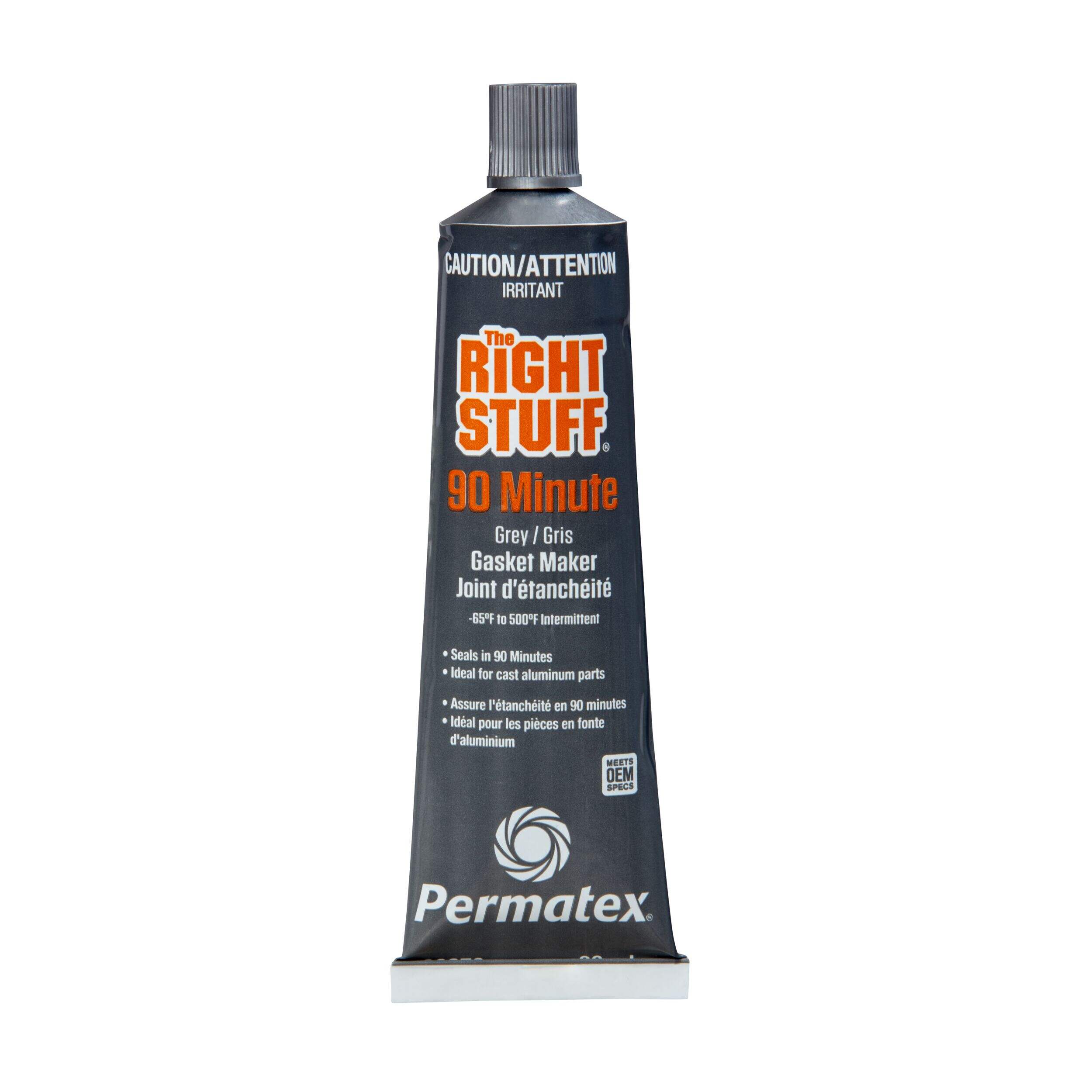 Série PermatexMD's The Right Stuff 90 offrant le retour au service le plus rapide en seulement 90 minutes! Ce matériau antifuite en élastomère formé en place est plus fiable et plus durable que les joints précoupés. Résiste à l'éclatement et protège contre les fuites et les écoulements causés par les vibrations et l'expansion thermique. Le matériau Right Stuff gris de 90 minutes est conçu pour les applications à couple élevé et à vibrations élevées et est formulé pour répondre ou surpasser les normes de performance en matière de scellement à long terme, de durabilité et de tenue de route.