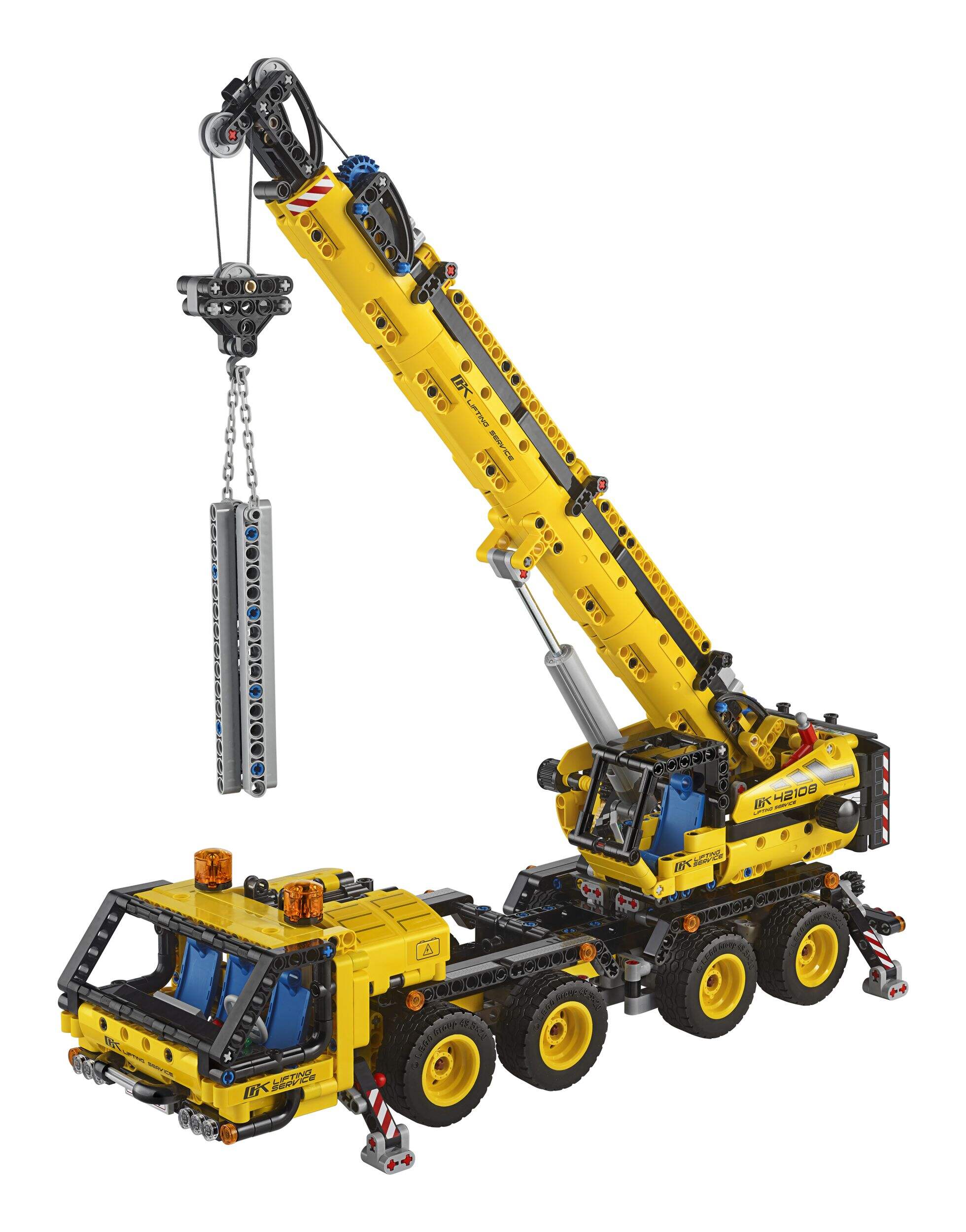 Il y a beaucoup à apprendre sur l'ingénierie et le mouvement avec ce super jouet de construction. Direction à 8 roues, 4 stabilisateurs contrôlés individuellement, 2 cabines et bras télescopique très haut s'additionnent pour créer une grue géniale!