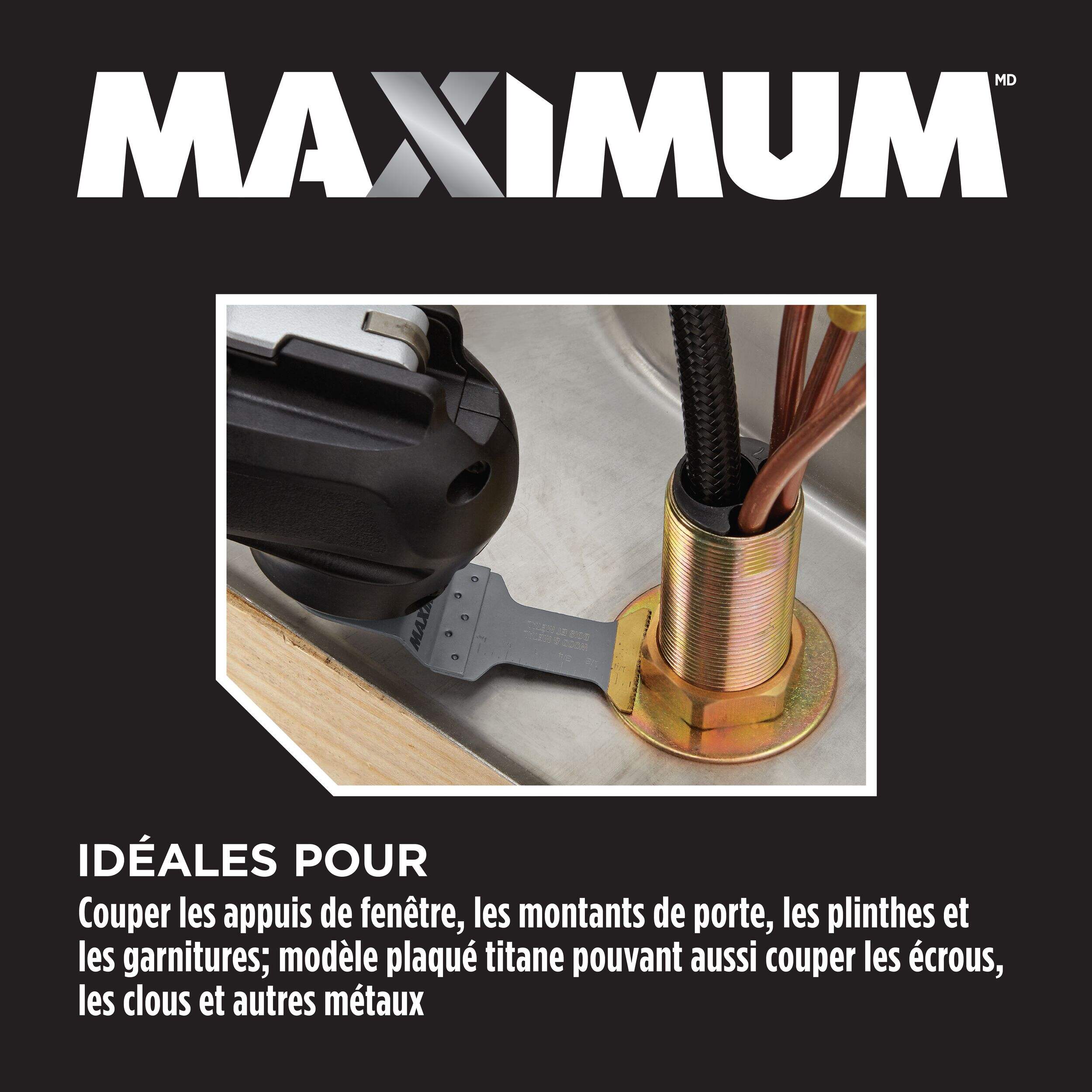 Dotée d'un système d'ajustement universel pratique, la lame bimétallique en titane pour bois et métal MAXIMUM convient à toutes les coupes affleurantes de bois et de métal