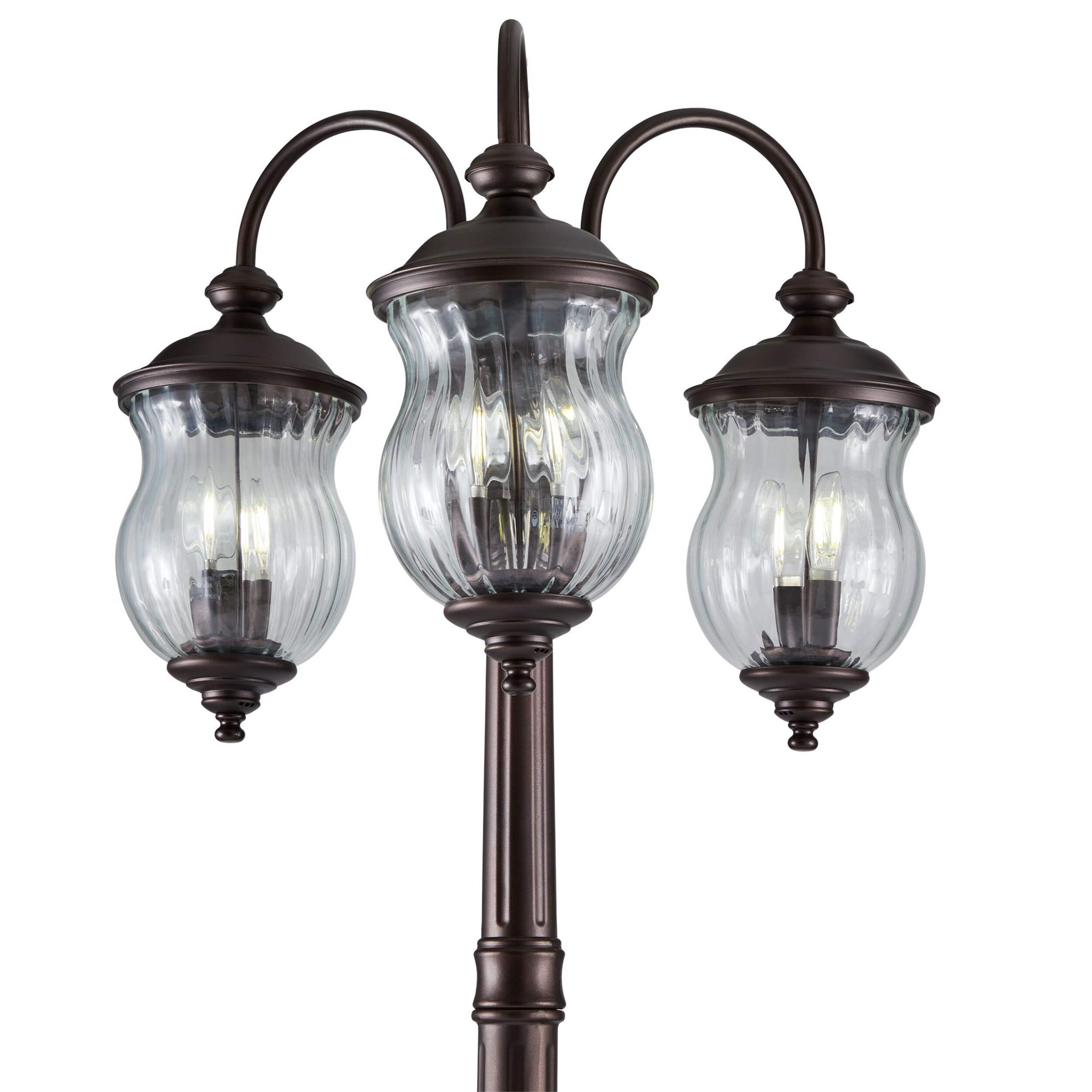 Lampadaire NOMA Astoria à 3 têtes, avec abat-jour en verre strié transparent