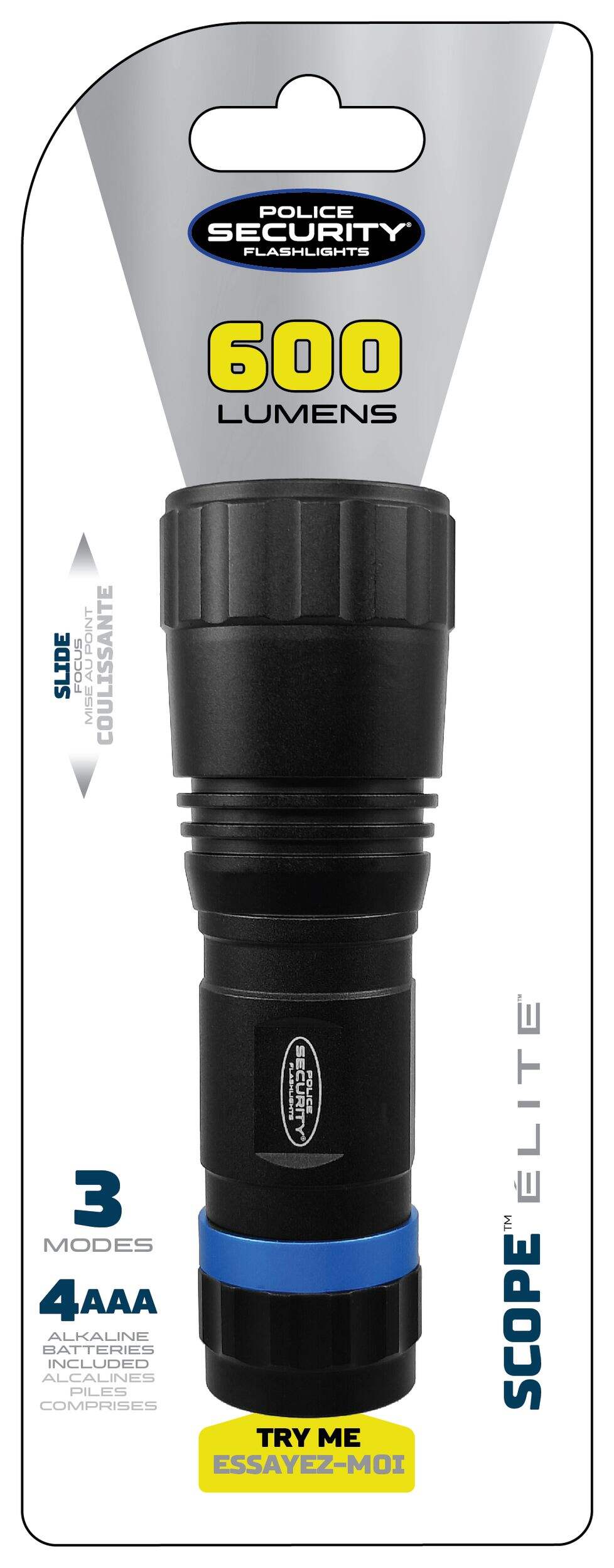 Lampe de poche Police Security Scope Elite, 600 lumens, qui comprend 3 réglages de luminosité pour entreprendre une variété de tâches à la maison ou au travail