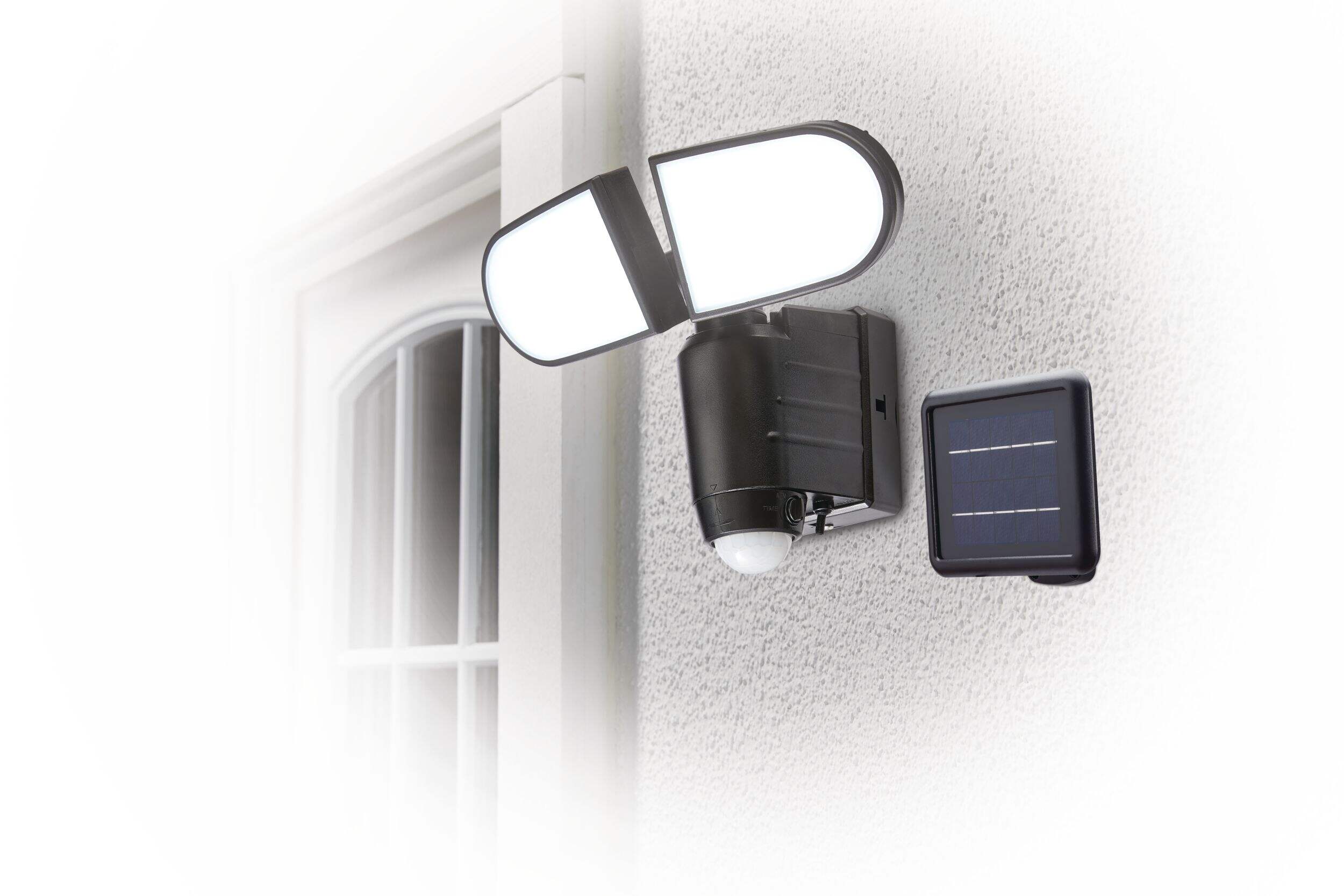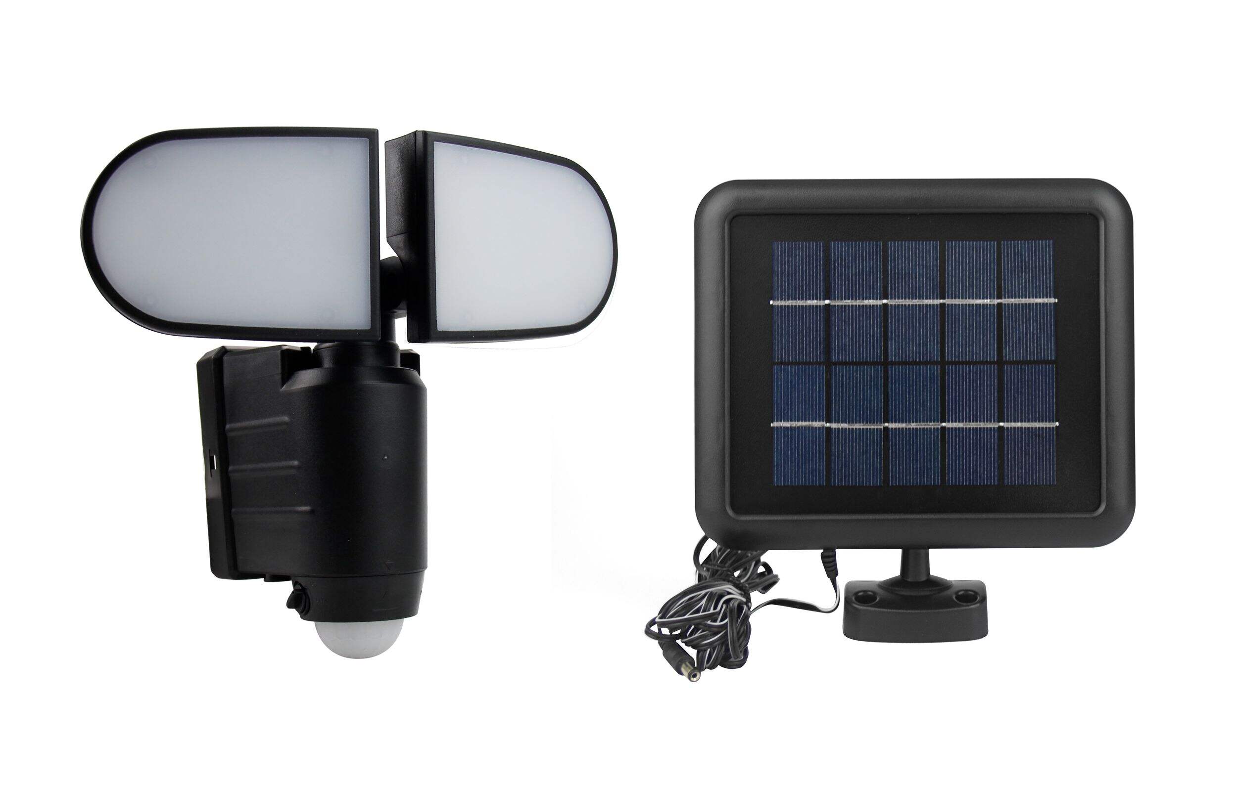 Lampe solaire à détection de mouvement et deux têtes avec fini noir