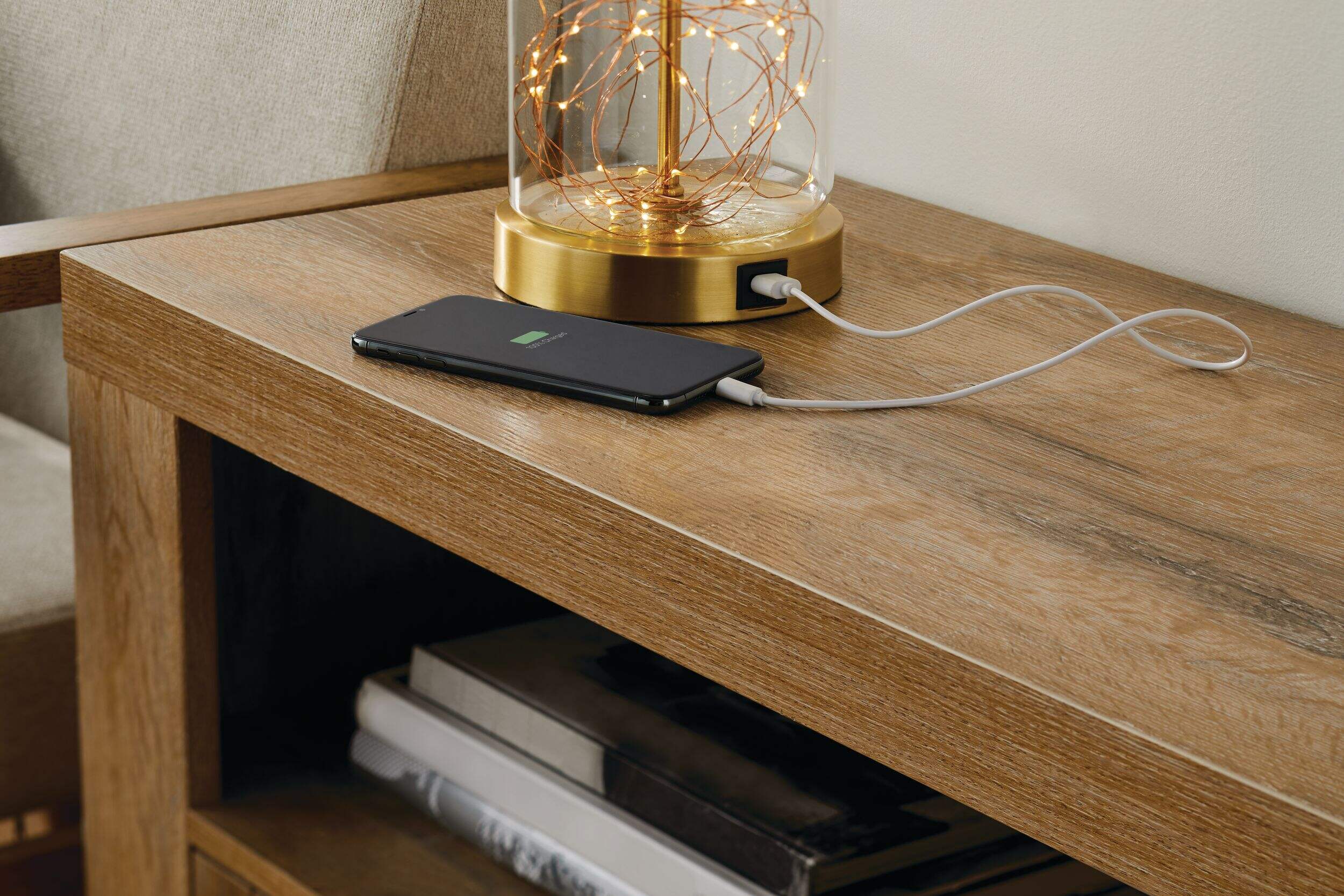 Dotée d'un style rétro attrayant, la lampe de table remplissable CANVAS Burrard avec port de recharge USB ajoutera une touche décorative au décor de votre salon ou de votre chambre à coucher. Cette lampe de table est dotée d'une base en verre remplissable et d'une texture lisse pour une apparence et une sensation uniques. Il suffit de remplir la base de décorations pour créer votre propre présentoir d'éclairage unique. La lampe est large à la base et est dotée d'un fond en laiton pour plus de stabilité. Dotée d'un fini laiton mat traditionnel et d'un abat-jour en lin blanc, cette lampe de table remplissable offre une lueur vive et éclatante sans être trop forte ou trop écrasante, ce qui en fait une lampe de table idéale pour la lecture. Elle est aussi facile à assembler en quelques minutes. Le port de recharge USB 2.1 A vous permet de recharger votre téléphone ou d'autres appareils directement à partir de la lampe elle-même, ce qui est idéal à côté de votre lit. Cette lampe de table utilise une ampoule à culot moyen E26 (non comprise) et mesure 14 po de diamètre par 26 po de hauteur. Songez à acheter une paire de ces lampes de table en laiton assorties pour vos tables de bout, votre salon, votre coin détente, votre coin lecture ou presque n'importe où ailleurs. Vous pourriez utiliser un peu plus de lumière et une touche de raffinement.