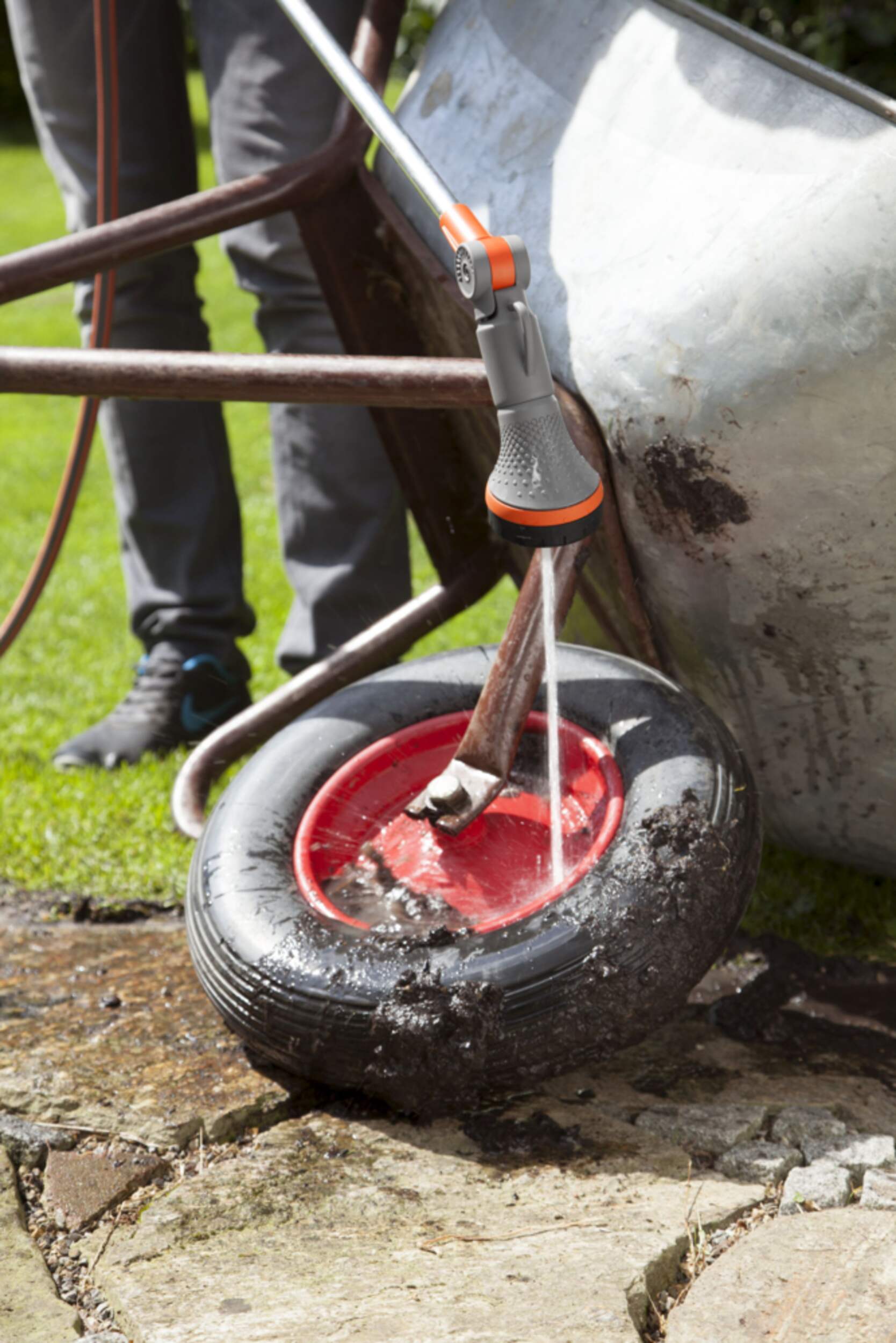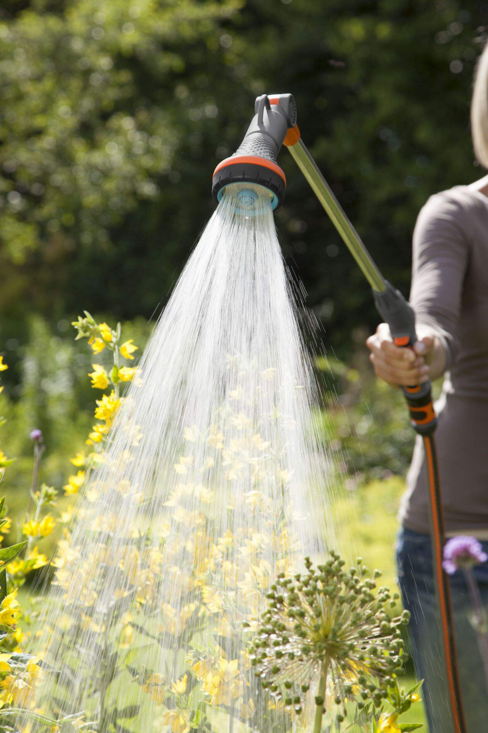 La lance d'arrosage souple réglable Gardena résistant au gel à 2 réglages facilite l'arrosage et le nettoyage de la maison et du jardin. Avec deux réglages de pulvérisation, il est polyvalent pour les plantes et les endroits difficiles à atteindre. La gâchette à impulsion peut être verrouillée pour un débit continu, réduisant ainsi la fatigue des mains. Après utilisation, la lance se suspend facilement pour un rangement rapide. La fonction d'arrêt d'eau garantit l'absence de gouttes d'eau, pour que tout reste propre et net. Idéal pour une utilisation toute l'année, même dans des conditions hivernales.