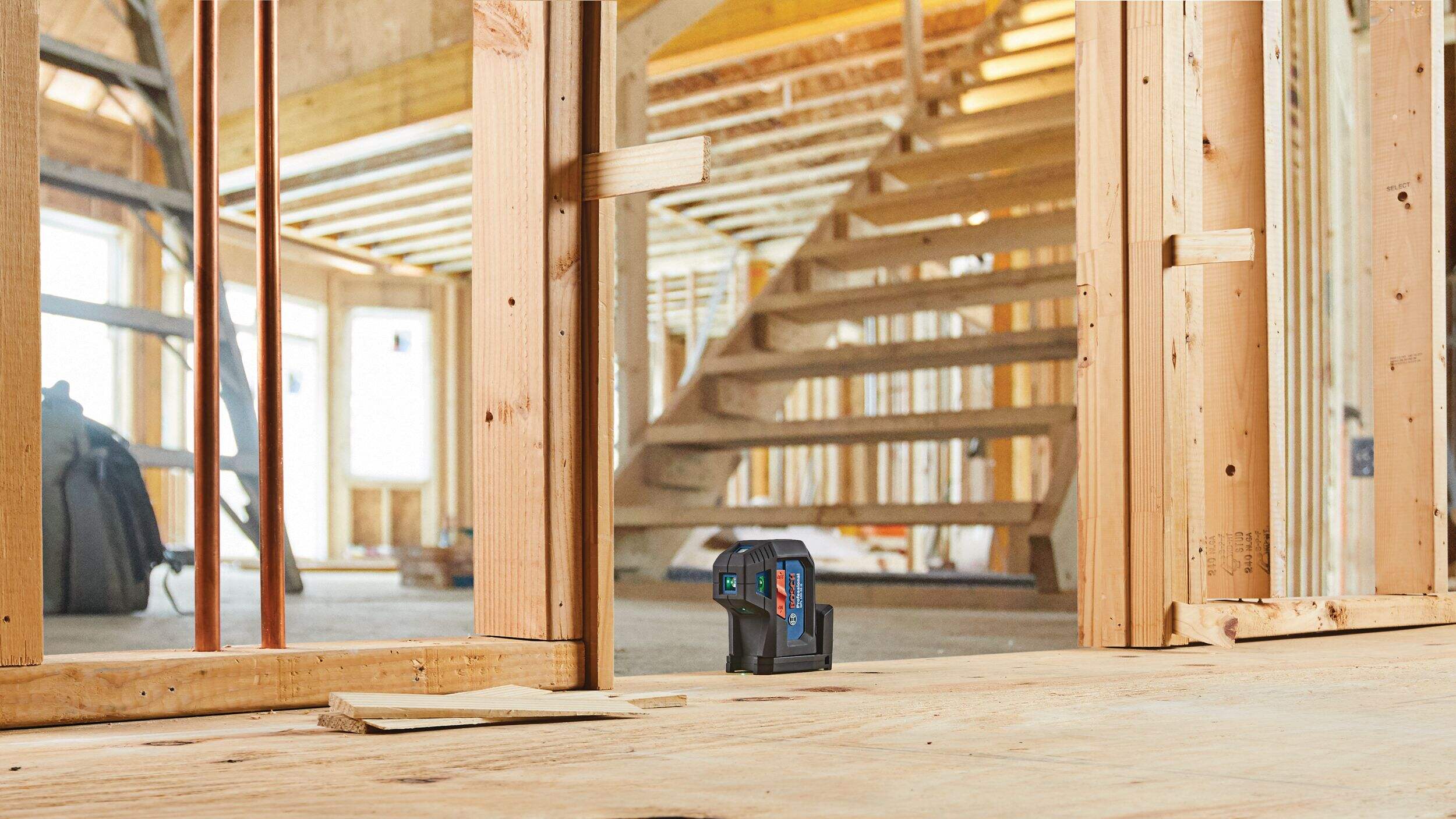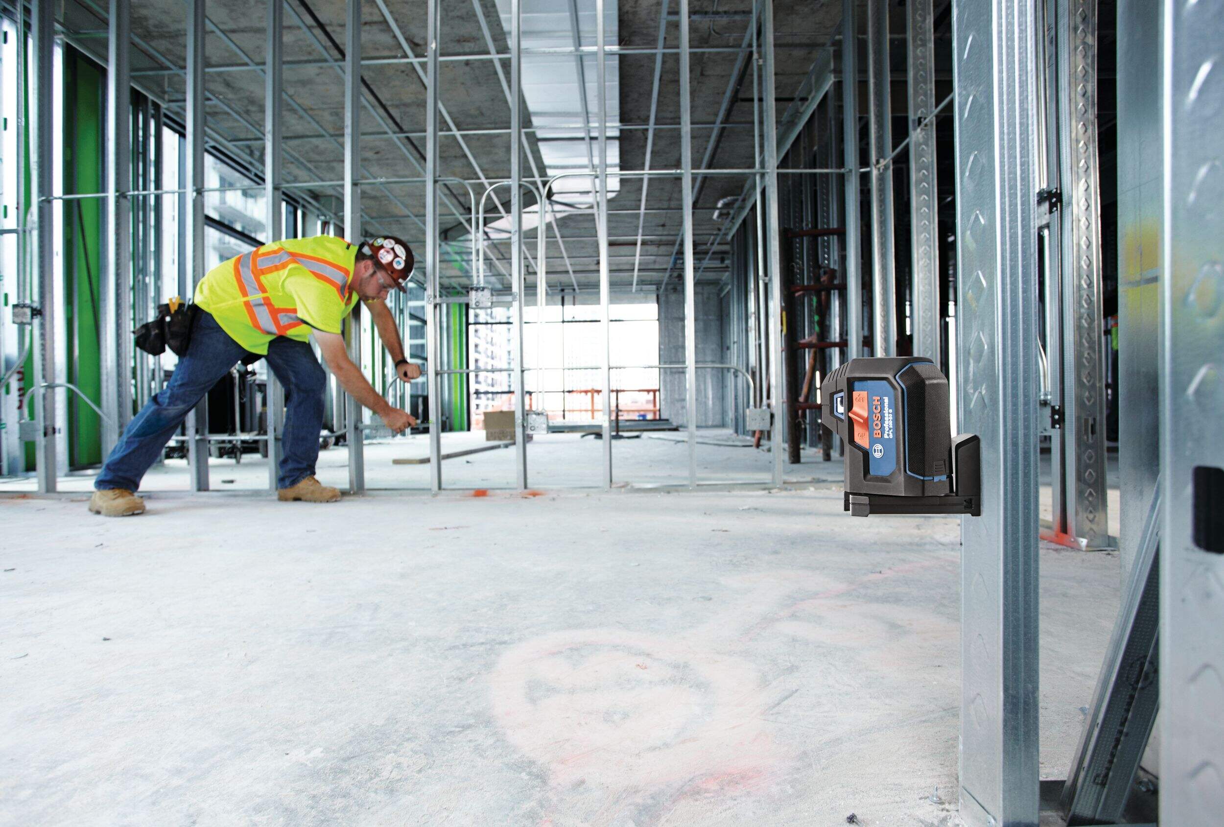Projection à cinq points d'aplomb et de niveau qui transfère et aligne avec précision le niveau, l'aplomb, l'angle de 90° et les points