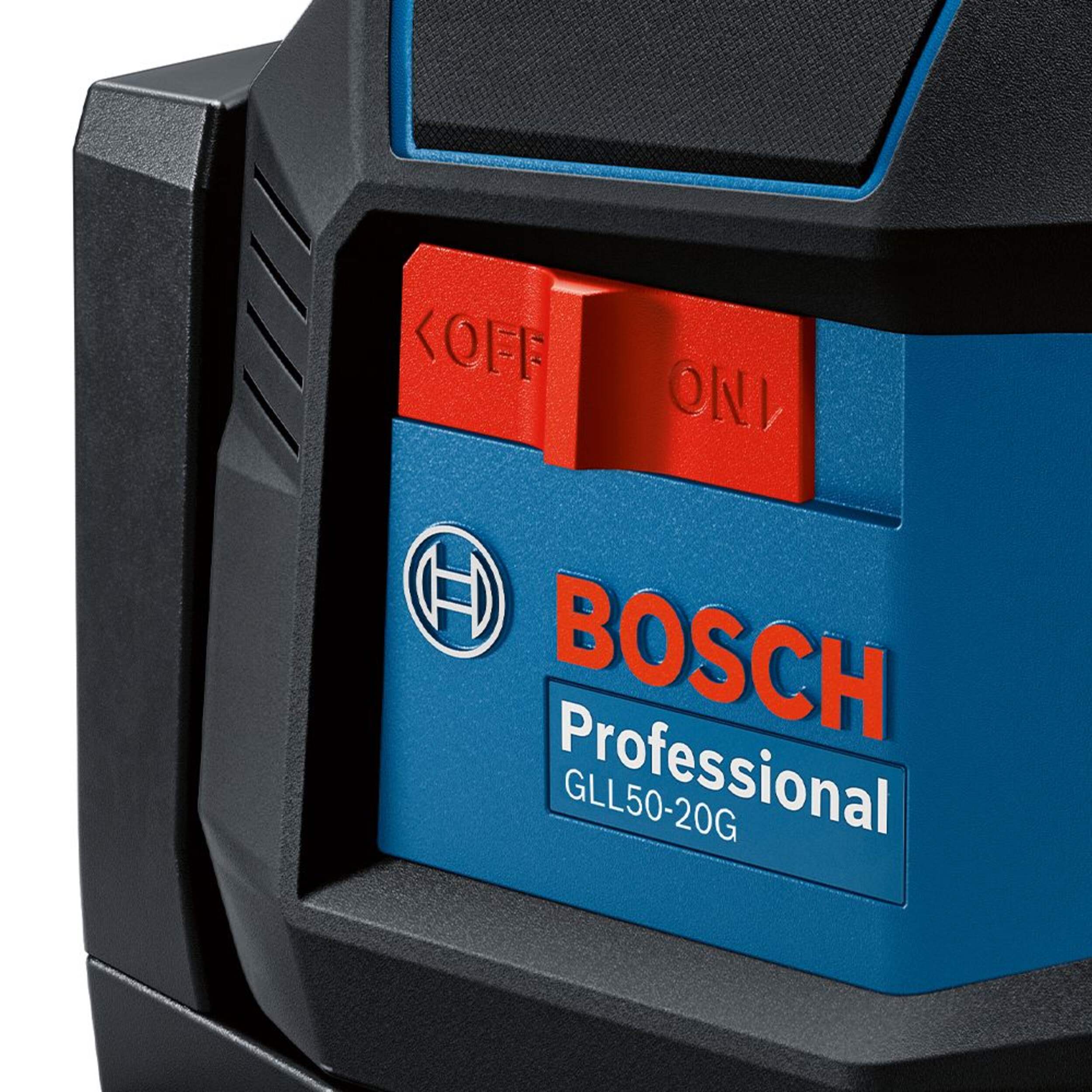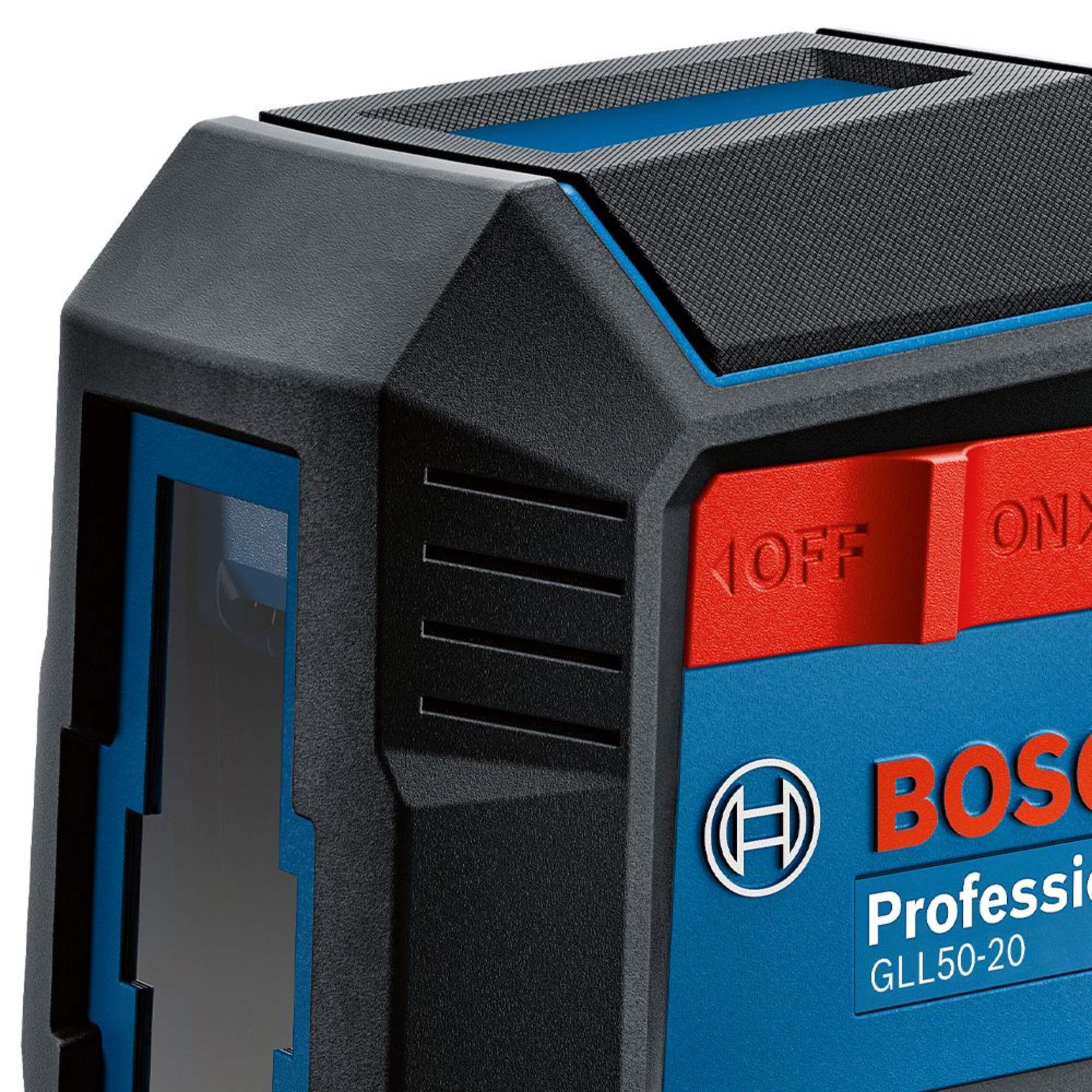Laser qui fonctionne avec deux piles AA (incluses) ou avec la batterie Bosch lithium-ion 3,7 V de 1,0 Ah (vendue séparément) pour une utilisation en continu sur le chantier