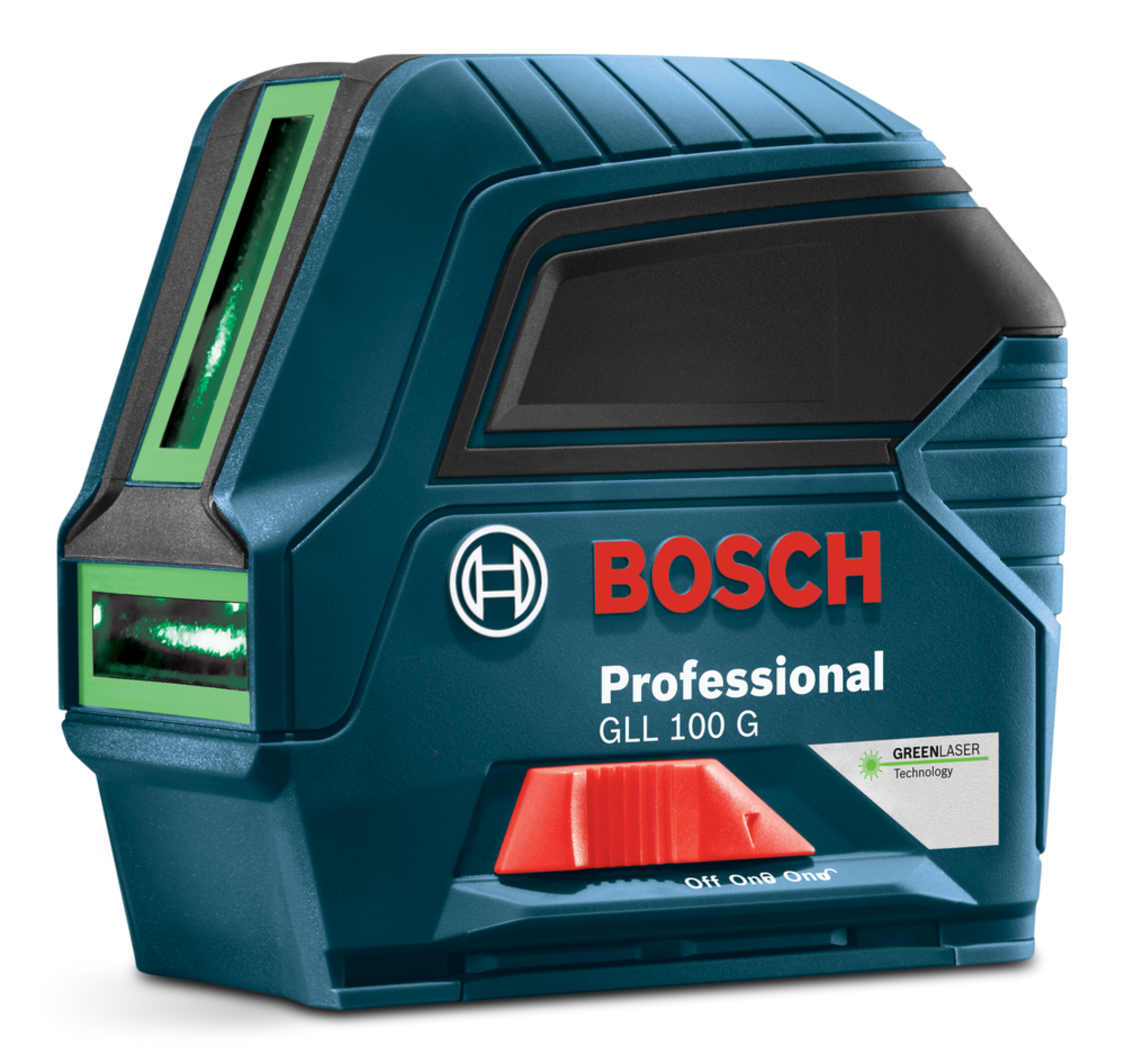 Le laser à ligne croisée et à correction d'assiette Green-Beam GLL 100 G de Bosch utilise la technologie Green-Beam, qui produit des lignes jusqu'à 4 fois plus brillantes que les faisceaux rouge standard. Cela donne au laser une portée de fonctionnement jusqu'à 100 pi. Le GLL 100 G produit des modes vertical, horizontal et interligne, et l'outil peut projeter deux lignes indépendamment ou ensemble, pour une vaste gamme d'applications d'alignement et de mise à niveau. Il dispose de la technologie exclusive à Bosch VisiMaxMC, qui permet une visibilité de ligne exceptionnelle dans des conditions de travail normales. Il surveille constamment la température du laser, de sorte que les diodes soient toujours alimentées pour une visibilité maximale de la ligne, tout en protégeant les diodes laser contre la surchauffe. L'outil a une portée de fonctionnement allant jusqu'à 100 pi et offre une précision de ±1/8 po à 33 pi et ±3/8 po à 100 pi. Le système de pendule intelligent de Bosch se met à niveau automatiquement et indique l'état hors niveau pour assurer une disposition précise. Il verrouille le pendule une fois le laser éteint pour un transport sécuritaire. Le laser est conçu avec une construction surmoulée robuste avec une cote IP54 garantissant une protection contre la poussière et l'eau. L'appareil de positionnement BM3 inclus offre une configuration rapide dans les applications de grille de plafond et le mode autonome avec ses pieds rétractables et son réglage microfin de hauteur.