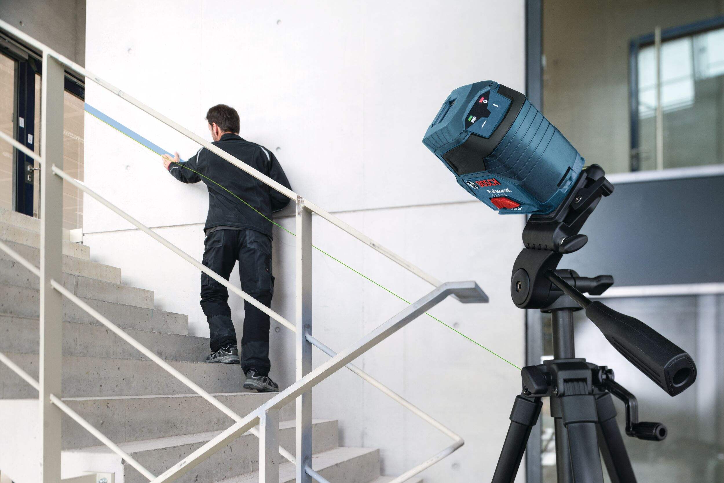 Laser en croix Bosch GLL 100G, vert, doté de la technologie VisiMax, une exclusivité Bosch, qui offre une luminosité maximale du faisceau dans la plupart des conditions de travail