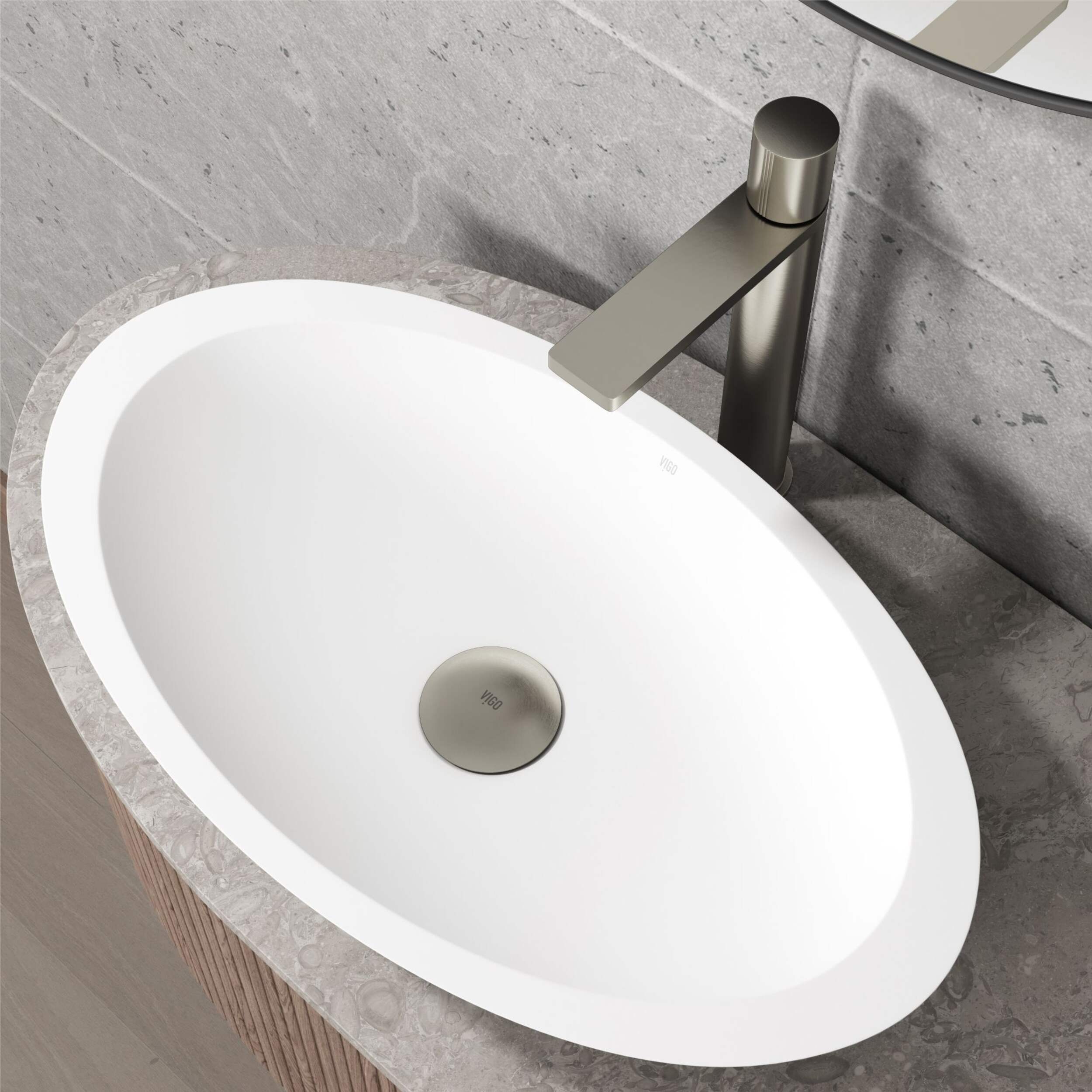 Fini FinishPlatedMC qui assure que le fini de la quincaillerie est uniforme et qu'il s'agence à tous les autres articles VIGO
