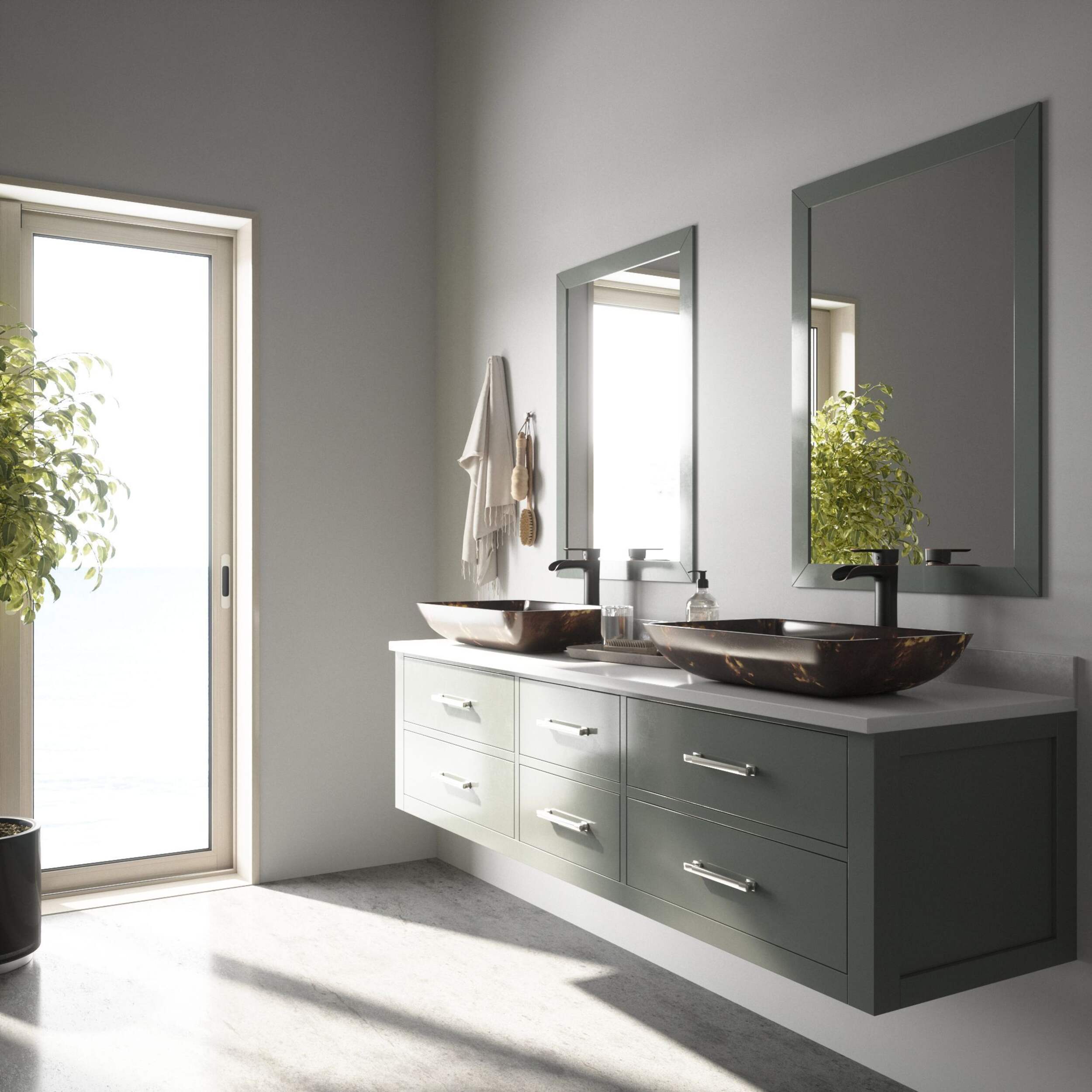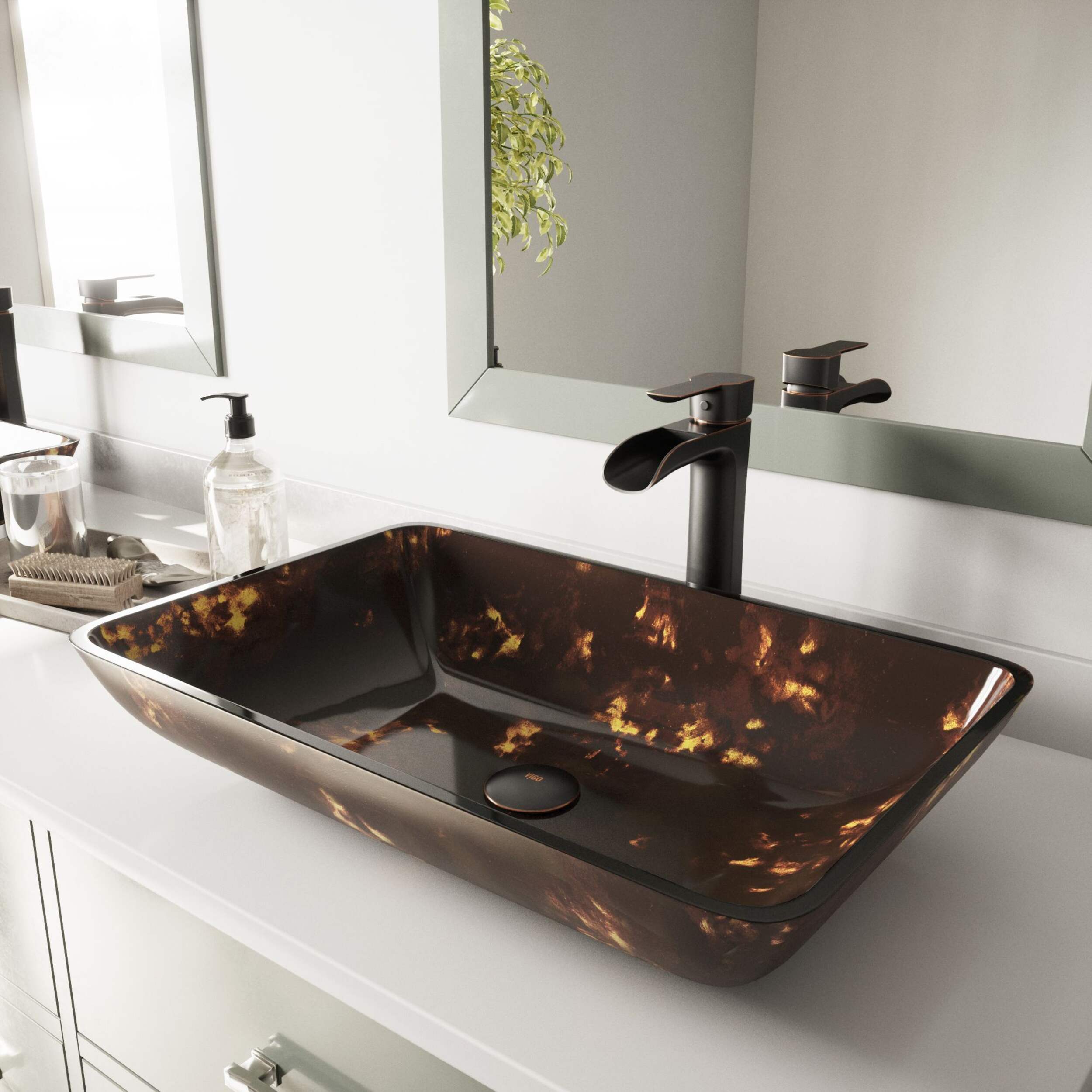 Lavabo vasque rectangulaire VIGO s’installe au-dessus du comptoir pour un accès facile et une configuration spacieuse