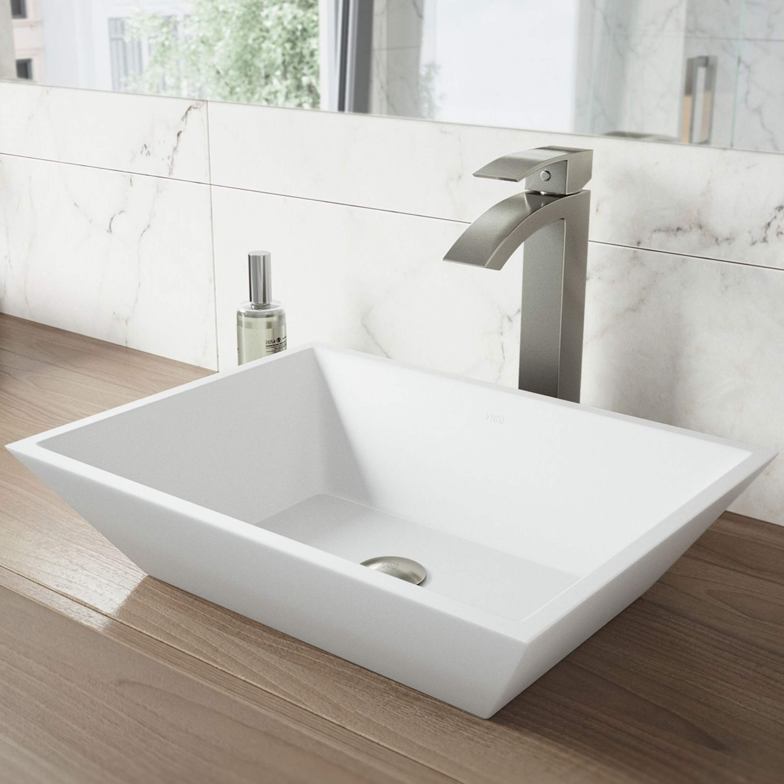 Le matériau harmonieux et solide Matte StoneMC rend le lavabo de salle de bain VIGO Inca Matte StoneMC extrêmement durable. Sa surface résiste aux égratignures et à la décoloration, et est facile à nettoyer avec le cercle de polissage inclus. Avec sa forme rectangulaire et sa surface Matte StoneMC satinée lisse, ce lavabo apporte une touche moderne dans n’importe quelle salle de bain traditionnelle, transitionnelle ou contemporaine.