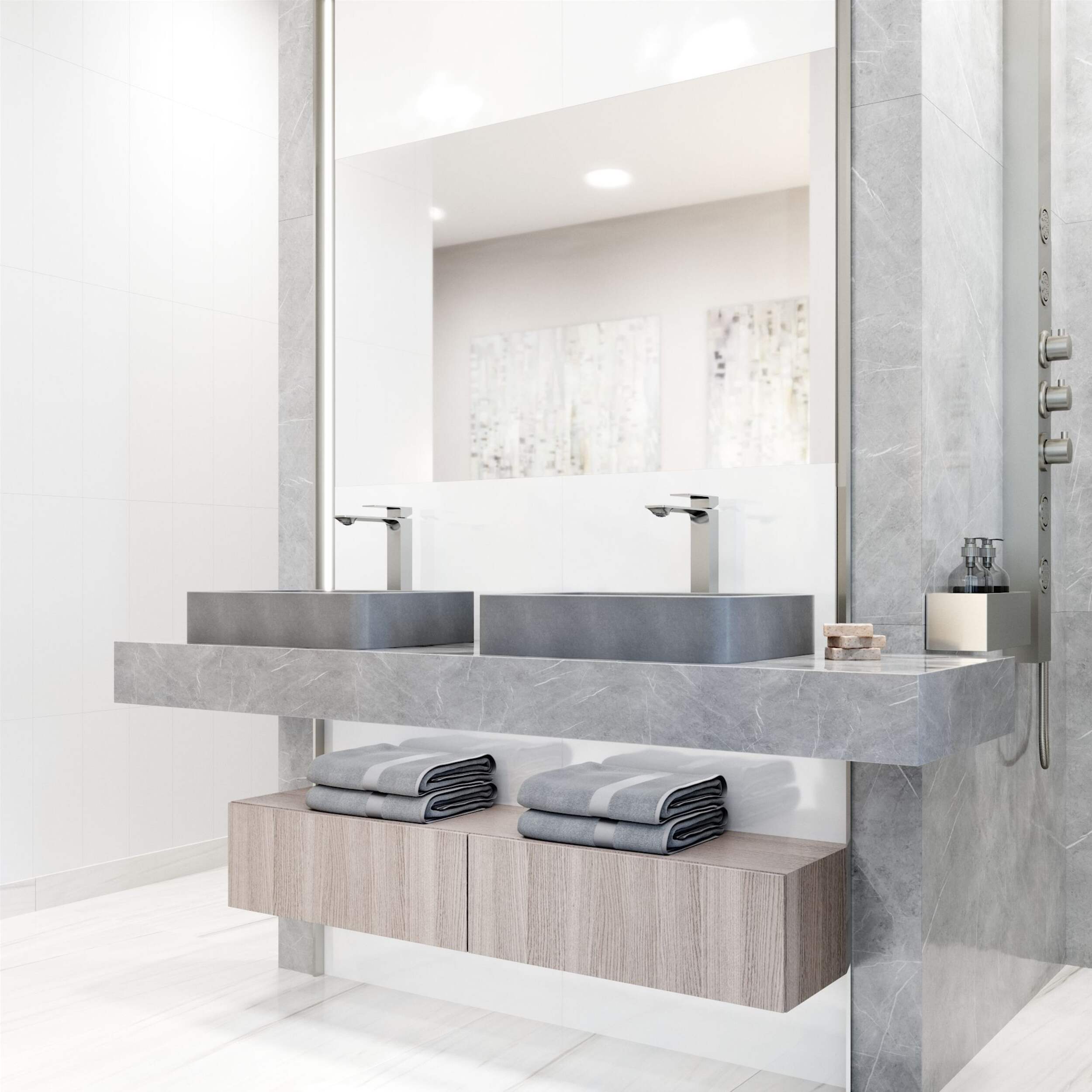 Fini béton gris ajoutant une touche moderne et industrielle à n'importe quelle salle de bain