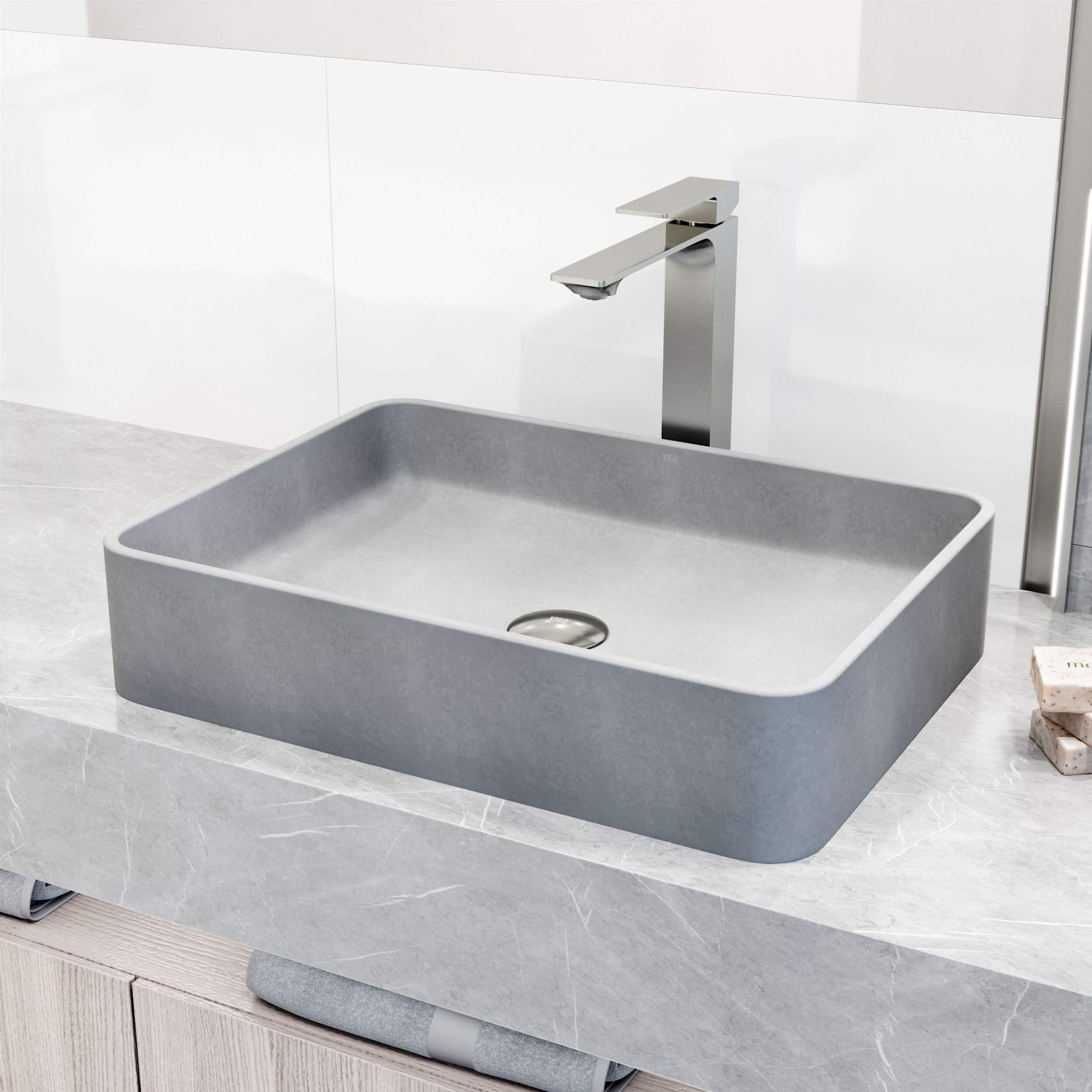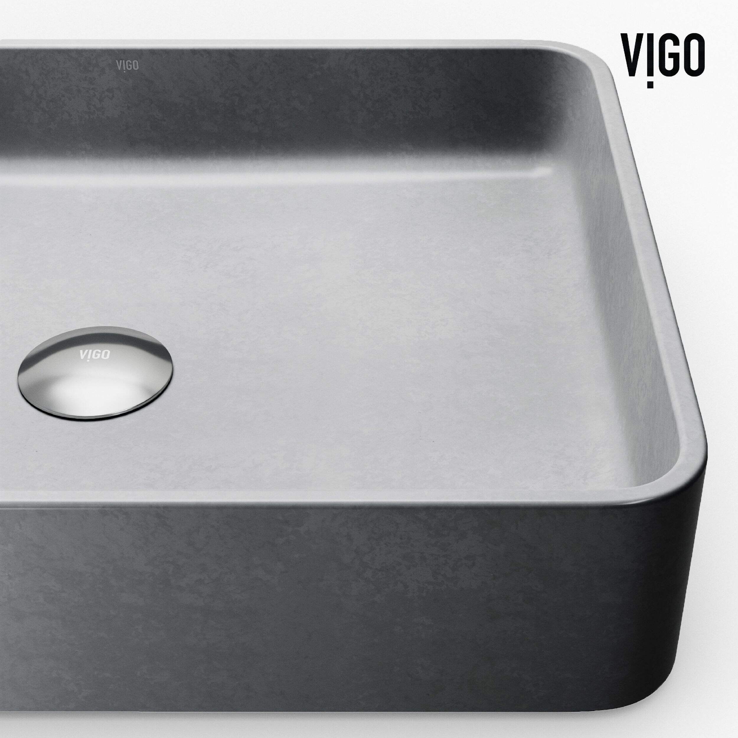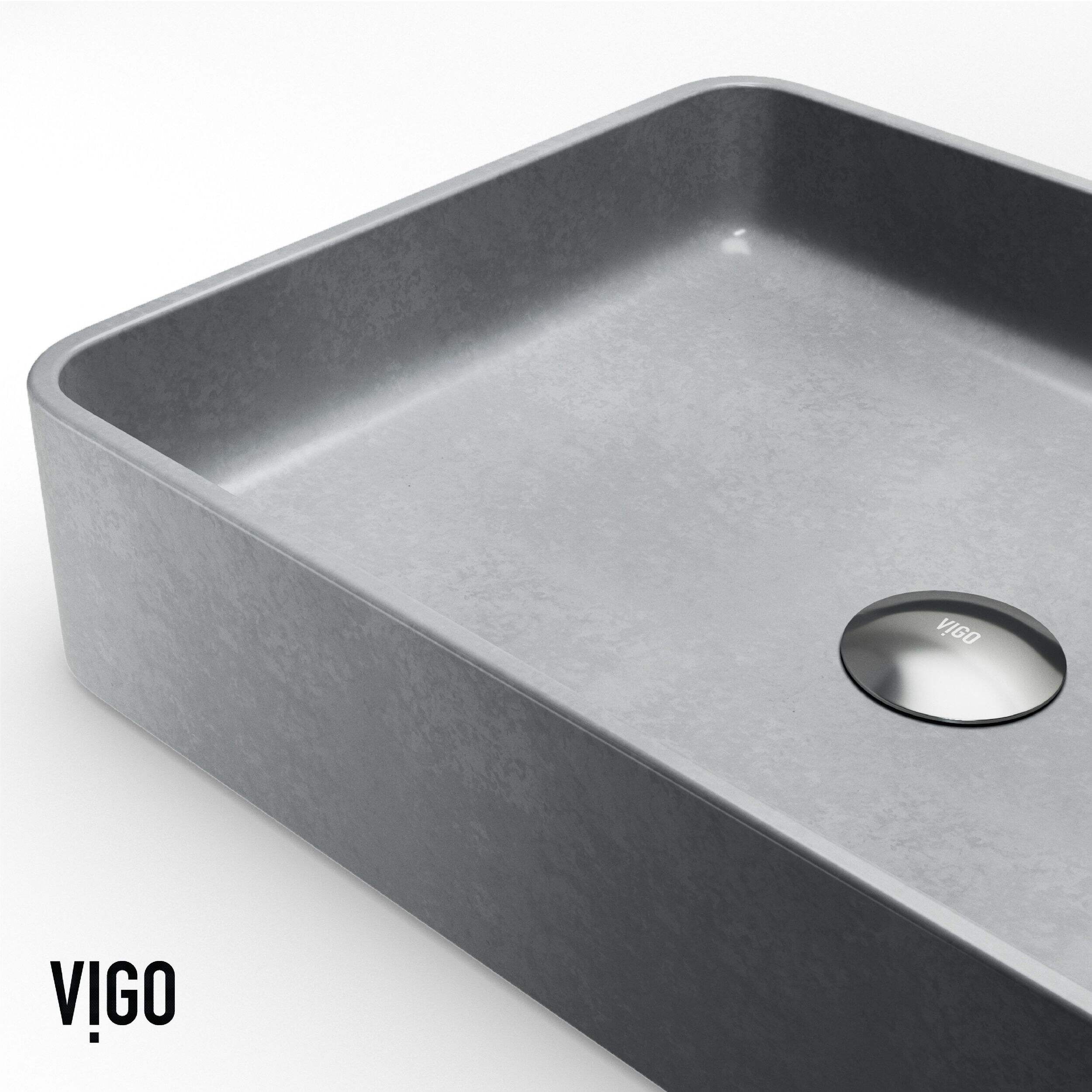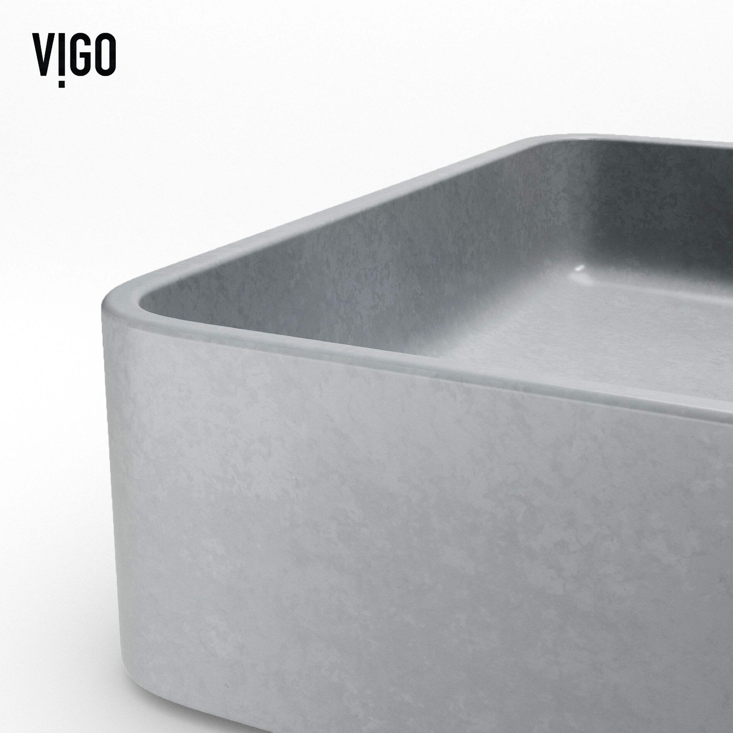 Lavabo rectangulaire fabriqué à partir du composite ConcretoStoneMC à centre plein exclusif à VIGO qui résiste de façon experte aux égratignures, aux taches et à la décoloration